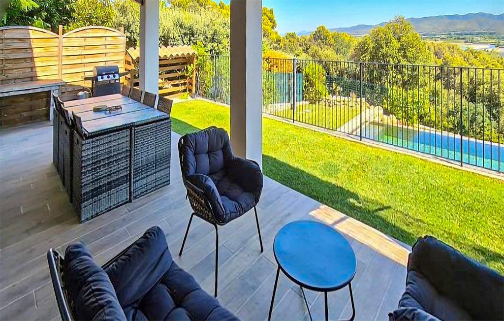 Im großen Wohnraum mit Kamin können Sie das Beisammensein Ihrer Familie beim Kochen, Spielen und Entspannen auf dem Sofa genießen und dem knisternden Kaminfeuer lauschen. Von hier können Sie auf die schöne Terrasse gelangen und einen herrlichen Ausblick auf den Infinitypool und die Landschaft haben. Lassen Sie Ihrer Urlaubstage, bei gegrillten Speisen und einem guten Glas Wein, hier ausklingen.