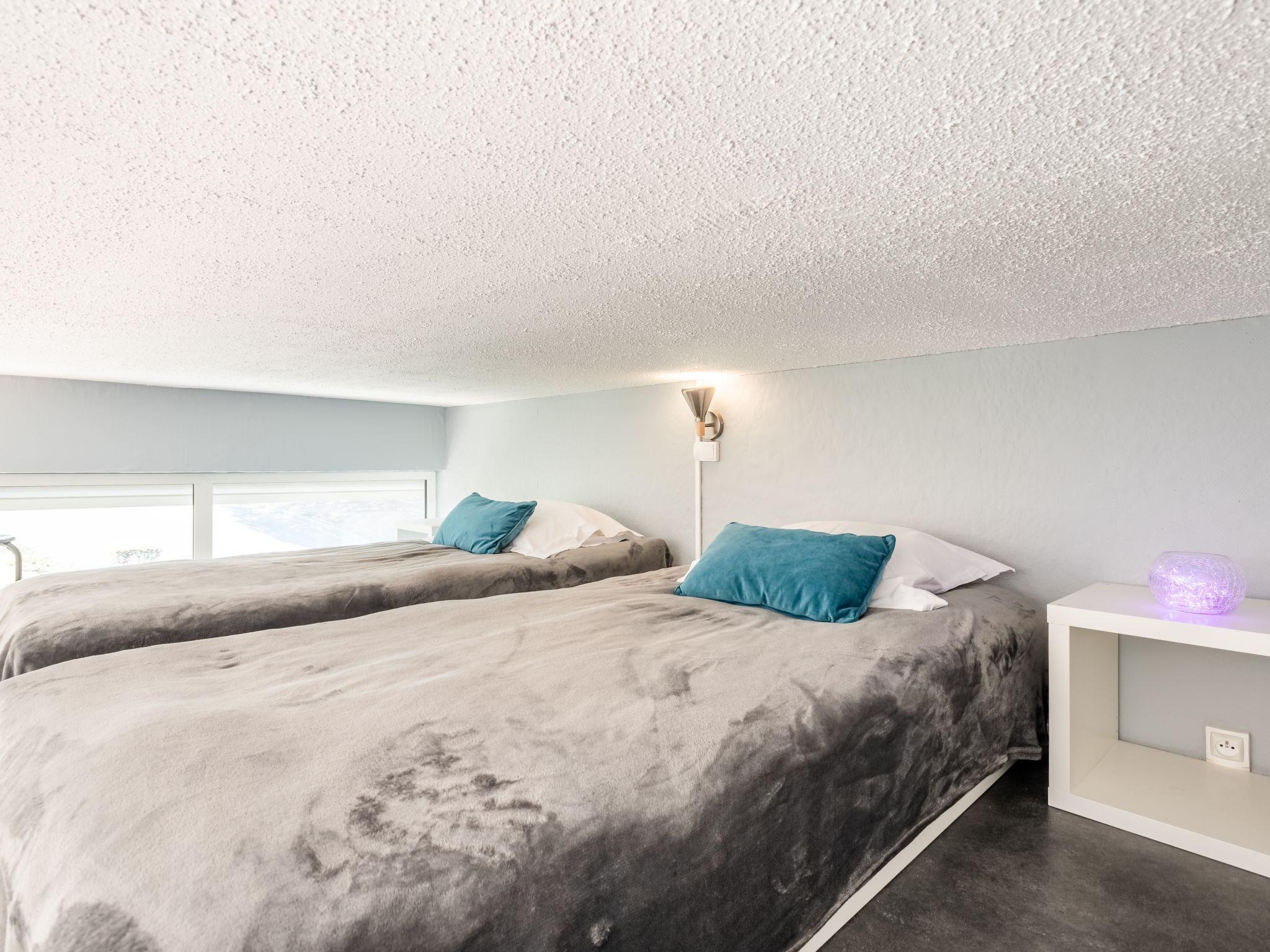 2-Zimmer-Wohnung 47 m2, im Erdgeschoss. Komfortabel eingerichtet: Wohn-/Esszimmer mit Panoramafenster mit 2 Betten (90 cm, Länge 190 cm), TV (Flachbildschirm). 1 Zimmer mit 1 franz. Bett (1 x 140 cm, Länge 190 cm). Offene Küche (Backofen, Geschirrspüler, 4 Induktionskochplatten, Wasserkocher, Mikrowelle, elektrische Kaffeemaschine). Dusche/WC. E-Heizung. Kleiner Gartensitzplatz 12 m2. Zur Verfügung: Waschmaschine. Internet (WLAN, gratis). Parkplatz Nr. 40. Bitte beachten: Rauchmelder. 56186 000506 EF