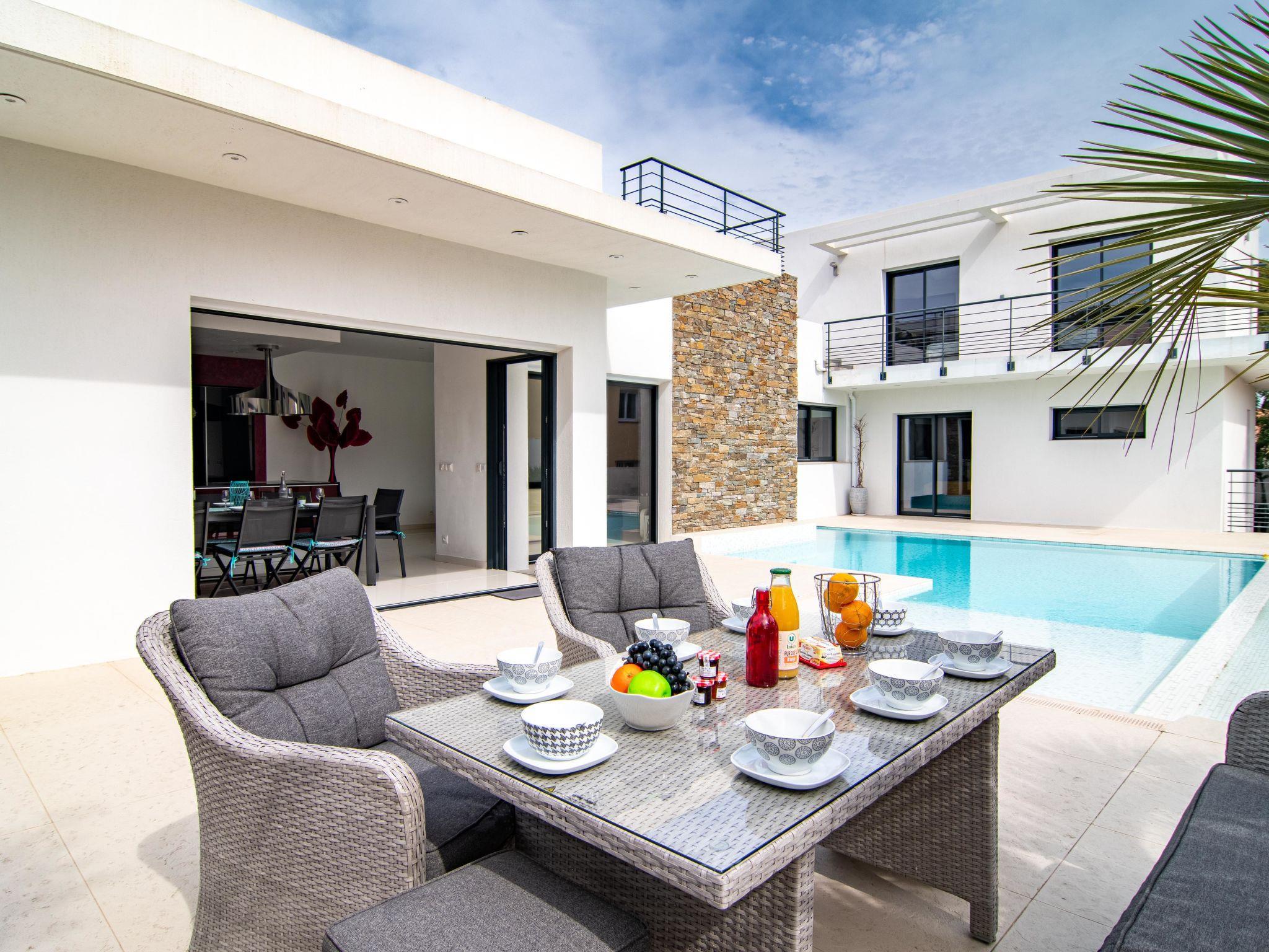 5-Zimmer-Villa 250 m2 auf 2 Stockwerken. Sehr modern und gemütlich eingerichtet: grosses Wohn-/Esszimmer mit Panoramafenster mit TV (Flachbildschirm), elektrischem Rollladen. Ausgang zum Schwimmbad. 1 grosses Zimmer mit Panoramafenster begehbarem Kleiderschrank mit 1 franz. Bett (1 x 160 cm, Länge 200 cm), Bad/Dusche/WC, Doppelwaschbecken und TV (Flachbildschirm), elektrischem Rollladen. Ausgang zur Terrasse. Offene Küche (Backofen, Geschirrspüler, 4 Induktionskochplatten, Toaster, Wasserkocher, Mikrowelle, Tiefkühler, elektrische Kaffeemaschine, Kapseln für die Kaffeemaschine (Nespresso) extra, Kochinsel). Sep. WC. Klimaanlage. Obergeschoss: 1 Zimmer mit Panoramafenster mit 1 franz. Bett (1 x 160 cm, Länge 200 cm), TV (Flachbildschirm), elektrischem Rollladen. Ausgang zur Terrasse. 1 Zimmer mit Panoramafenster mit 1 franz. Bett (1 x 140 cm, Länge 200 cm), TV (Flachbildschirm), elektrischem Rollladen. Ausgang zur Terrasse. 1 Zimmer mit 1 franz. Bett (1 x 140 cm, Länge 200 cm), TV (Flachbildschirm). Bad, sep. WC, Doppelwaschbecken. Klimaanlage. Grosse Terrasse teilweise überdacht. Terrassenmöbel, Gartengrill, Liegestühle (8). Zur Verfügung: Waschmaschine, Bügeleisen, Haartrockner. Internet (Wireless LAN, gratis). Parkplatz, Garage. Bitte beachten: Rauchmelder. Inserat einer Privatperson nach Artikel 155, IV, CGI. MHFIFJ
