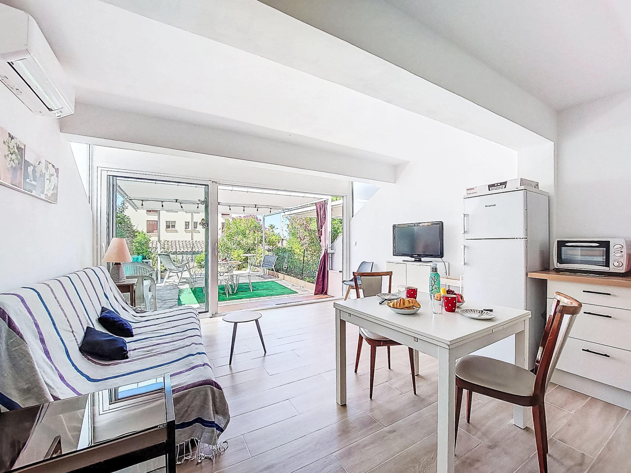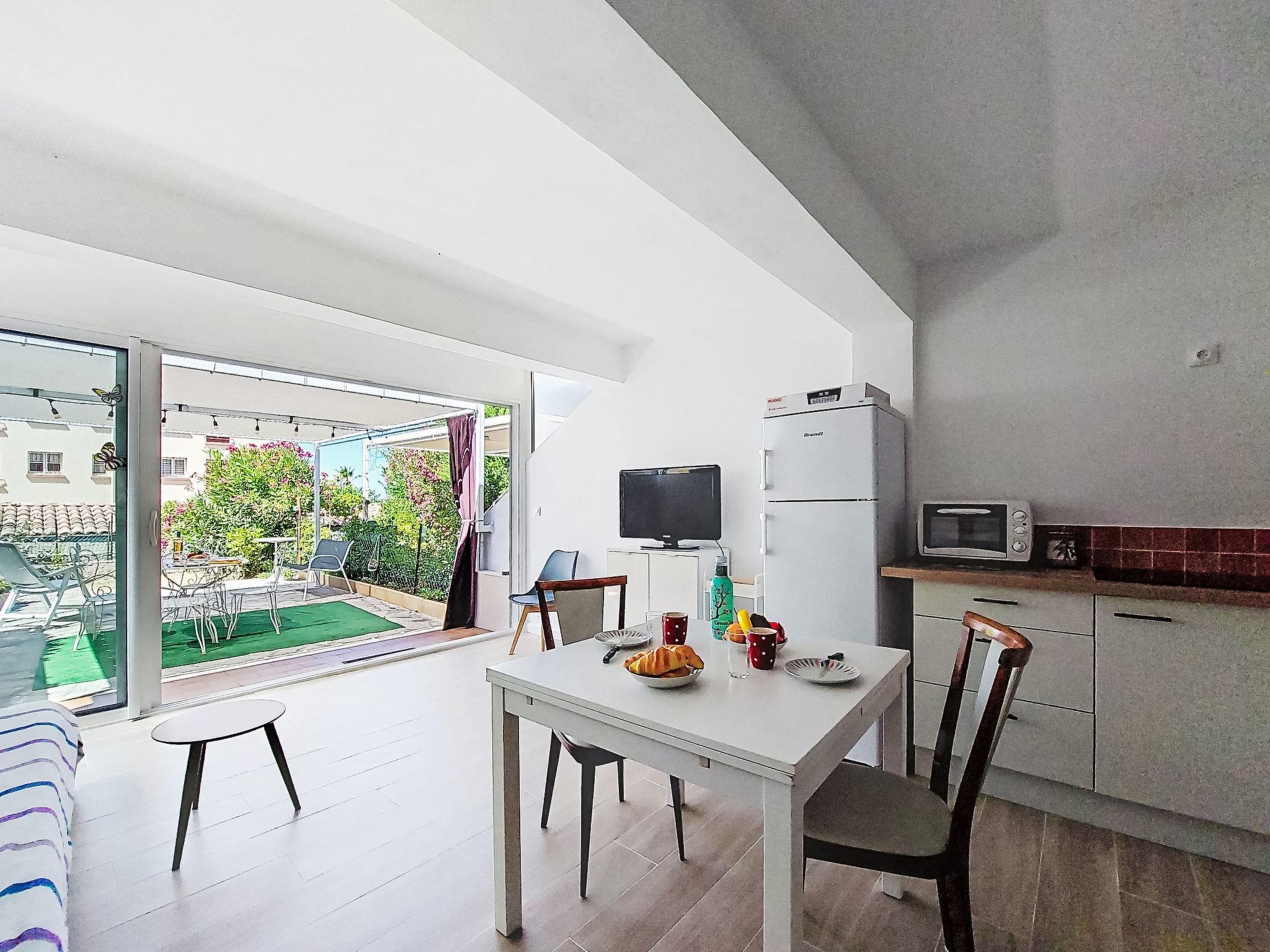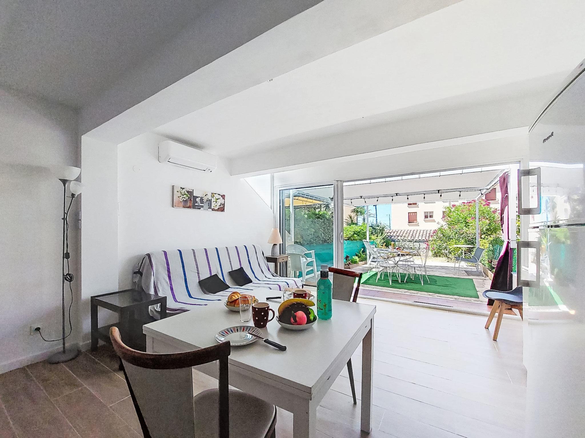 2-Zimmer-Wohnung 35 m2, im Erdgeschoss. Hell, komfortabel und schön eingerichtet: Wohn-/Esszimmer mit 1 Doppeldiwanbett (140 cm, Länge 200 cm), TV (Flachbildschirm), Klimaanlage. Ausgang zur Terrasse. 1 Zimmer mit 1 franz. Bett (140 cm, Länge 190 cm). Kochnische (Mini-Backofen, Geschirrspüler, 3 Induktionskochplatten, Toaster, Wasserkocher, Mikrowelle, elektrische Kaffeemaschine). Dusche/WC. E-Heizung. Terrasse 25 m2, Südostlage. Terrassenmöbel, Elektrogrill. Zur Verfügung: Waschmaschine. Internet (WLAN, extra). Bitte beachten: Nichtraucher-Unterkunft. 1 kleines Haustier/Hund erlaubt. TV nur FR. Rauchmelder. Inserat einer Privatperson nach Artikel 155, IV, CGI. 83112001795QC