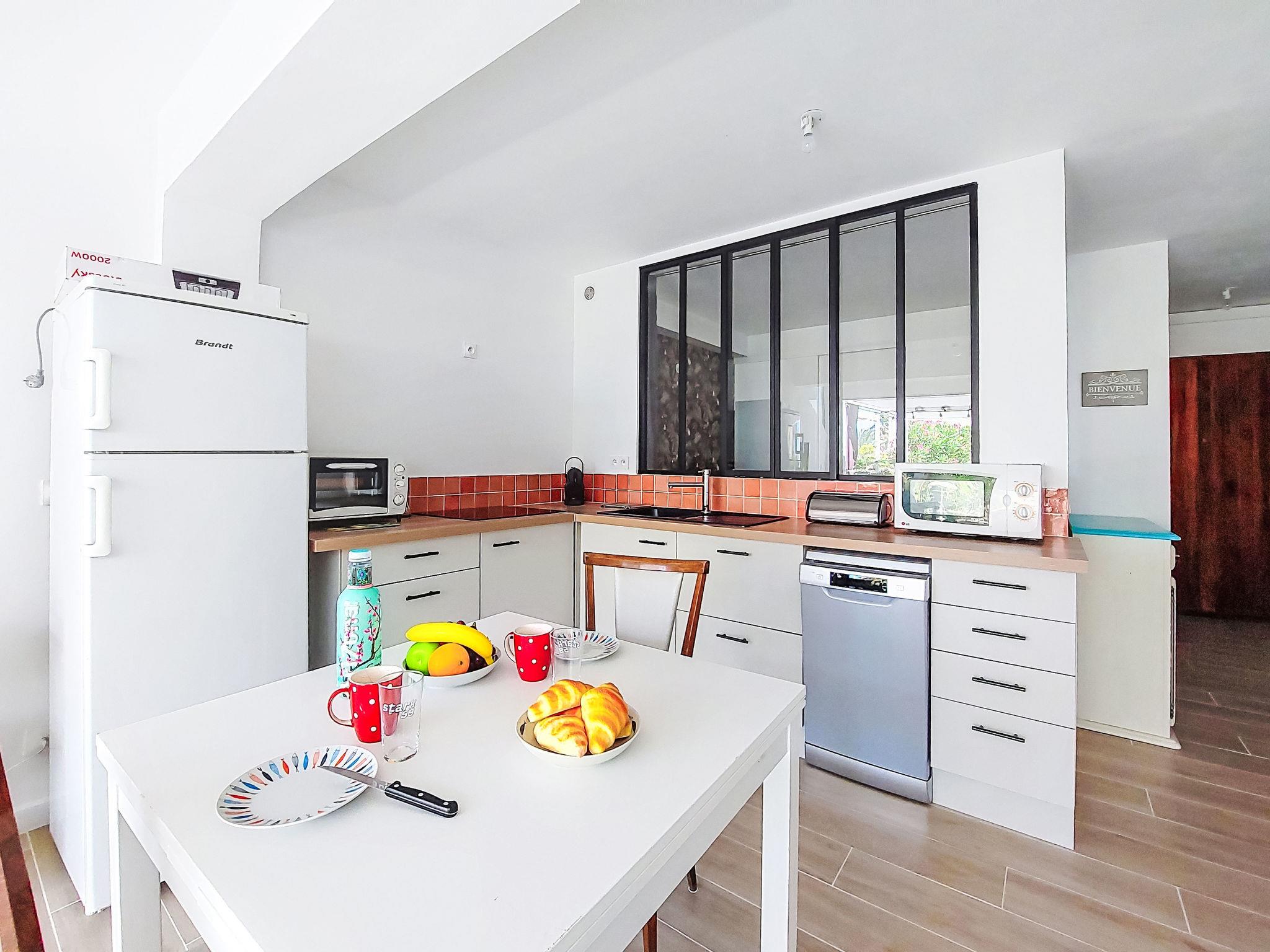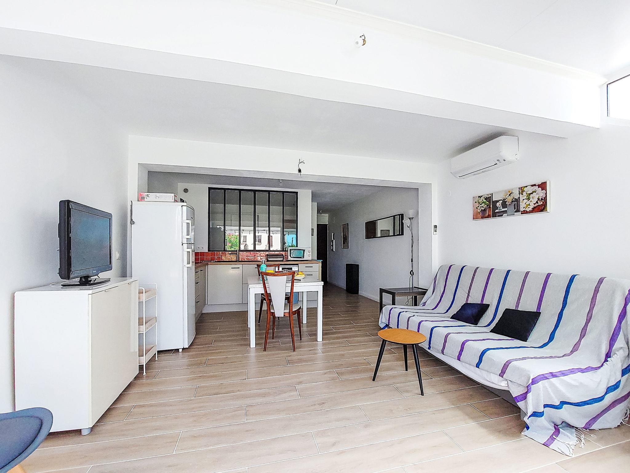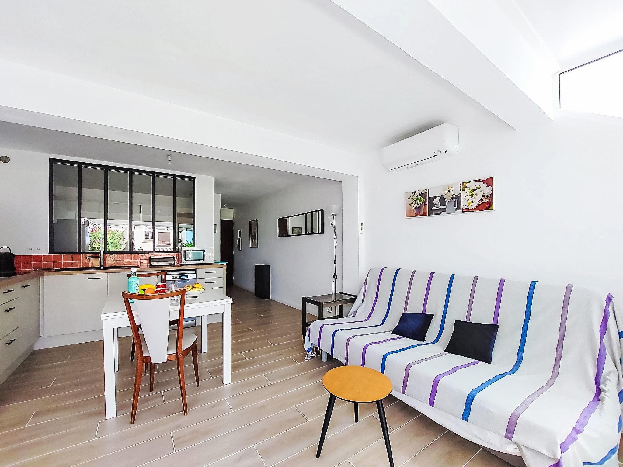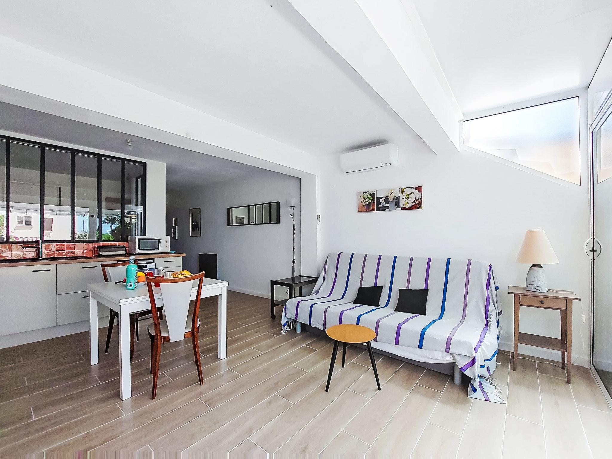 2-Zimmer-Wohnung 35 m2, im Erdgeschoss. Hell, komfortabel und schön eingerichtet: Wohn-/Esszimmer mit 1 Doppeldiwanbett (140 cm, Länge 200 cm), TV (Flachbildschirm), Klimaanlage. Ausgang zur Terrasse. 1 Zimmer mit 1 franz. Bett (140 cm, Länge 190 cm). Kochnische (Mini-Backofen, Geschirrspüler, 3 Induktionskochplatten, Toaster, Wasserkocher, Mikrowelle, elektrische Kaffeemaschine). Dusche/WC. E-Heizung. Terrasse 25 m2, Südostlage. Terrassenmöbel, Elektrogrill. Zur Verfügung: Waschmaschine. Internet (WLAN, extra). Bitte beachten: Nichtraucher-Unterkunft. 1 kleines Haustier/Hund erlaubt. TV nur FR. Rauchmelder. Inserat einer Privatperson nach Artikel 155, IV, CGI. 83112001795QC
