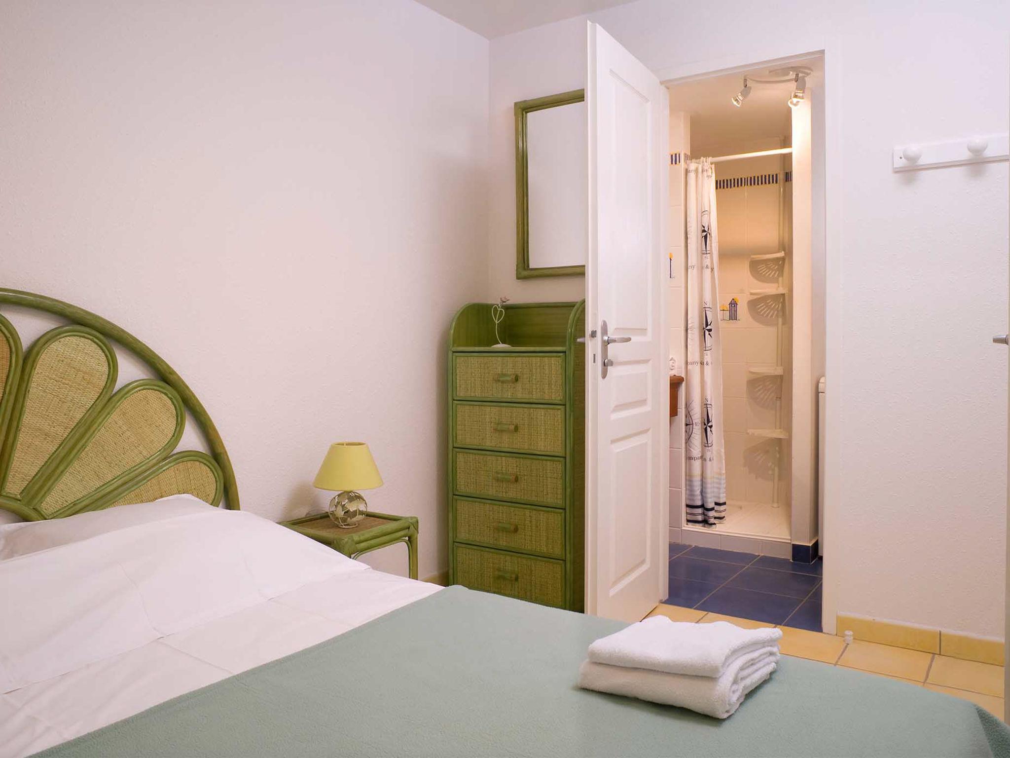 "Les Mas de St. Hilaire", 3-Zimmer-Reihenhaus 56 m2 auf 2 Stockwerken. Zweckmässig eingerichtet: Wohn-/Esszimmer mit Esstisch und TV mietbar. 1 Zimmer mit 2 Betten. Kochnische (4 Glaskeramikplatten, Toaster, Wasserkocher, Mikrowelle, elektrische Kaffeemaschine). Sep. WC, Bad oder Dusche. Obergeschoss: offene Galerie mit 2 Schlafmöglichkeiten. 1 Zimmer mit 2 Betten. Sep. WC, Bad oder Dusche. E-Heizung. Terrasse, kleiner Garten 25 m2. Terrassenmöbel. Bitte beachten: Nichtraucher-Haus. Maximal 2 Haustiere/Hunde erlaubt. Rauchmelder. Anstelle eines abgeschlossenen Schlafzimmers befinden sich manche Schlafplätze in einem offenen Bereich (Galerie, Nische etc.).