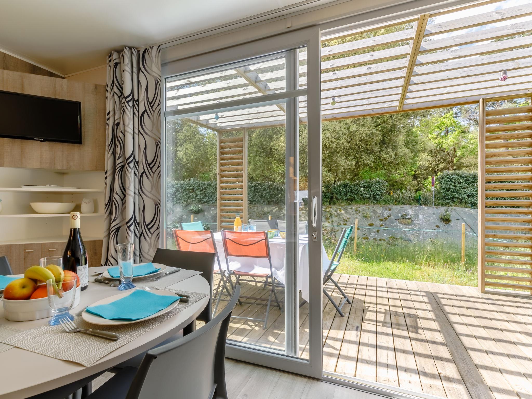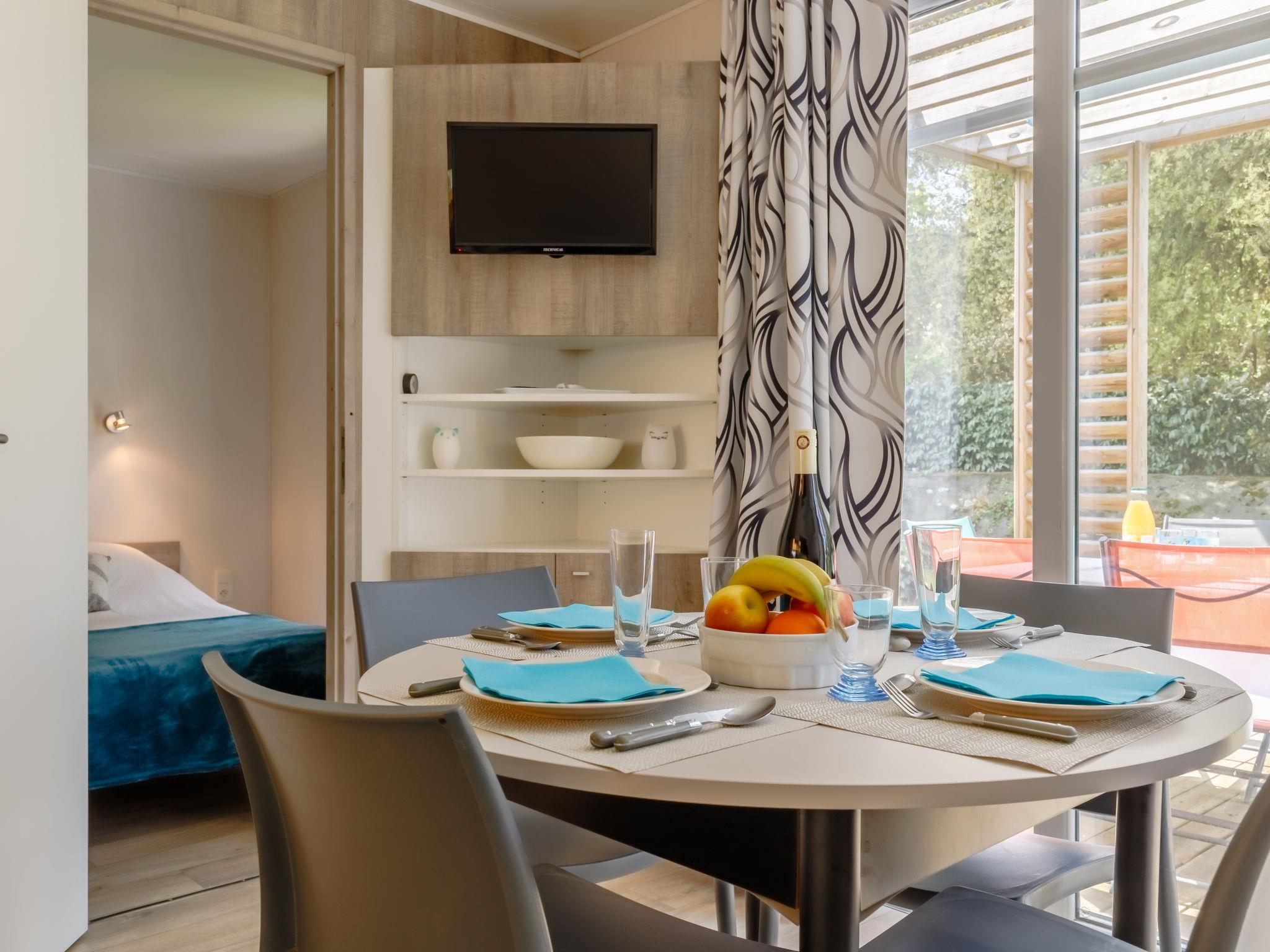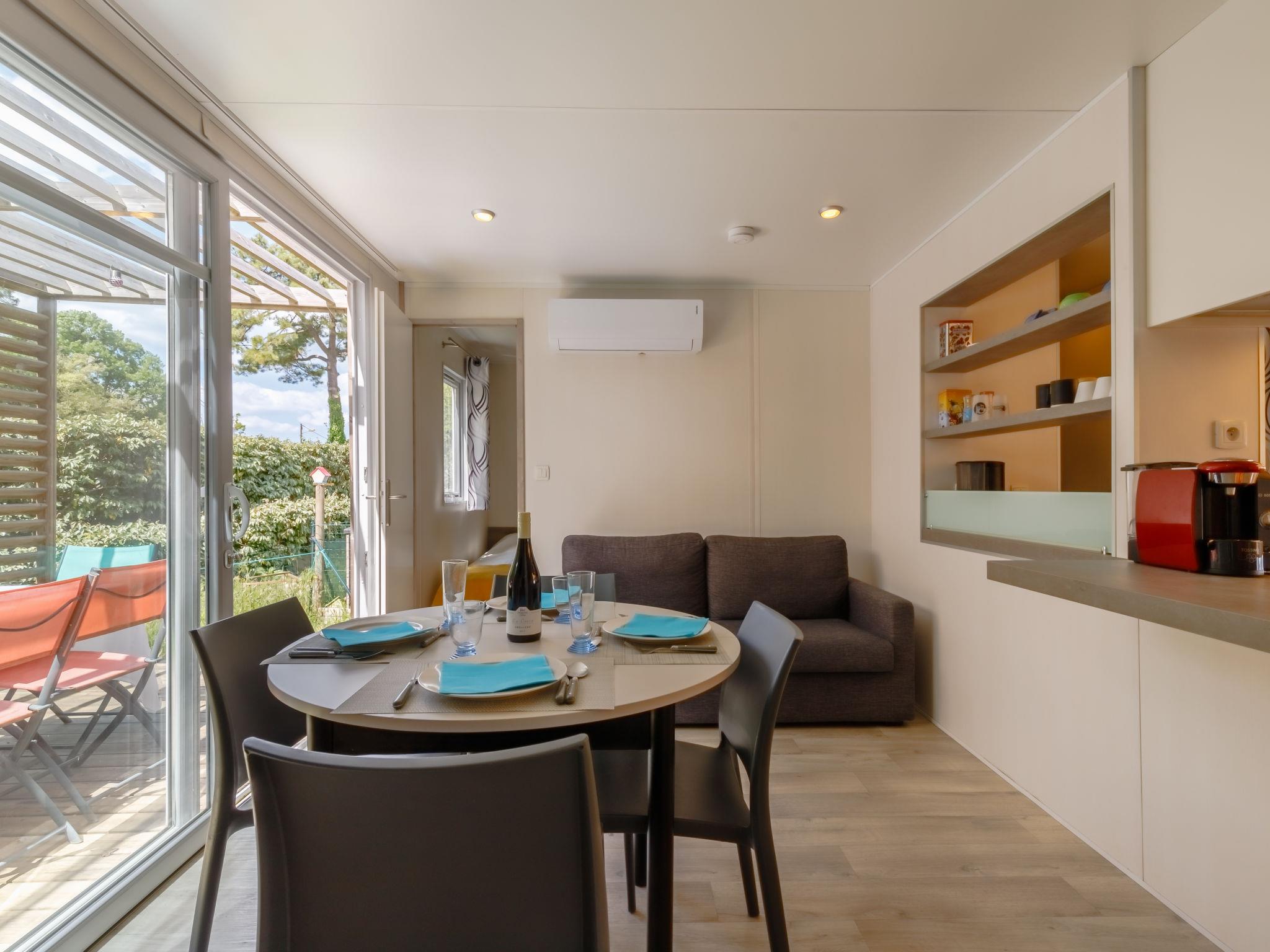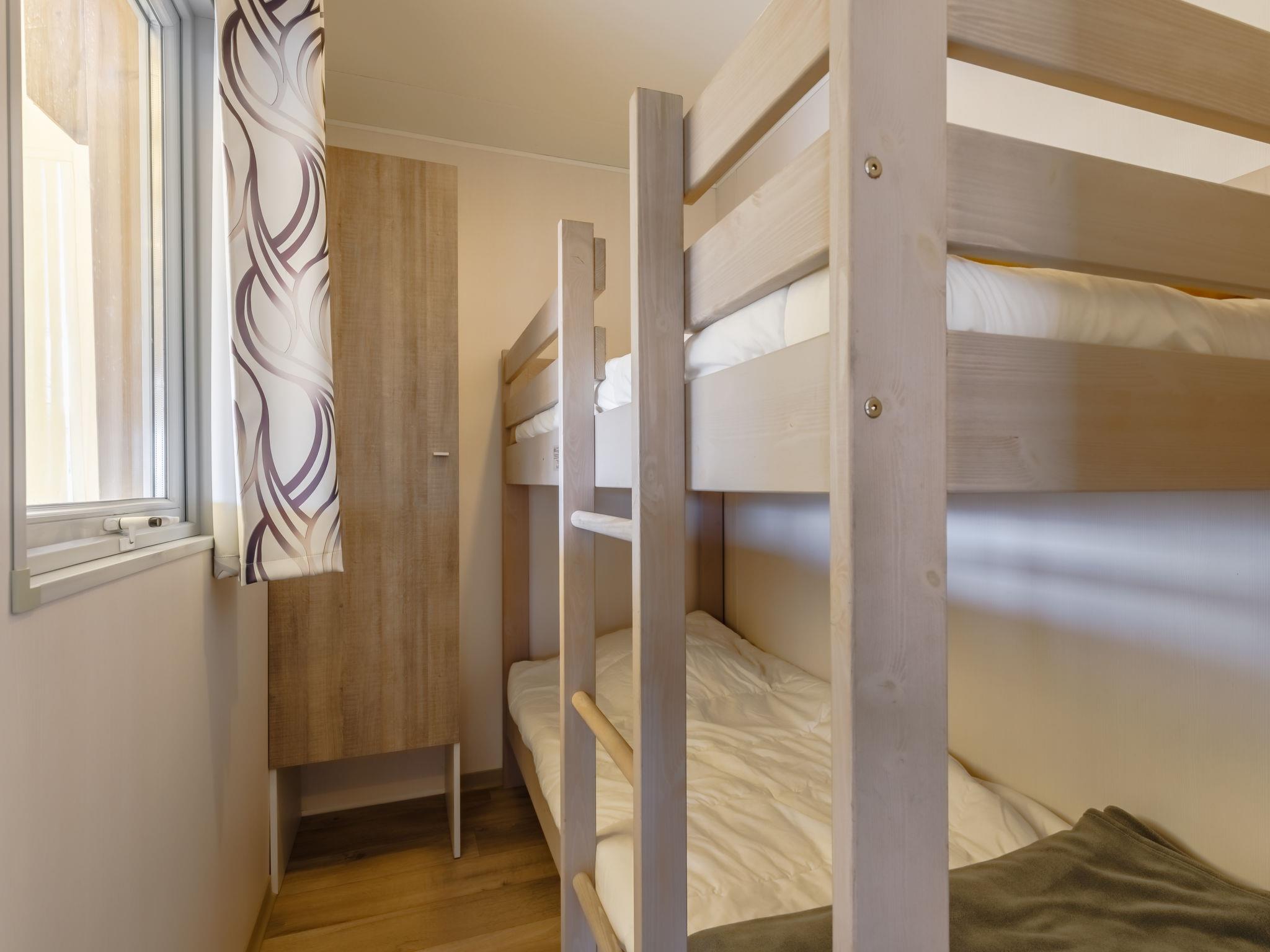 "New Cottage de 2020", 4-Zimmer-Mobilheim 42 m2. Schön eingerichtet: Wohnzimmer mit Panoramafenster mit Essecke und TV. Ausgang zur Terrasse. 1 Zimmer mit 1 franz. Bett (140 cm, Länge 190 cm). 1 Zimmer mit 2 Betten (80 cm, Länge 190 cm). 1 kleines Zimmer mit 1 x 2 Etagenbetten (80 cm, Länge 190 cm). Offene Küche (3 Glaskeramikplatten, Toaster, Wasserkocher, Tiefkühler, elektrische Kaffeemaschine, Kombinationsmikrowelle). Dusche, sep. WC. E-Heizung. Grosse Terrasse 27 m2, überdacht Terrasse 12 m2. Terrassenmöbel, Gartengrill. Zur Verfügung: Babybett bis 2 Jahre. Parkplatz. Bitte beachten: Nichtraucher-Unterkunft. Maximal 1 Haustier/Hund erlaubt. Rauchmelder. Inserat einer Privatperson nach Artikel 155, IV, CGI.