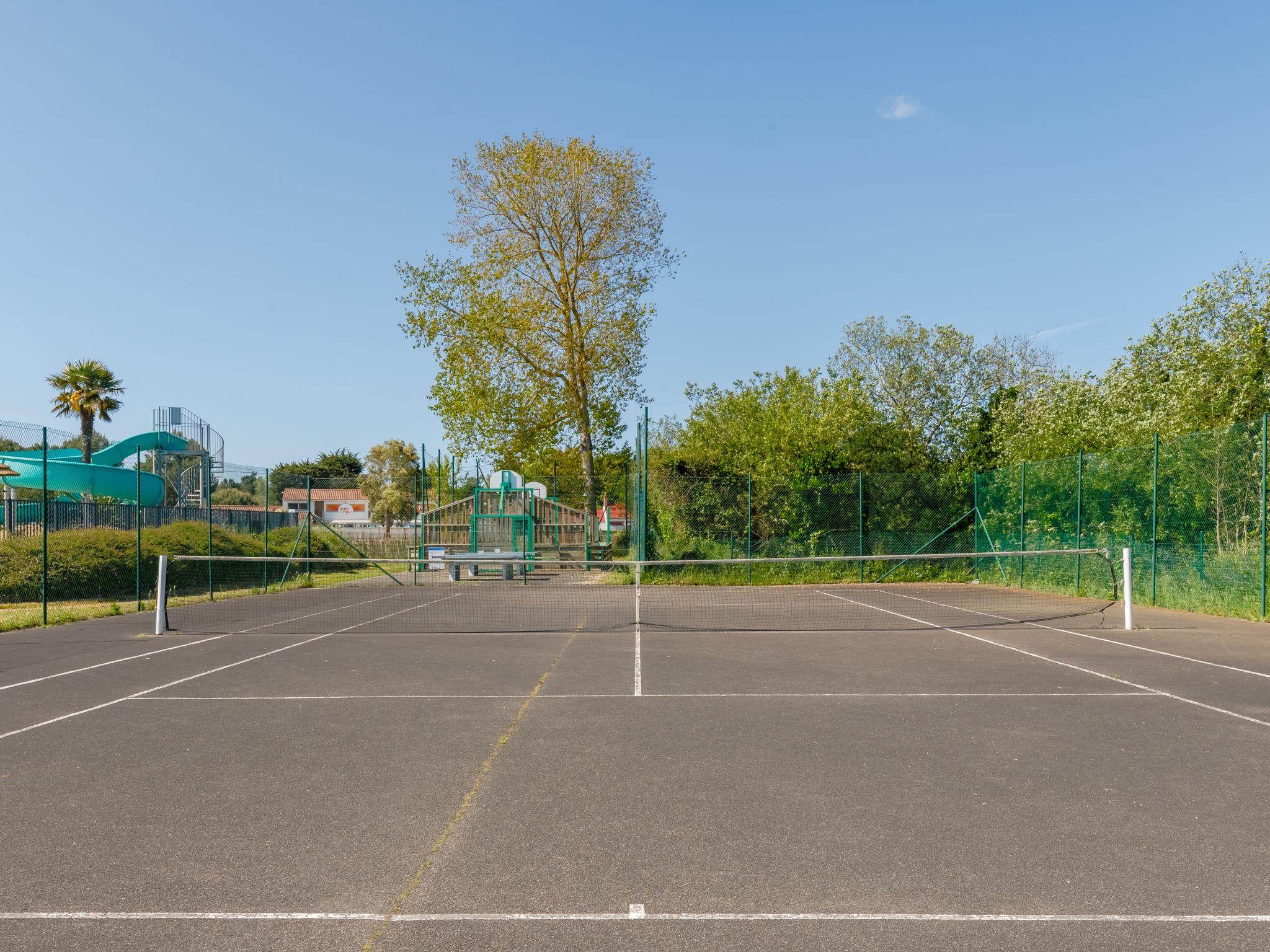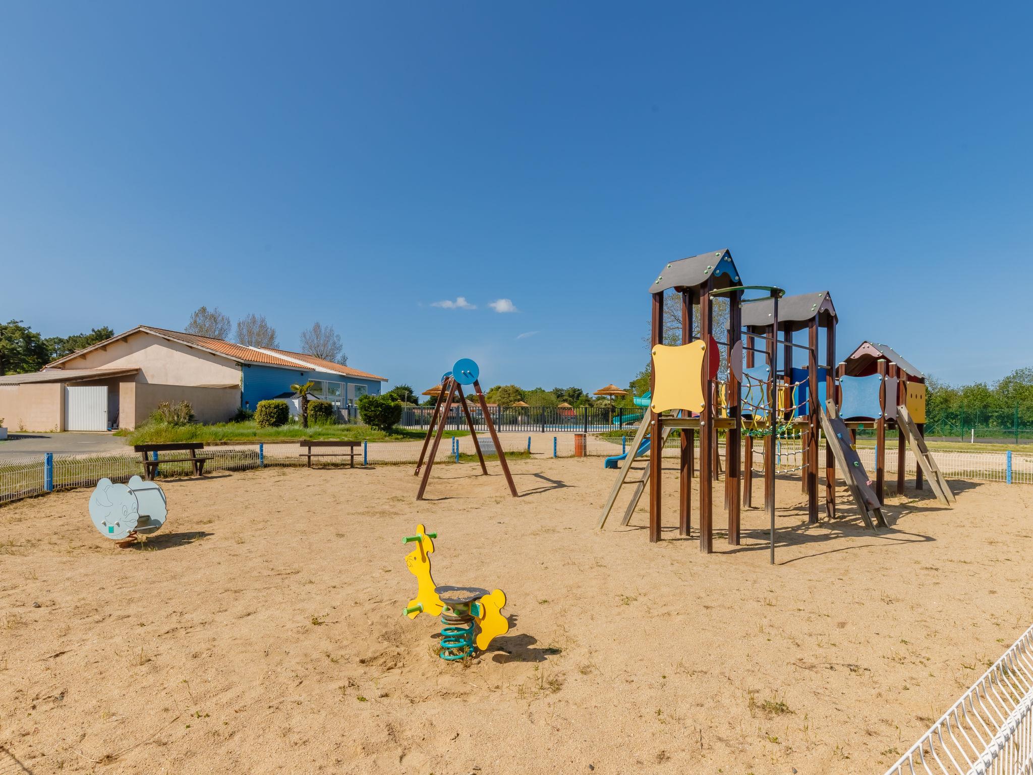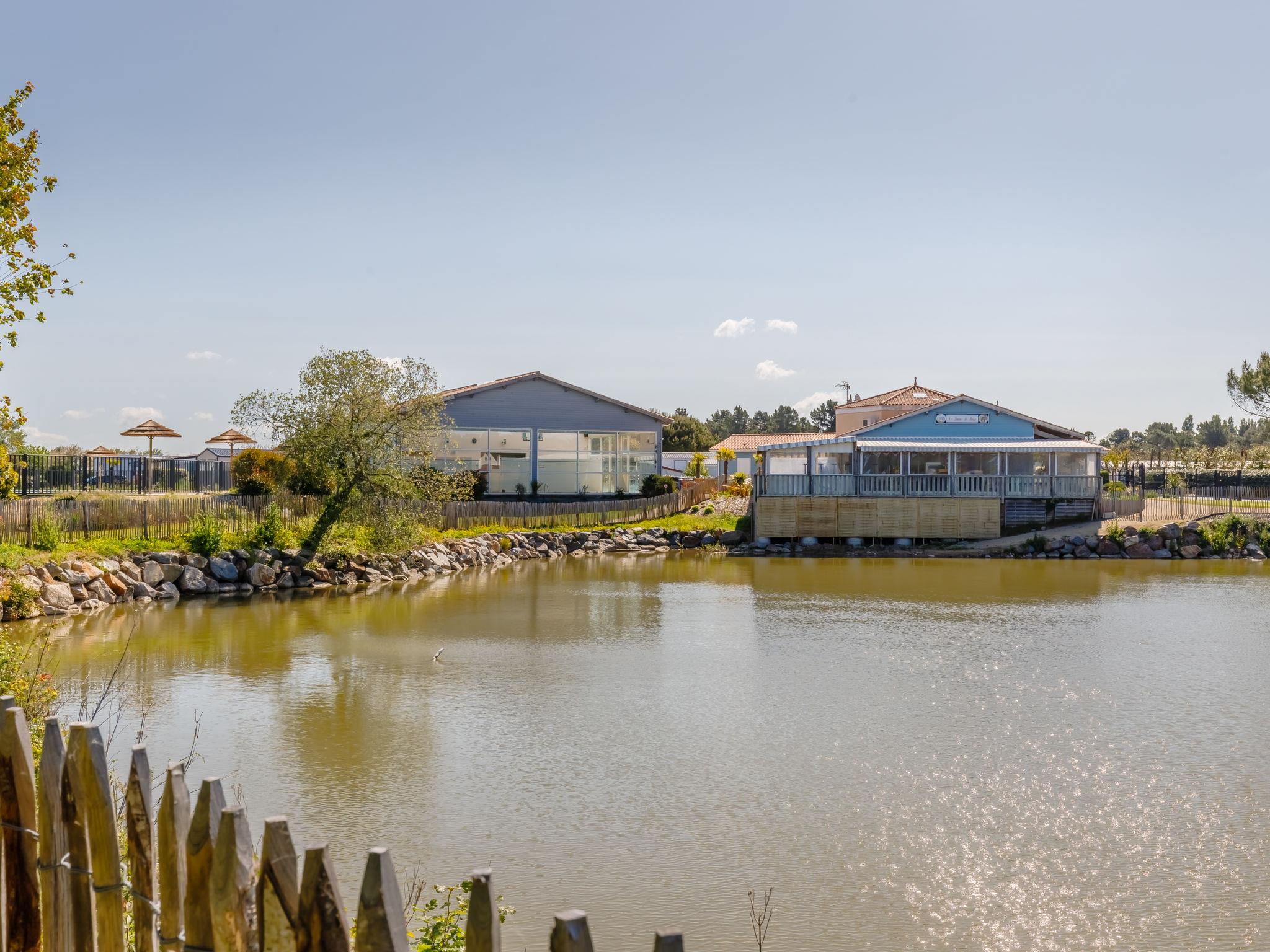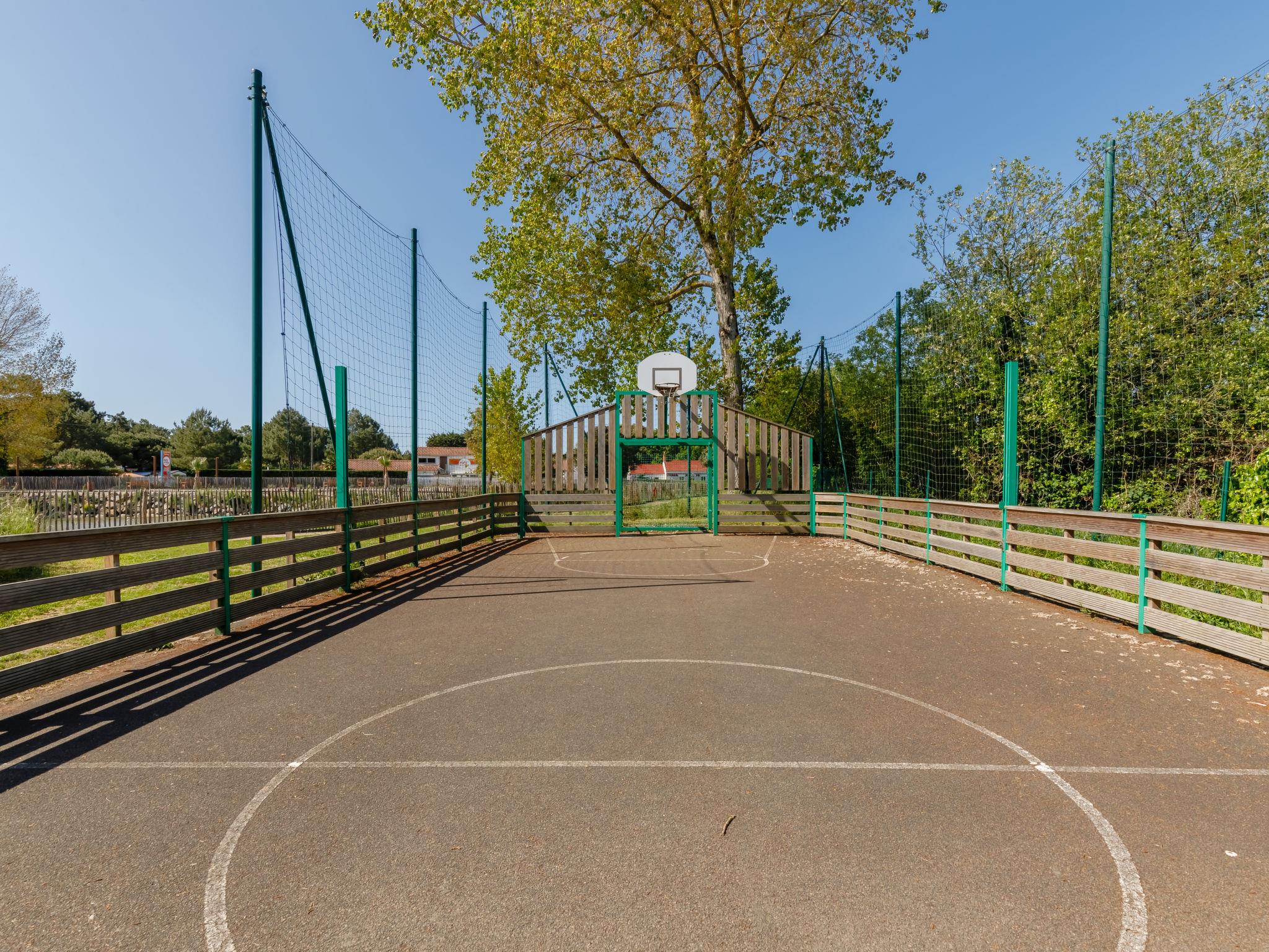 Feriendorf "4 étoiles- L'Etang de Besse". 3 km vom Zentrum von St Hilaire de Riez, 1.3 km vom Meer. Zur Mitbenutzung: Grundstück 2 ha (eingezäunt), Hallenbad beheizt (12 x 5 m, 50 - 170 cm tief, saisonale Verfügbarkeit: 04.Apr. - 31.Okt.). Dusche/WC im Poolbereich, Tennis, Tischtennis, Basketball, Boccia, Kinderspielplatz. Zur Alleinbenutzung: Grundstück 210 m2 (eingezäunt). In der Anlage: Restaurant, Bar, Waschmaschine, Wäschetrockner (zur Mitbenutzung, extra), Fahrradverleih. Parkplatz. Einkaufsgeschäft 3 km, Bushaltestelle 3 km, Sandstrand "La Parée Préneau" 1.3 km. Nahe gelegene Sehenswürdigkeiten: Saint Gilles Croix de Vie 6 km, Saint Jean de Monts 10 km, Ile de Noirmoutier 30 km, Les Sables d'Olonne 38 km, Nantes 70 km. Bitte beachten: geeignet für Familien.