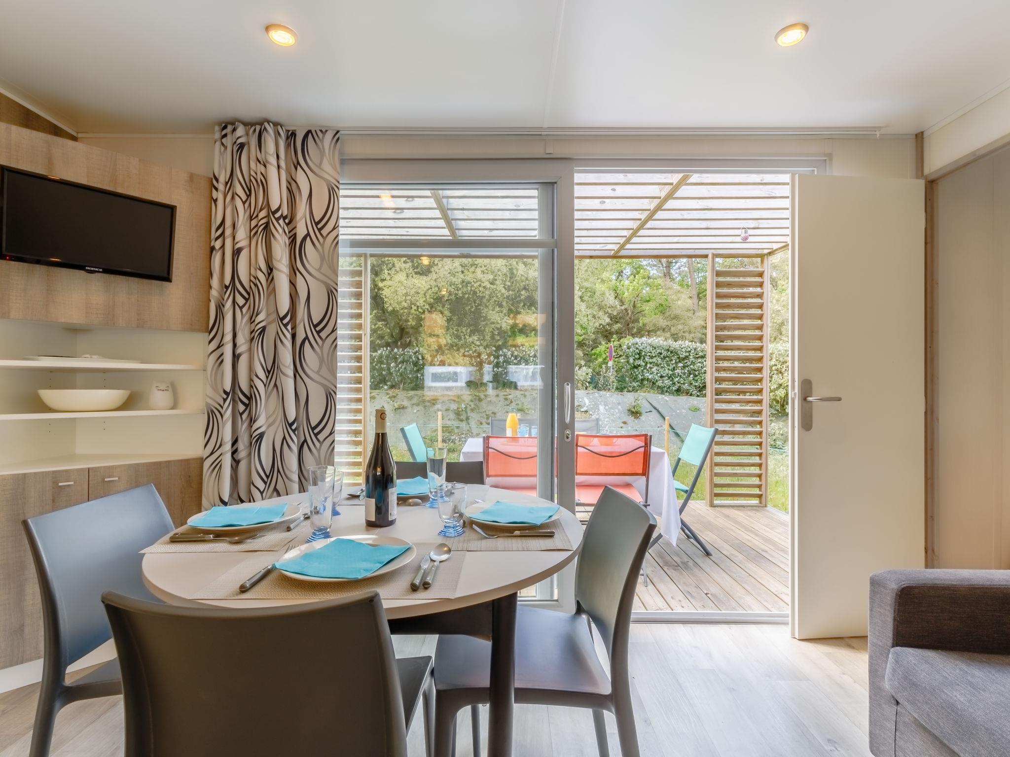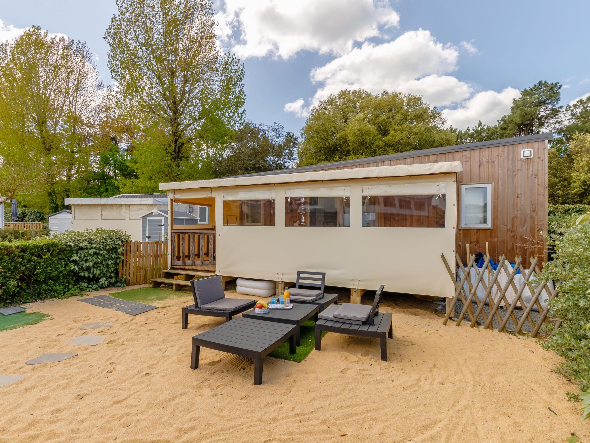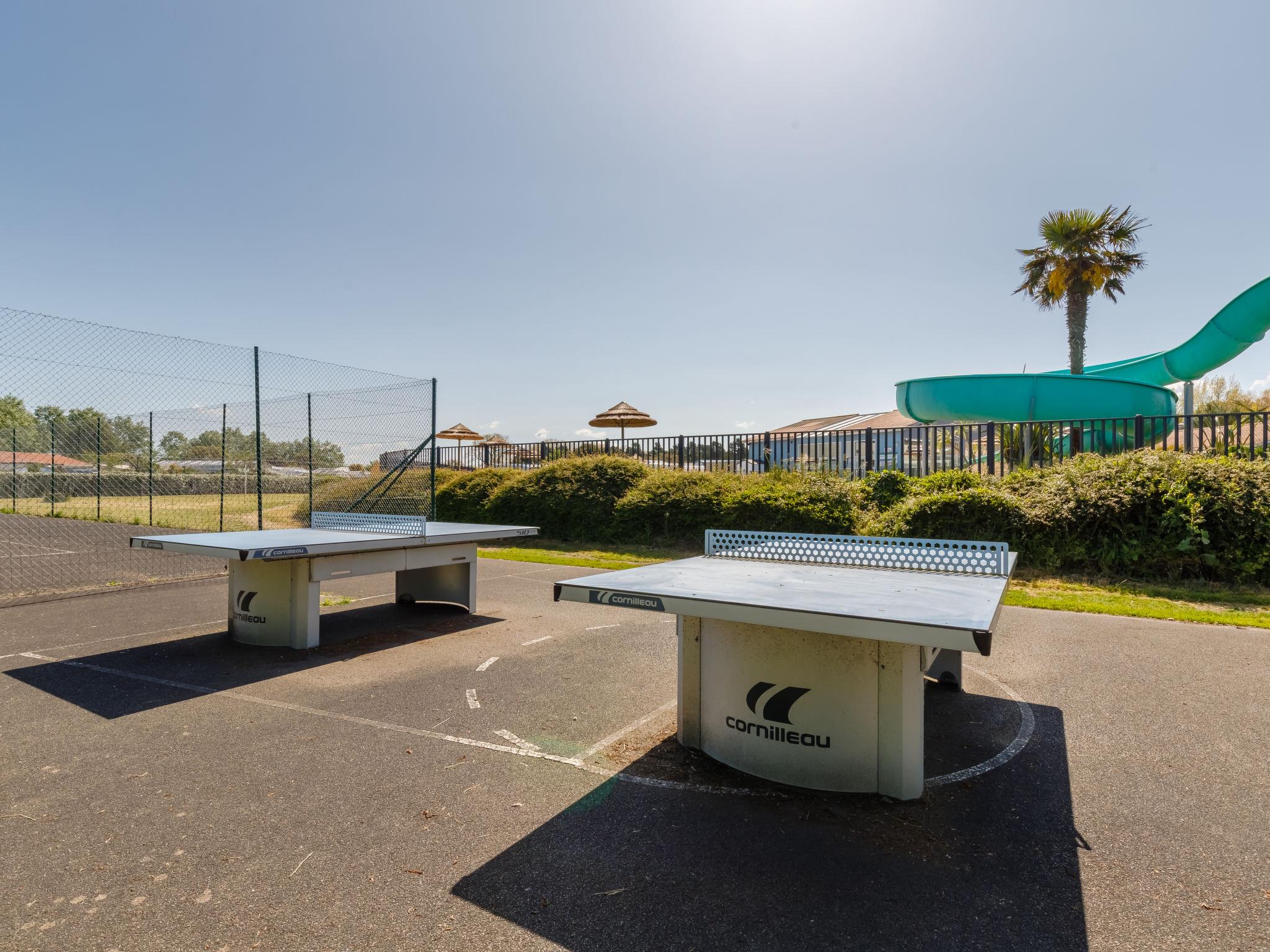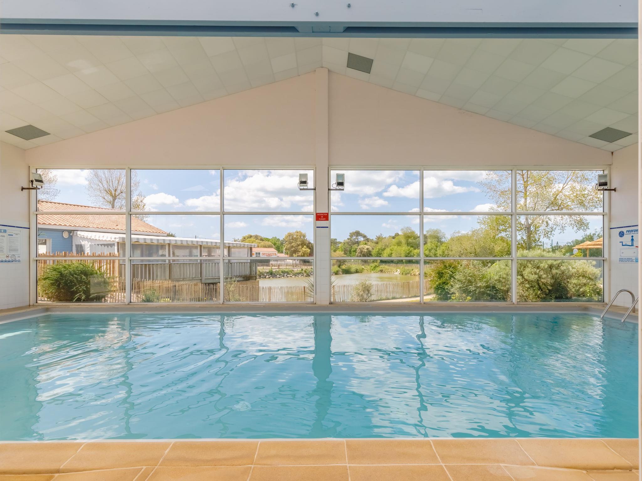 Feriendorf "4 étoiles- L'Etang de Besse". 3 km vom Zentrum von St Hilaire de Riez, 1.3 km vom Meer. Zur Mitbenutzung: Grundstück 2 ha (eingezäunt), Hallenbad beheizt (12 x 5 m, 50 - 170 cm tief, saisonale Verfügbarkeit: 04.Apr. - 31.Okt.). Dusche/WC im Poolbereich, Tennis, Tischtennis, Basketball, Boccia, Kinderspielplatz. Zur Alleinbenutzung: Grundstück 210 m2 (eingezäunt). In der Anlage: Restaurant, Bar, Waschmaschine, Wäschetrockner (zur Mitbenutzung, extra), Fahrradverleih. Parkplatz. Einkaufsgeschäft 3 km, Bushaltestelle 3 km, Sandstrand "La Parée Préneau" 1.3 km. Nahe gelegene Sehenswürdigkeiten: Saint Gilles Croix de Vie 6 km, Saint Jean de Monts 10 km, Ile de Noirmoutier 30 km, Les Sables d'Olonne 38 km, Nantes 70 km. Bitte beachten: geeignet für Familien.