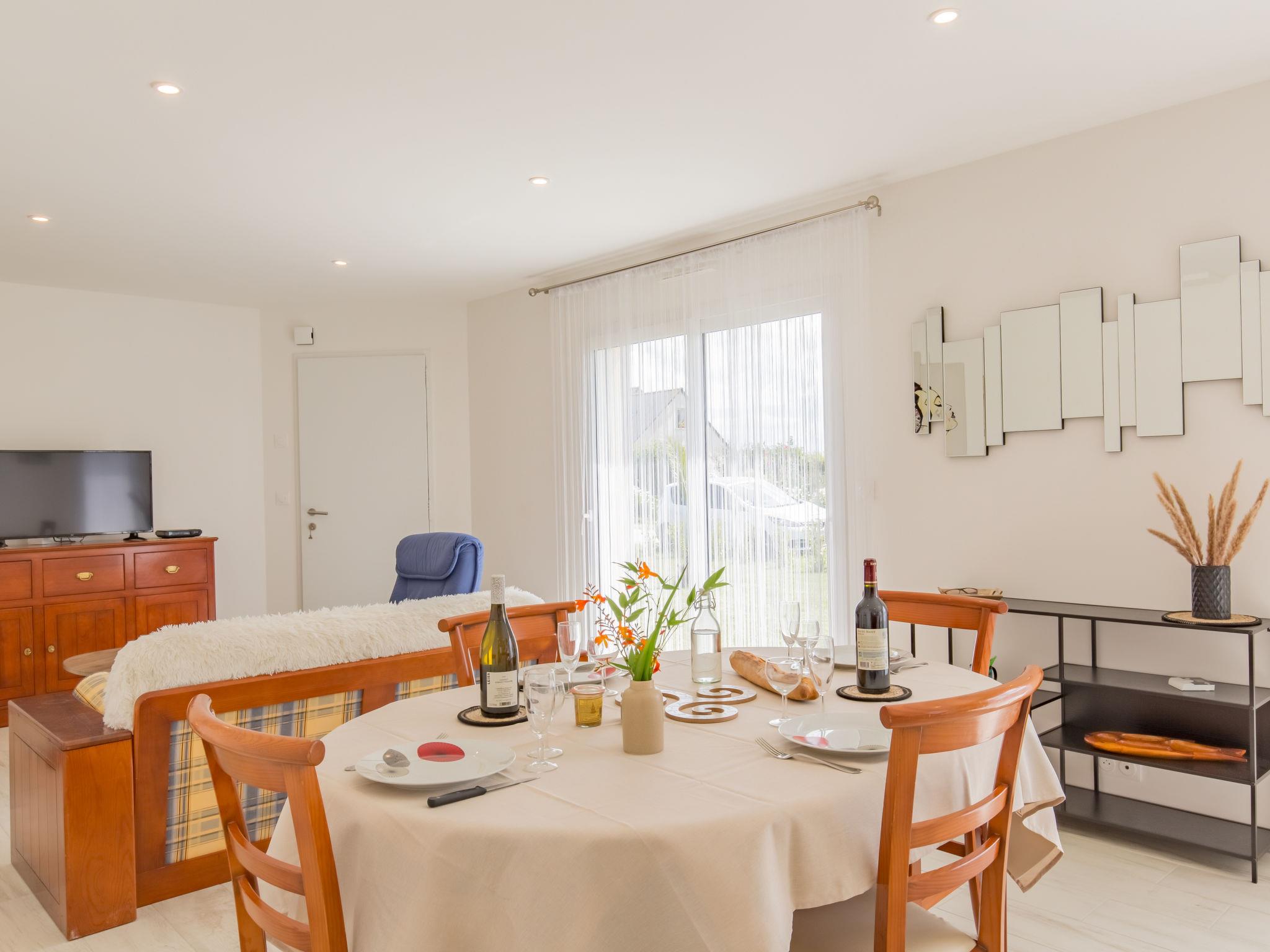 "Kervennou", 4-Zimmer-Haus 92 m2. Geräumig und hell, schön und gemütlich eingerichtet: grosses Wohn-/Esszimmer 50 m2 mit Esstisch, TV und Flachbildschirm. Ausgang zum Garten. 3 Zimmer, jedes Zimmer mit 1 franz. Bett (140 cm, Länge 190 cm). Offene Küche (Backofen, Geschirrspüler, 4 Flammen, Toaster, Wasserkocher, Mikrowelle, elektrische Kaffeemaschine). Dusche, sep. WC, Doppelwaschbecken. E-Heizung, Fussbodenheizung. Terrasse, Südlage. Terrassenmöbel, Gartengrill (mobil), Liegestühle (2). Zur Verfügung: Waschmaschine, Wäschetrockner. Internet (Wireless LAN, gratis). Bitte beachten: Nichtraucher-Haus. Rauchmelder. Inserat einer Privatperson nach Artikel 155, IV, CGI.