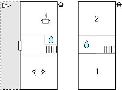 Schlafzimmer (nr. 1) - 1 Schlafmöglichkeit. (Einzelbett(en)). 2 Schlafmöglichkeiten. (Doppelbett(en)).