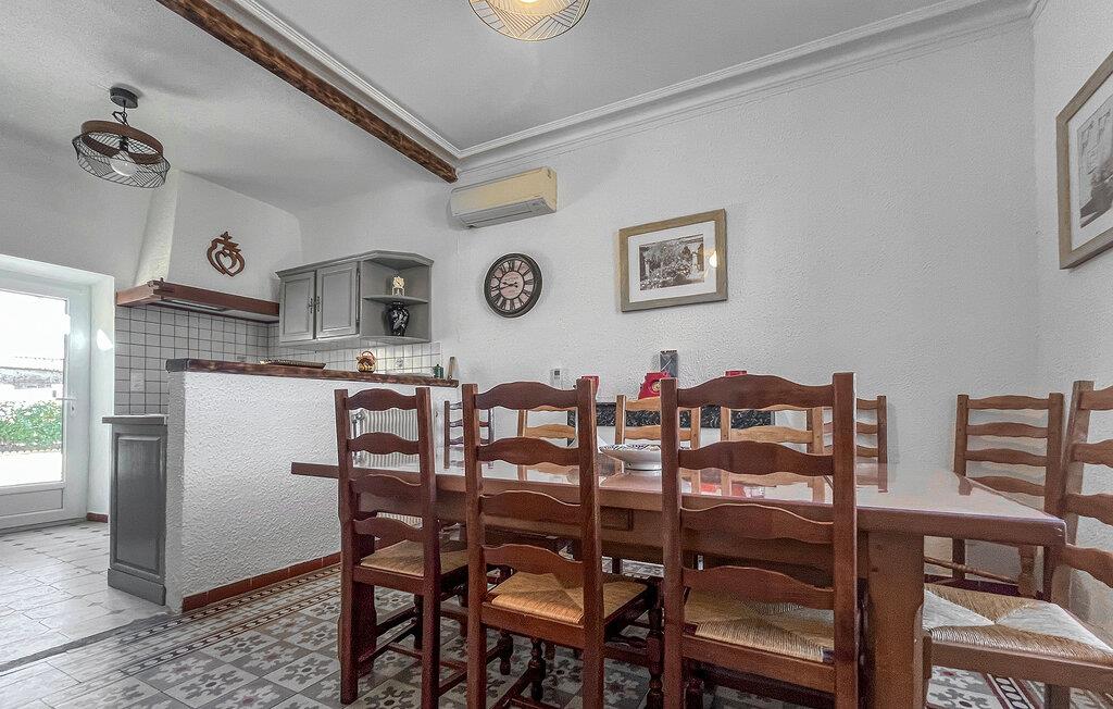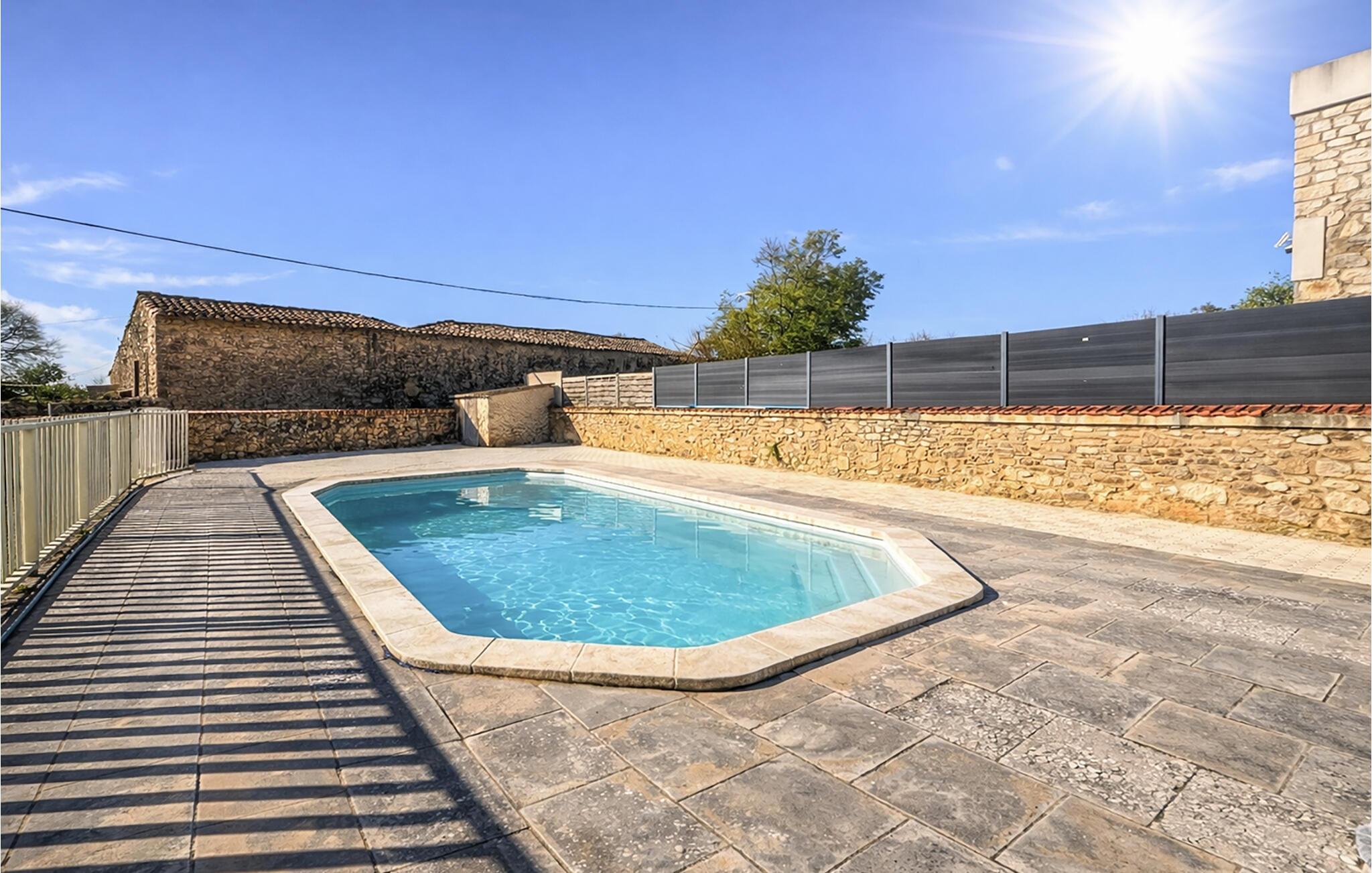 Gehen Sie hinaus in den weitläufigen Außenbereich und genießen Sie die sonnige Ruhe. Nehmen Sie am Esstisch im Hof Platz oder bereiten Sie Ihre Mahlzeiten am gemauerten Grill zu. Verbringen Sie erfrischende Stunden im privaten Pool, der von einer Terrasse mit Liegestühlen umgeben ist.