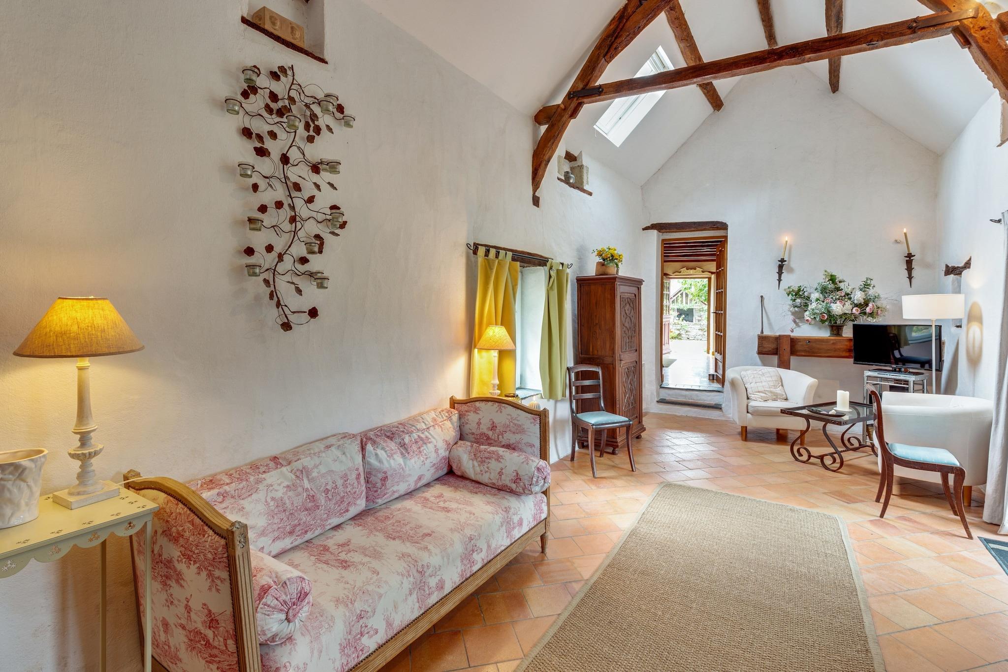 Tauchen Sie ein in die Geschichte dieses Ferienhauses aus dem 16. Jahrhundert im ruhigen Dörfchen Les Beaumonts in der Nähe von Saint-Laurent-des-Mortiers. Das Anwesen ist ideal für Paare oder kleine Familien und bietet eine natürliche Umgebung, eine überdachte Terrasse und einen üppigen Garten, der vom 15. April bis 15. Juni mit einem prächtigen Blumenbeet in voller Blüte steht. Erkunden Sie das nahegelegene Saint-Laurent-des-Mortiers (3 km) oder besuchen Sie das renommierte Pferdeturnier in Lion d'Angers (25 km). Wasserratten können in der Mayenne oder im Freibad von Châteauneuf-sur-Sarthe (11 km) schwimmen. Bootsverleih in Daon (12 km) und Angeln am Lac de Sœurdres (5 km) bieten ruhige Erholung, während der 18-Loch-Golfplatz von Champigné für sportliche Abwechslung sorgt. Entspannen Sie sich in der charmanten Sitzecke hinter dem Haus, umgeben von Blumen. Die diskreten Eigentümer wohnen 30 m entfernt auf demselben Grundstück und sorgen so für Privatsphäre und einen herzlichen Empfang. Dieses nicht klassifizierte Juwel in der Loire-Region vereint Kulturerbe, Natur und Ruhe - eine wunderbare Flucht aus dem Alltag.