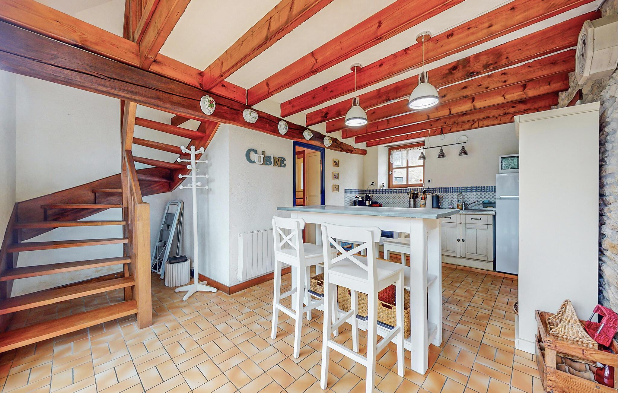 Packen Sie die Koffer aus und erkunden Sie das liebevolle Ambiente dieses geschmackvoll restaurierten Ferienhauses aus dem 19. Jahrhundert, das mit einer gelungenen Kombination aus rustikalen und modernen Elementen begeistert. Zaubern Sie in der voll ausgestatteten Landhausküche französische Spezialitäten und zelebrieren Sie diese mit Blick in den Garten. Entfachen Sie den Pelletofen und lassen Sie sich während eines Spieleabends auf dem Sofa von seiner wohligen Wärme verwöhnen.