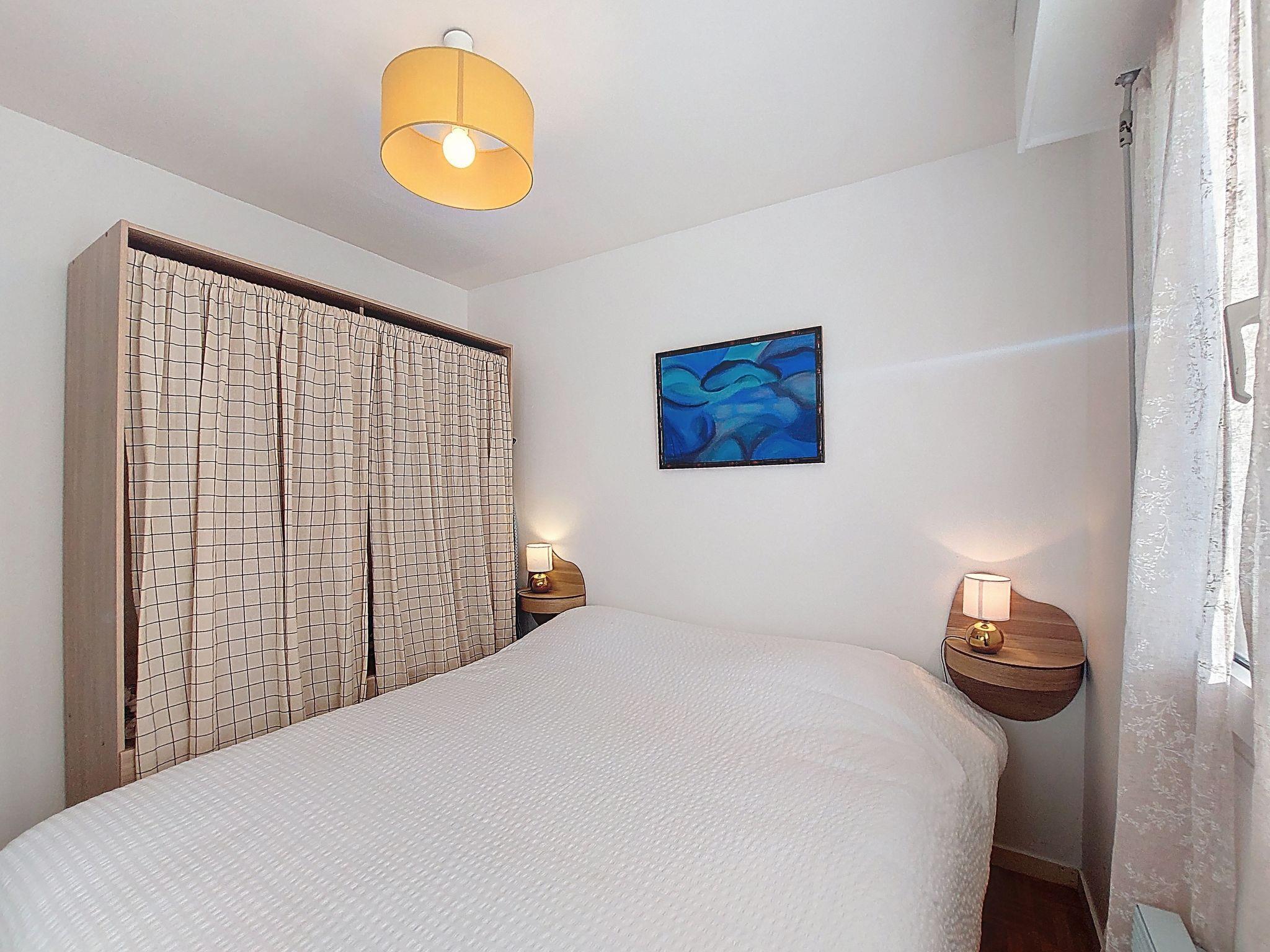 2-Zimmer-Wohnung 35 m2 im 1. Stock. Renoviert im Jahre 2024, modern eingerichtet: Wohn-/Esszimmer mit TV (Flachbildschirm). Ausgang zum Balkon. 1 kleines Zimmer mit 1 franz. Bett (1 x 160 cm, Länge 190 cm). Kochnische (Backofen, 3 Induktionskochplatten, Toaster, Mikrowelle, Tiefkühler, elektrische Kaffeemaschine). Dusche, sep. WC. E-Heizung. Balkon 7 m2. Balkonmöbel, Elektrogrill. Zur Verfügung: Waschmaschine. Internet (WLAN, extra). Garage Nr. 3. Bitte beachten: Maximal 1 Haustier/Hund erlaubt. Rauchmelder. Inserat einer Privatperson nach Artikel 155, IV, CGI.