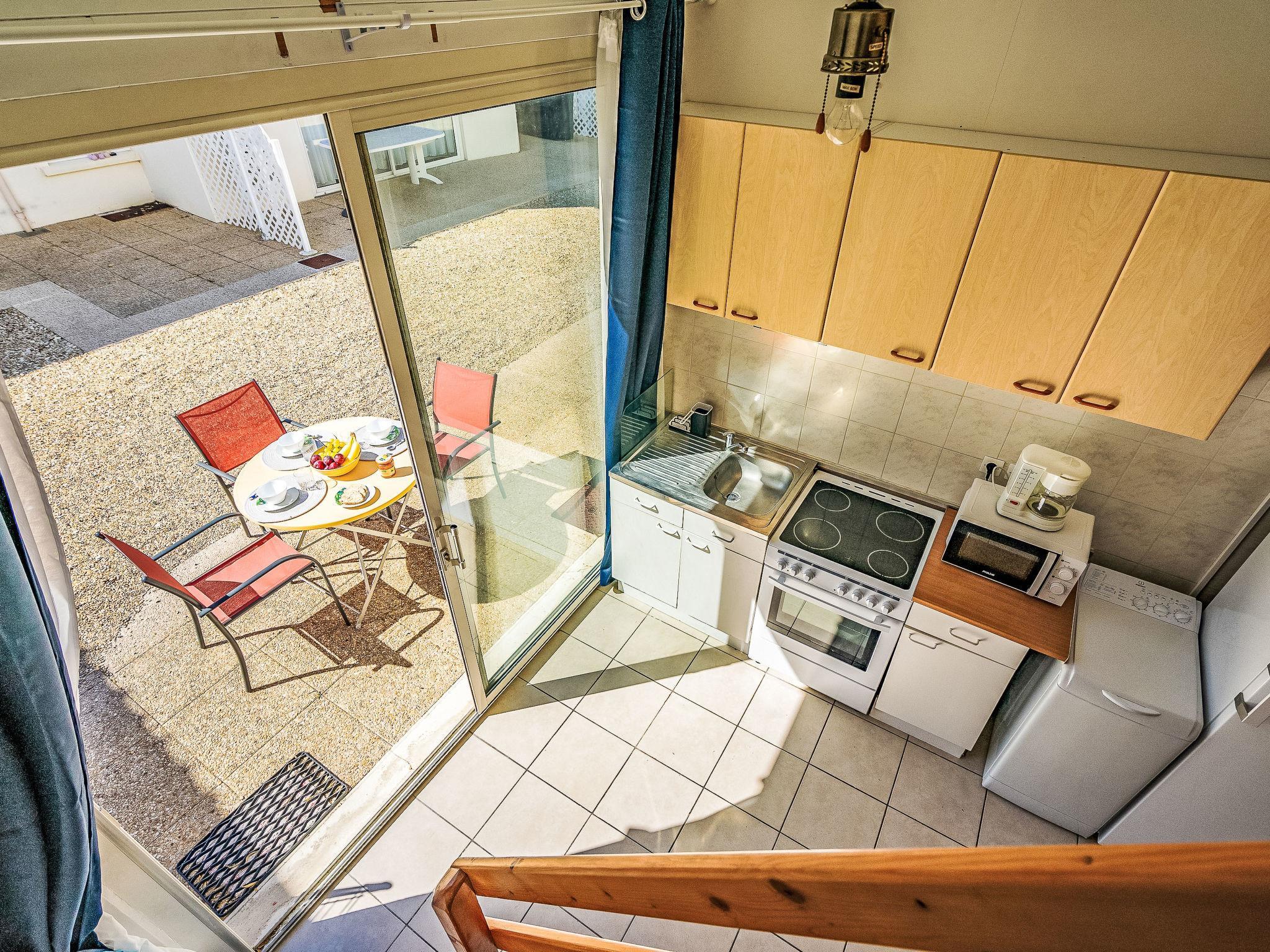 1-Zimmer-Studio 20 m2 auf 2 Stockwerken, im Erdgeschoss. Wohnzimmer mit TV (Flachbildschirm). Ausgang zur Terrasse. Kochnische (Backofen, 4 Induktionskochplatten, Toaster, Mikrowelle, Tiefkühler, elektrische Kaffeemaschine). Dusche/WC. Keine Heizmöglichkeit. Obergeschoss: (steile Treppe) Galerie mit Dachfenster mit 1 Bett (90 cm, Länge 190 cm), 1 franz. Bett (1 x 140 cm, Länge 190 cm). Kleine Terrasse 4 m2. Terrassenmöbel. Zur Verfügung: Waschmaschine. Internet (Wireless LAN, extra). Bitte beachten: Wohnung auf Parkplatzseite. Rauchmelder. Inserat einer Privatperson nach Artikel 155, IV, CGI.