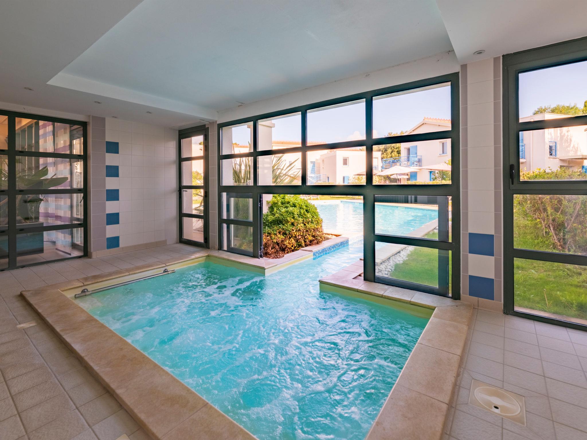 Ferienanlage "Les Carrelets". 7 Häuser im Ferienresort. 71 Wohnungen in der Residenz. 2.5 km vom Zentrum von Saint Palais-sur-Mer, 700 m vom Meer. Zur Mitbenutzung: Grundstück, Schwimmbad beheizt (9 x 4 m, 75 - 130 cm tief, saisonale Verfügbarkeit: 15.Apr. - 15.Sep.). Sprudelbad, Boccia, Kinderspielplatz. In der Anlage: Empfang, Sauna (extra). Sprudelbad, Waschmaschine, Wäschetrockner (zur Mitbenutzung, extra). Parkplatz (beschränkte Anzahl). Einkaufsgeschäft 100 m, Supermarkt 2.5 km, Bushaltestelle "Auture" 280 m, Sandstrand 1 km, Felsstrand 700 m. Bitte beachten: Das Foto ist nur ein Hausbeispiel. Die Mietobjekte können sich in Wohnfläche, Raumaufteilung, Ausstattung und Einrichtung unterscheiden.