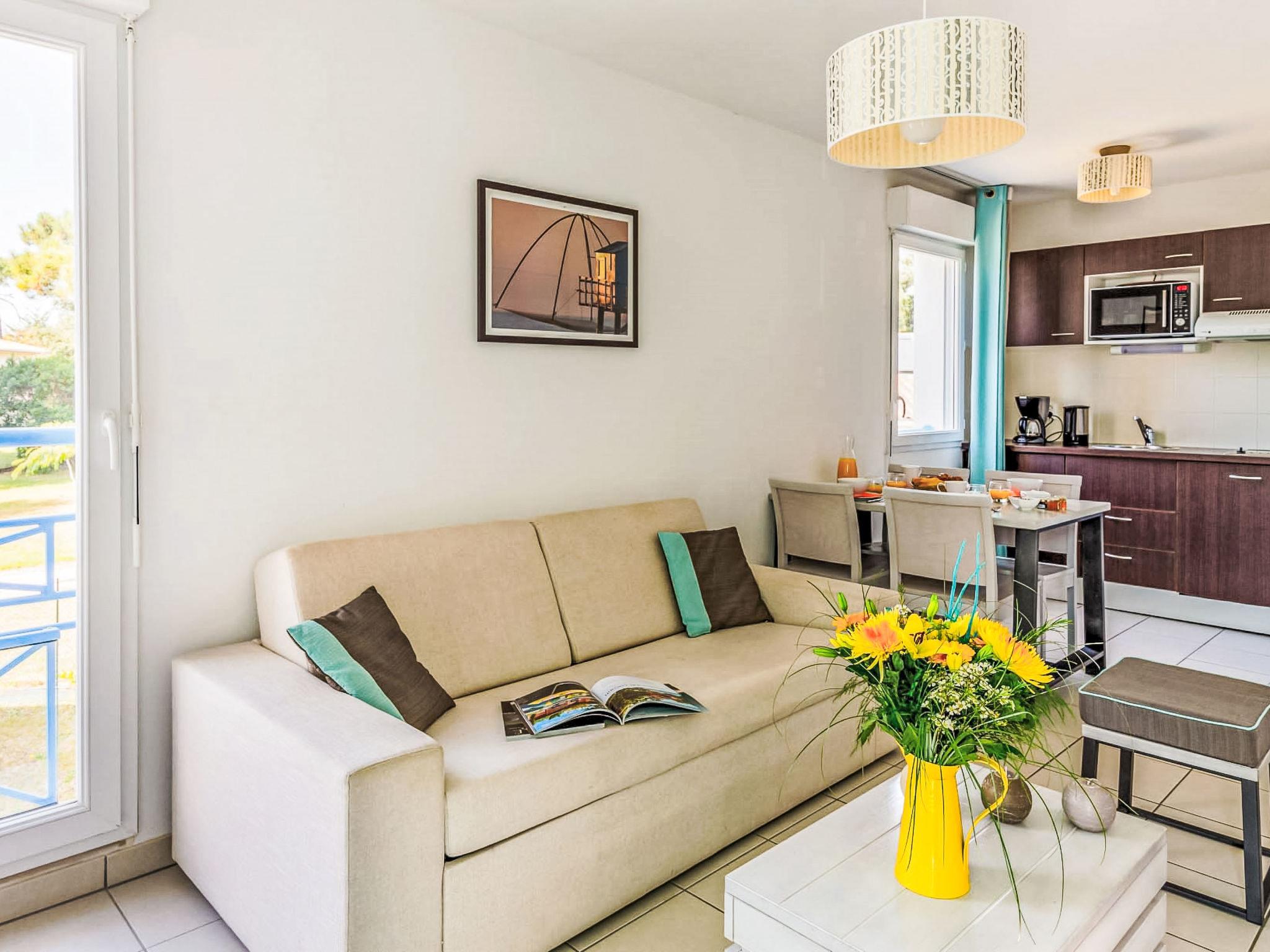 Ferienanlage "Les Carrelets". 7 Häuser im Ferienresort. 71 Wohnungen in der Residenz. 2.5 km vom Zentrum von Saint Palais-sur-Mer, 700 m vom Meer. Zur Mitbenutzung: Grundstück, Schwimmbad beheizt (9 x 4 m, 75 - 130 cm tief, saisonale Verfügbarkeit: 15.Apr. - 15.Sep.). Sprudelbad, Boccia, Kinderspielplatz. In der Anlage: Empfang, Sauna (extra). Sprudelbad, Waschmaschine, Wäschetrockner (zur Mitbenutzung, extra). Parkplatz (beschränkte Anzahl). Einkaufsgeschäft 100 m, Supermarkt 2.5 km, Bushaltestelle "Auture" 280 m, Sandstrand 1 km, Felsstrand 700 m. Bitte beachten: Das Foto ist nur ein Hausbeispiel. Die Mietobjekte können sich in Wohnfläche, Raumaufteilung, Ausstattung und Einrichtung unterscheiden.