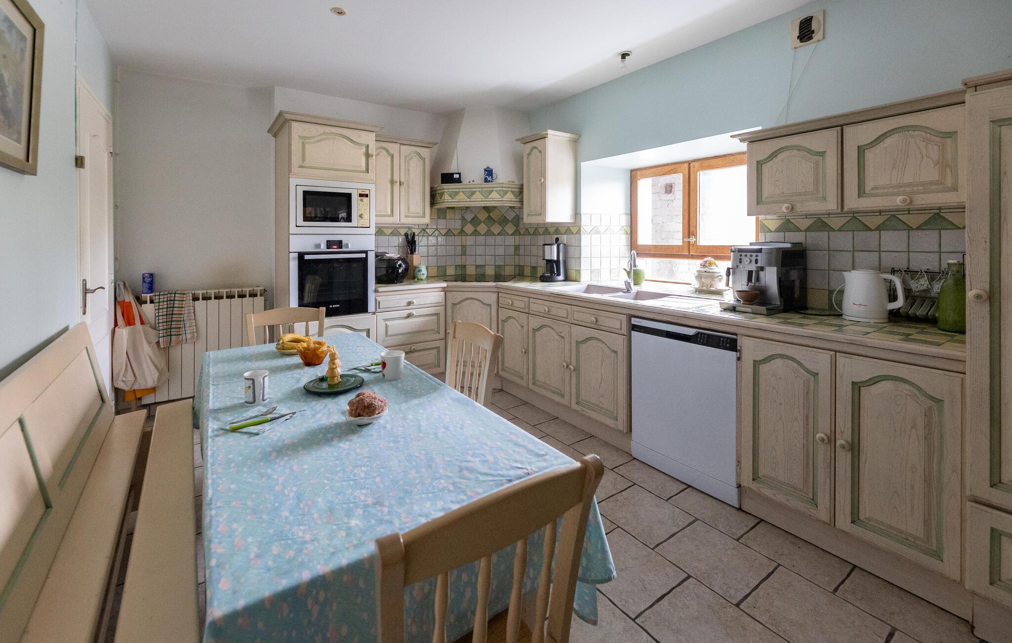 Treten Sie ein und lassen Sie sich von den vielen Annehmlichkeiten überraschen, die dieses großzügige und liebevoll restaurierte Ferienhaus für Sie bereithält. Kochen Sie gemeinsam in der geräumigen Küche und zelebrieren Sie Ihre Mahlzeiten wahlweise im rustikalen Essbereich oder im hellen Wohnzimmer. Entspannen Sie mit einem Buch vor dem Pelletofen oder veranstalten Sie einen Spieleabend auf dem Sofa.