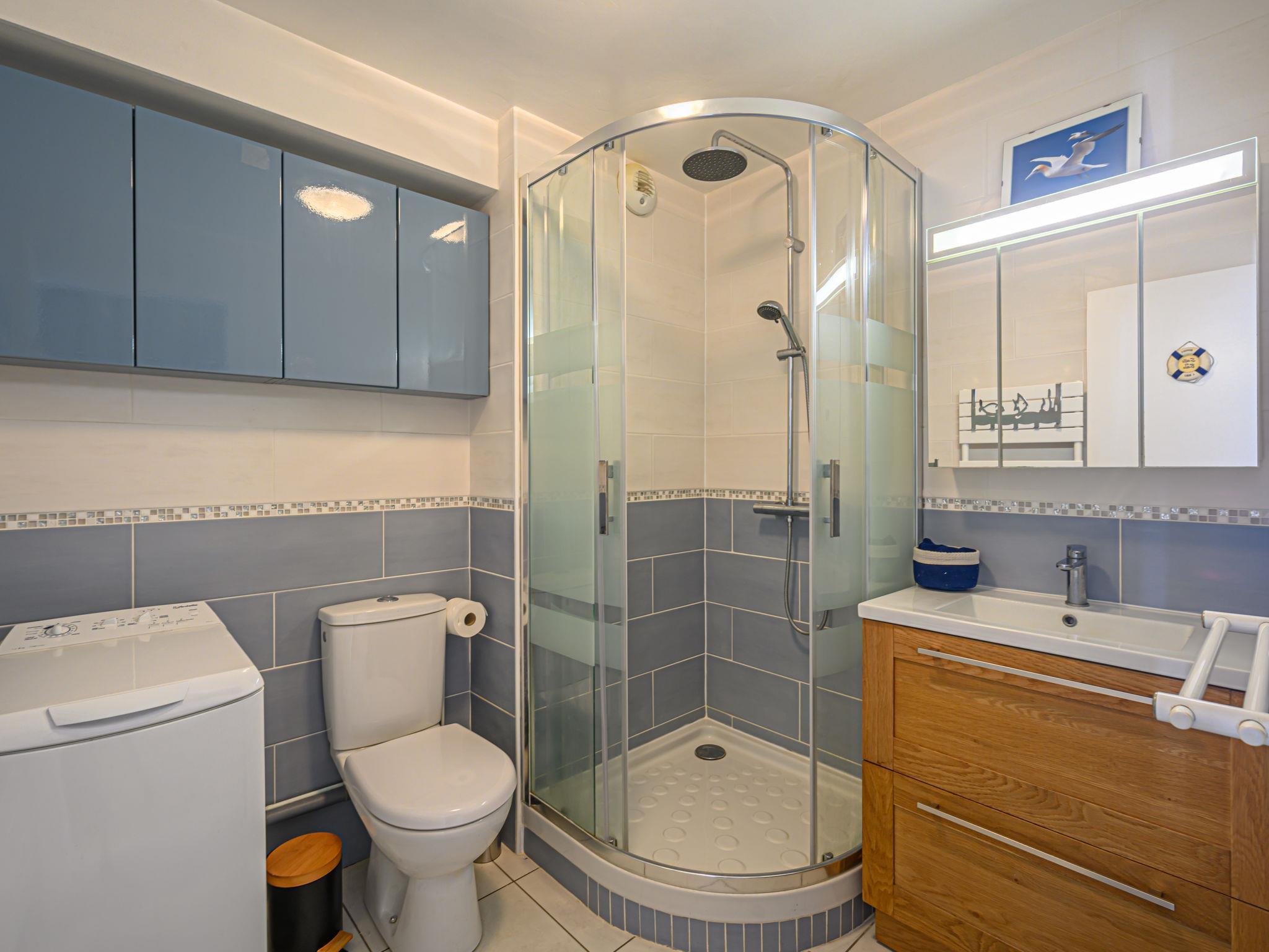 Appartementhaus "Phare de Kernevest". Am Ortsrand, 200 m vom Meer, 500 m vom Strand. Zur Mitbenutzung: Tennis, Parkplatz. Einkaufsgeschäft 2 km, Lebensmittelgeschäft 2 km, Supermarkt 2 km, Restaurant 2 km, Bäckerei 2 km, Sandstrand "Kernevest" 500 m. Golfplatz (18 Loch) 18 km, Segelschule 500 m. Nahe gelegene Sehenswürdigkeiten: La Trinité sur Mer 4.3 km, Alignements de Carnac 8 km, Auray 14 km, Presqu'Ile de Quiberon 21 km, Vannes 30 km, Belle-Ile-en-Mer.