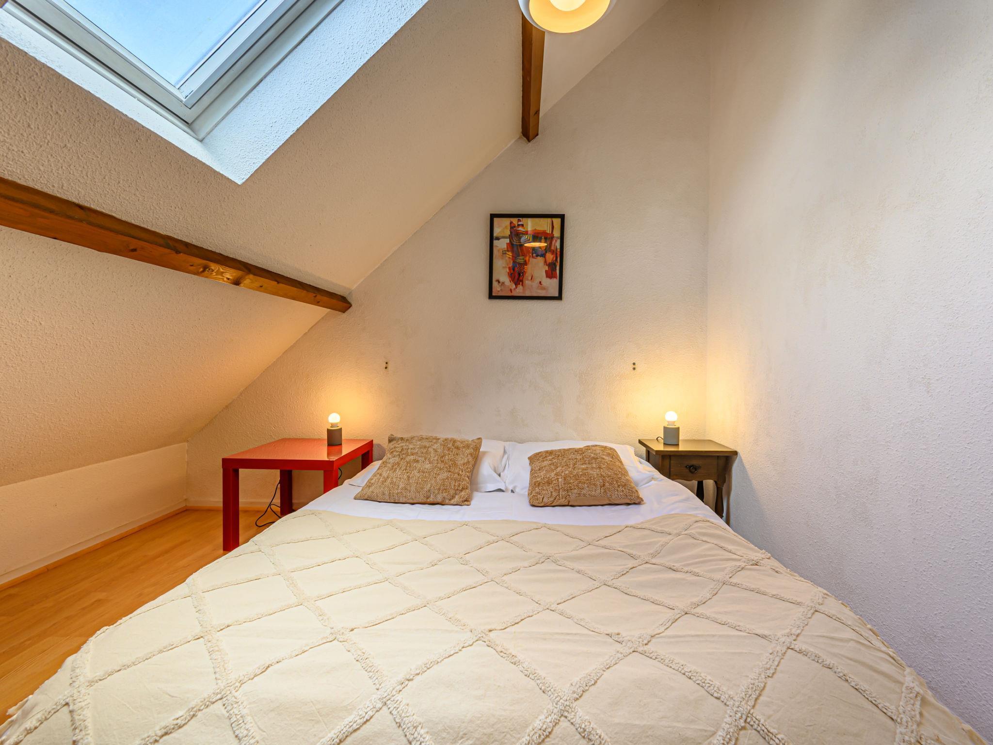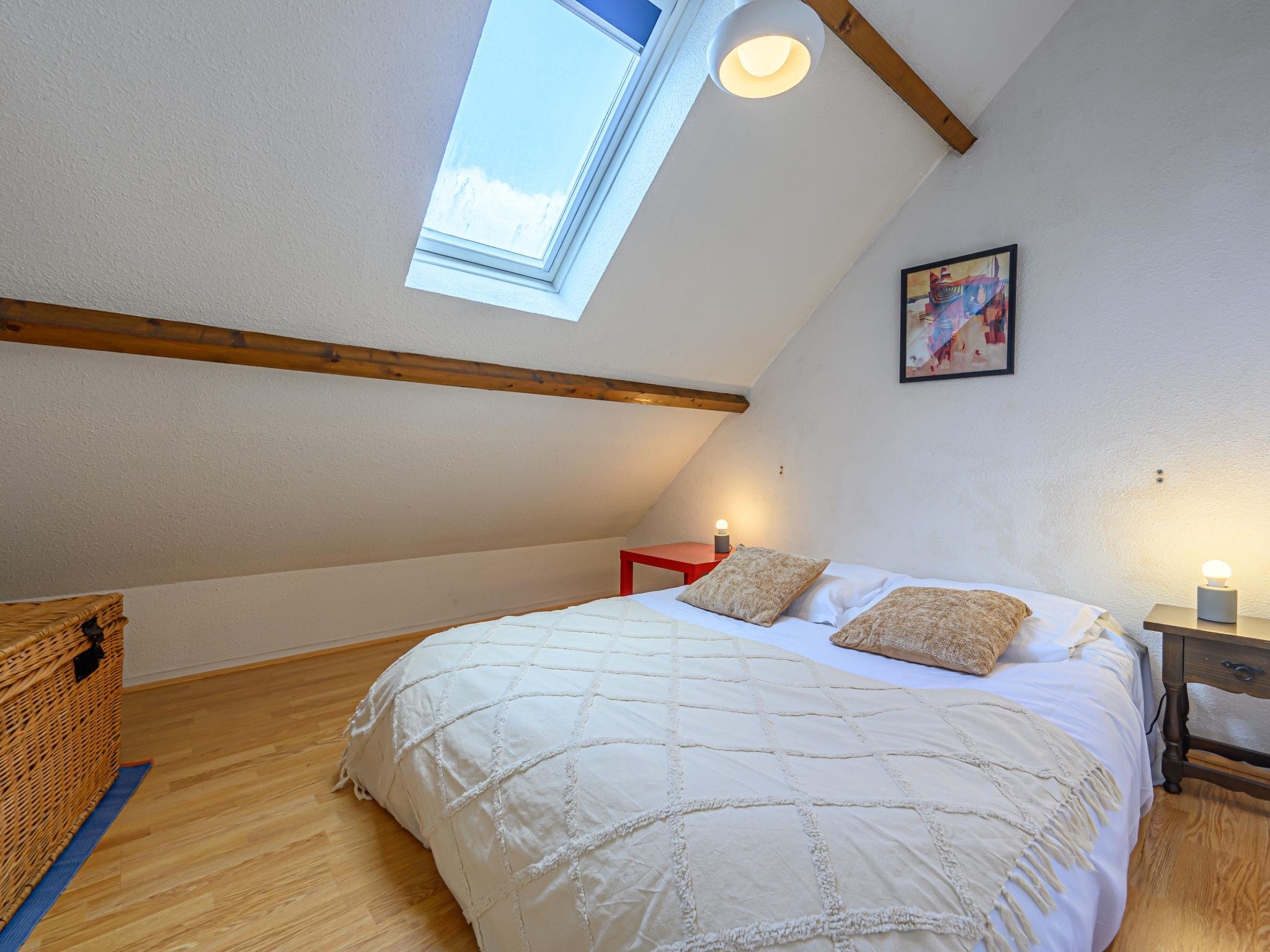 "Kernevest", 4-Zimmer-Maisonette-Wohnung 35 m2 im 1. Stock. Komfortabel eingerichtet: Esszimmer mit TV (Flachbildschirm). Ausgang zum Balkon, Richtung Süden. 1 Zimmer mit 1 franz. Bett (140 cm, Länge 190 cm). Kochnische (Backofen, Wasserkocher, Mikrowelle, elektrische Kaffeemaschine). Bad, sep. WC. Obergeschoss: 1 Zimmer mit 1 Bett (90 cm, Länge 190 cm). 1 Zimmer mit 1 franz. Bett (140 cm, Länge 190 cm). Kleiner Balkon 5 m2. Balkonmöbel. Zur Verfügung: Haartrockner. Parkplatz beim Haus. Inserat einer Privatperson nach Artikel 155, IV, CGI. 56233000050UW
