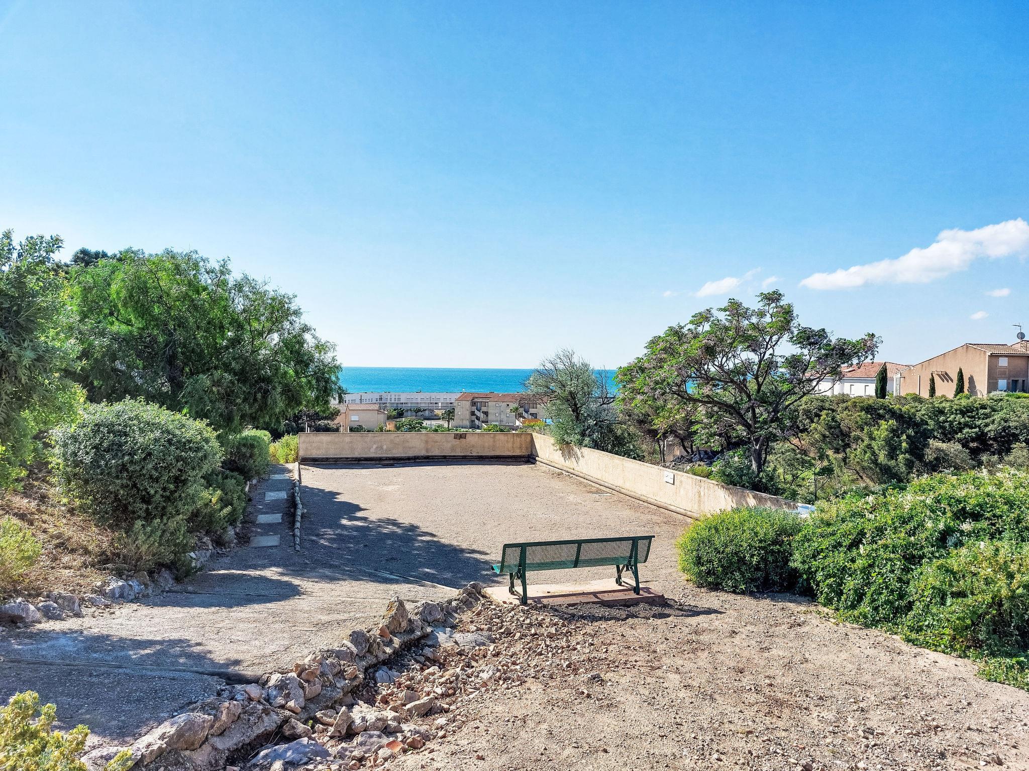 Residenz "Les Hauts d'Azur". Oberhalb von St Pierre Sur Mer, 800 m vom Zentrum, 900 m vom Meer, 800 m vom Strand. Zur Mitbenutzung: Schwimmbad (14 x 10 m, 120 - 150 cm tief, saisonale Verfügbarkeit: 01.Jun. - 30.Sep.). Basketball, Boccia, Kinderspielplatz. Einkaufsgeschäft, Lebensmittelgeschäft, Restaurant 800 m, Bushaltestelle 200 m, Sandstrand "St Pierre La Mer" 900 m, Tauchzentrum 2 km. Sporthafen 2 km, Segelschule 2 km. Nahe gelegene Sehenswürdigkeiten: Cité de Carcassonne 77 km, Réserve Africaine de Sigean 37 km, Espace Balnéoludique de Gruissan 11 km.