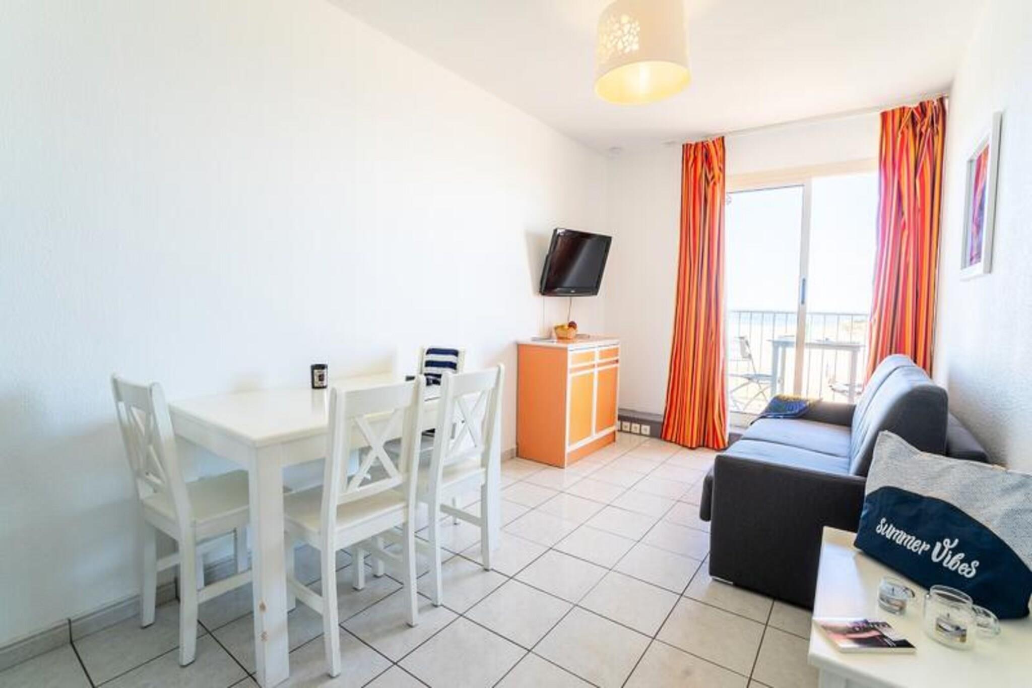 Dieses 2-Zimmer-Apartment bietet bequem Platz f?r 4 G?ste und verf?gt ?ber ein Schlafsofa im Wohnbereich und ein Schlafzimmer mit zwei Einzelbetten. Die Unterkunft ist haustierfreundlich und erlaubt bis zu 2 Haustiere pro Unterkunft. Genie?en Sie den atemberaubenden Meerblick vom privaten Balkon, ideal zum Entspannen oder Essen im Freien. Zu den weiteren Annehmlichkeiten geh?ren kostenfreies WLAN an der Rezeption und ein Fernseher zur Unterhaltung. Diese Unterkunft liegt nur wenige Meter vom Strand entfernt und bietet einfachen Zugang zu einem 5 km langen Sandstrand, der sich ideal f?r Strandaktivit?ten wie Volleyball und Wassersport eignet. Die Umgebung bietet verschiedene Outdoor-Abenteuer wie Wandern im Massif de la Clape, Radfahren entlang der K?ste und Reiten. Nachts l?dt die lebhafte Atmosph?re von Saint-Pierre-la-Mer Sie ein, die lebhaften Restaurants, Bars und Nachtm?rkte zu erkunden, wobei Veranstaltungen und Musik den ganzen Abend ?ber f?r Unterhaltung sorgen. Das Apartment verf?gt ?ber eine voll ausgestattete K?chenzeile zur Zubereitung von Mahlzeiten und ein Badezimmer mit Dusche oder Badewanne. Dar?ber hinaus haben Sie Zugang zu nahe gelegenen ?ffentlichen Parkpl?tzen. Ganz gleich, ob Sie Entspannung am Strand suchen oder die bezaubernde Umgebung erkunden m?chten, diese Unterkunft ist ein idealer Ausgangspunkt f?r Ihren Aufenthalt.