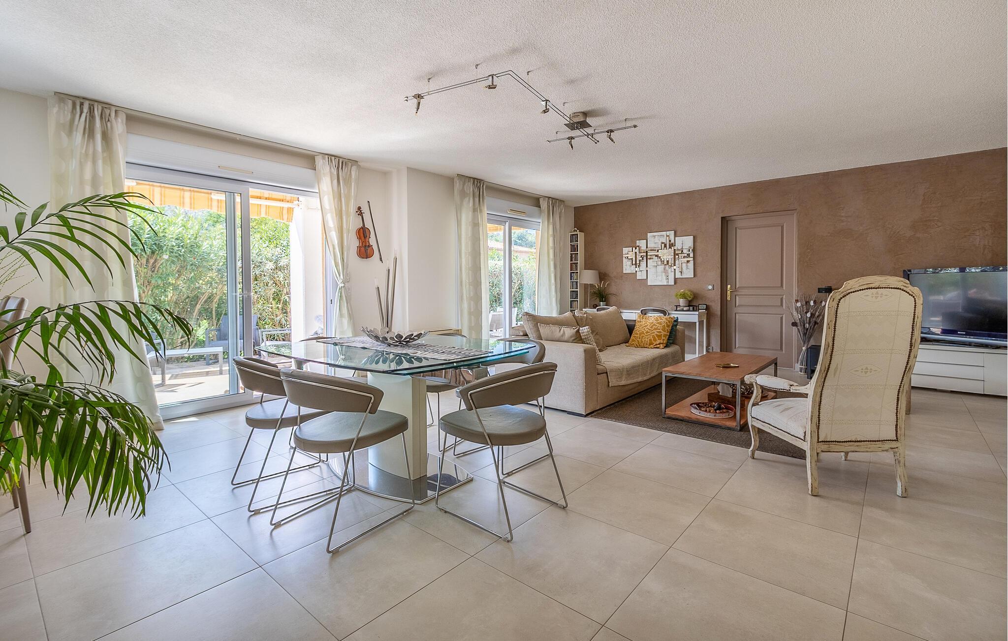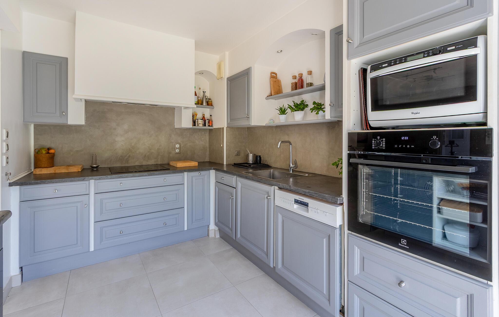 Dieses helle und behagliche Ferienhaus bietet Ihnen ein geräumiges Zuhause, um die reizvolle Côte d’Azur in vollen Zügen zu genießen. Zaubern Sie köstliche Gerichte in der offenen Küche, planen Sie Ihre Unternehmungen bei entspannten Mahlzeiten im offenen Wohnbereich und lassen Sie sich nach einem erlebnisreichen Tag auf dem gemütlichen Sofa nieder.