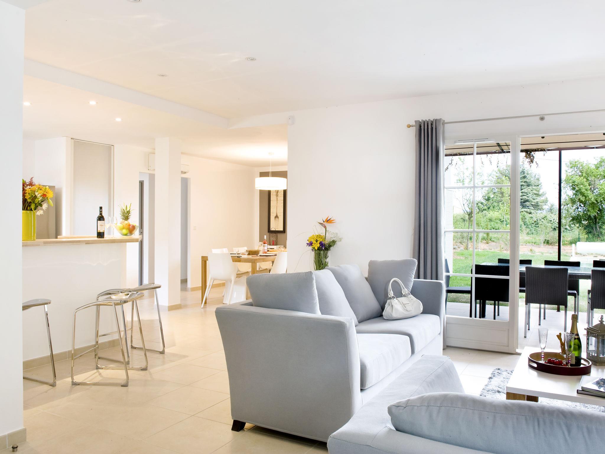 "Le Clos Savornin V8IC", 4-Zimmer-Haus 115 m2 auf 2 Stockwerken. Komfortabel und geschmackvoll eingerichtet: Wohn-/Esszimmer mit 1 Doppeldiwanbett, Esstisch, TV, Stereoanlage und DVD. Ausgang zur Terrasse. 1 Zimmer mit 1 franz. Bett (160 cm), Bad/Dusche und Doppelwaschbecken. Ausgang zum Garten. Offene Küche (Backofen, Geschirrspüler, 4 Glaskeramikplatten, Toaster, Wasserkocher, Mikrowelle, Tiefkühler, elektrische Kaffeemaschine) mit Bar. Sep. WC. Obergeschoss: 2 Zimmer, jedes Zimmer mit 2 Betten und Dusche. Sep. WC. E-Heizung, Klimaanlage. Terrasse. Terrassenmöbel, Liegestühle, Abstellkammer. Schöne Sicht auf die Landschaft. Zur Verfügung: Waschmaschine, Wäschetrockner. Internet (WLAN, gratis). Parkplatz (1 Auto), Garage (1 Auto). Bitte beachten: Nichtraucher-Haus. Maximal 2 Haustiere/Hunde erlaubt. Rauchmelder, Feuerlöscher. Bitte beachten Sie: Die WIFI-Verbindung ist für 3 Geräte vorgesehen.