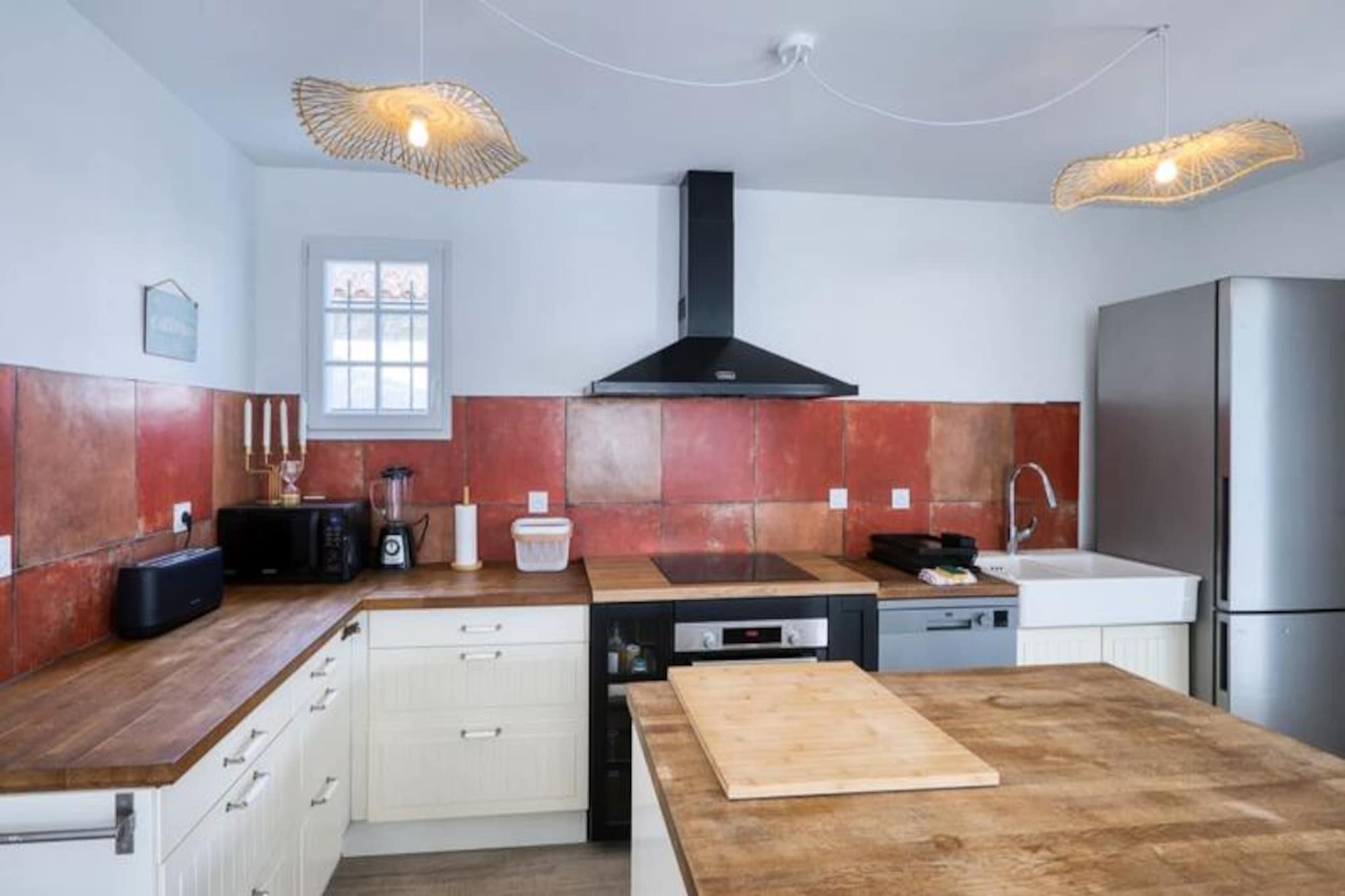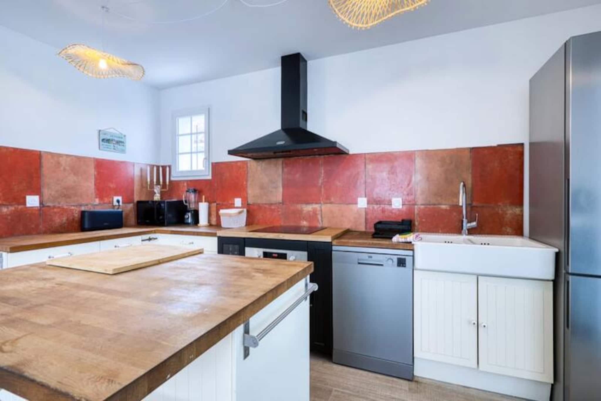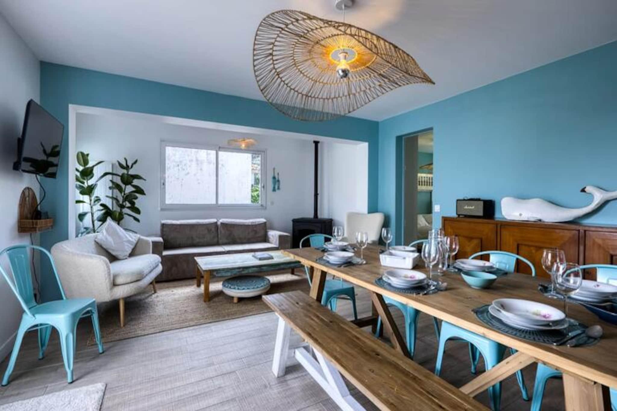 Inmitten der idyllischen Landschaft von Saint-Trojan-les-Bains auf der malerischen Île d'Oléron lädt dieses charmante 120 m² große Ferienhaus Sie ein, die perfekte Mischung aus Ruhe und Küstenflair zu erleben. Mit seiner Einrichtung im Bohème-Stil und dem atemberaubenden Blick auf die Marschlandschaft ist dieses Refugium ein Paradies für Familien und Gruppen bis zu neun Personen, die einen unvergesslichen Urlaub verbringen möchten. Hier schaffen die sanfte Meeresbrise und die Klänge der Natur eine Atmosphäre purer Entspannung. Im Inneren erwartet Sie ein heller und geräumiger Wohnbereich, der mit viel Liebe zum Detail für Komfort und Geselligkeit gestaltet wurde. Der offene Wohn- und Essbereich ist ideal für gemütliche Abende, und die voll ausgestattete Küche mit modernen Geräten wie Geschirrspüler, Mixer und Grill bietet alles, was Sie für die Zubereitung köstlicher Mahlzeiten benötigen. Das Haus verfügt über vier geschmackvoll eingerichtete Schlafzimmer mit einer Mischung aus Doppelbetten und Einzelbetten und ist somit ideal für Erwachsene und Kinder. Zusätzliche Annehmlichkeiten wie Waschmaschine, WLAN, Spiele und Kinderspielzeug sorgen für einen entspannten Aufenthalt für alle Altersgruppen. Entdecken Sie draußen eine private, 1300 m² große Gartenoase mit möblierter Terrasse, Bouleplatz und viel Platz zum Essen und Entspannen im Freien. Private Parkplätze bieten zusätzlichen Komfort, und die Nähe zu Radwegen macht die Erkundung der Insel zum Kinderspiel. Nur wenige Gehminuten entfernt finden Sie den charmanten Hafen, unberührte Strände und renommierte Restaurants wie …