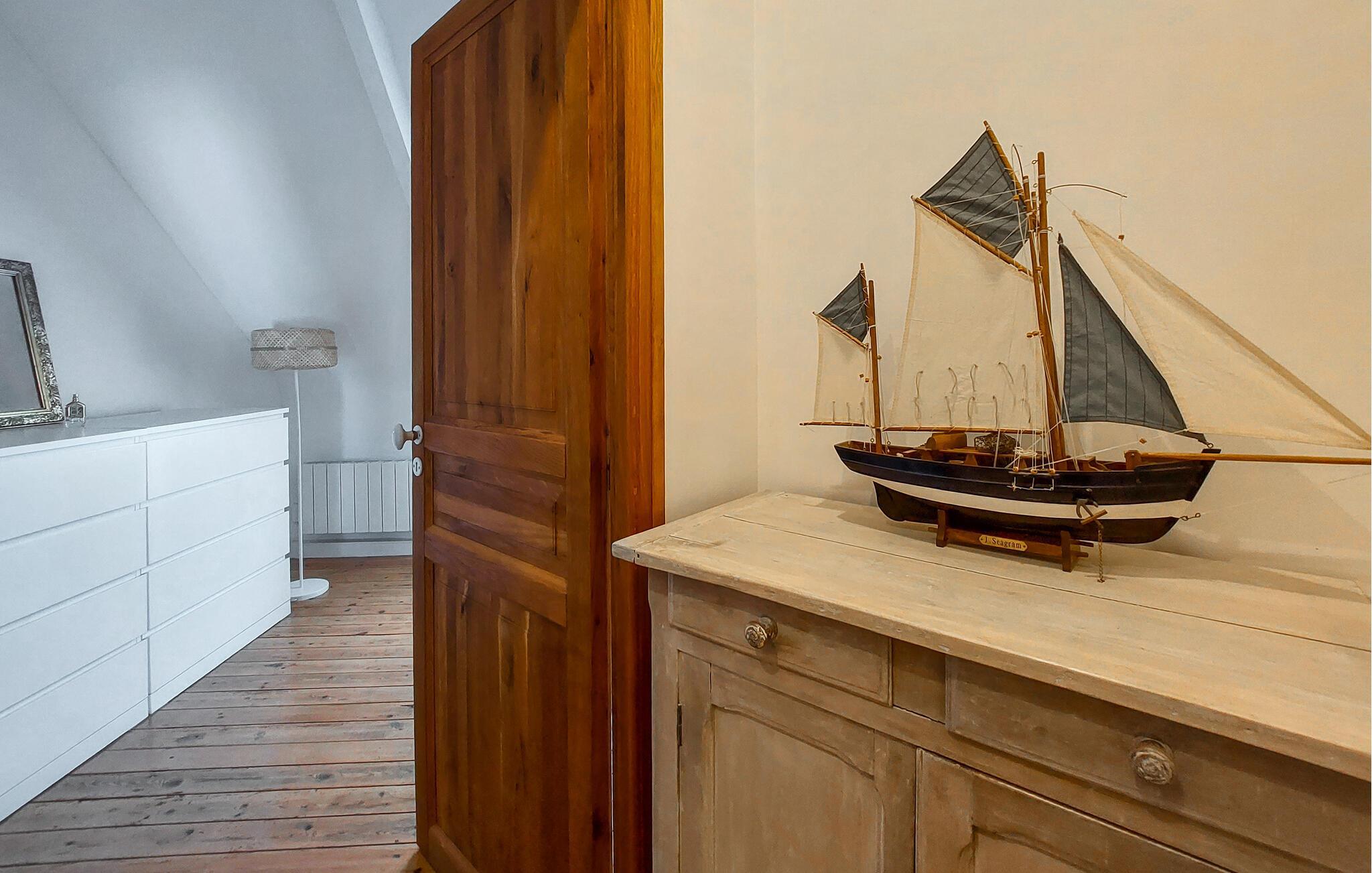 Lassen Sie sich vom hellen und geschmackvoll eingerichteten Interieur dieses bretonischen Natursteinhauses in erster Meereslinie überraschen. Freuen Sie sich aufs Kochen in der offenen Küche und nehmen Sie am rustikalen Holztisch Platz, der einen reizvollen Kontrast zur frischen, modernen Wohnatmosphäre bildet. Lassen Sie die angenehme Meeresbrise durchs gemütliche Wohnzimmer ziehen, während Sie mit einem Buch auf dem Sofa entspannen oder sich auf ein spannendes Brettspiel konzentrieren.