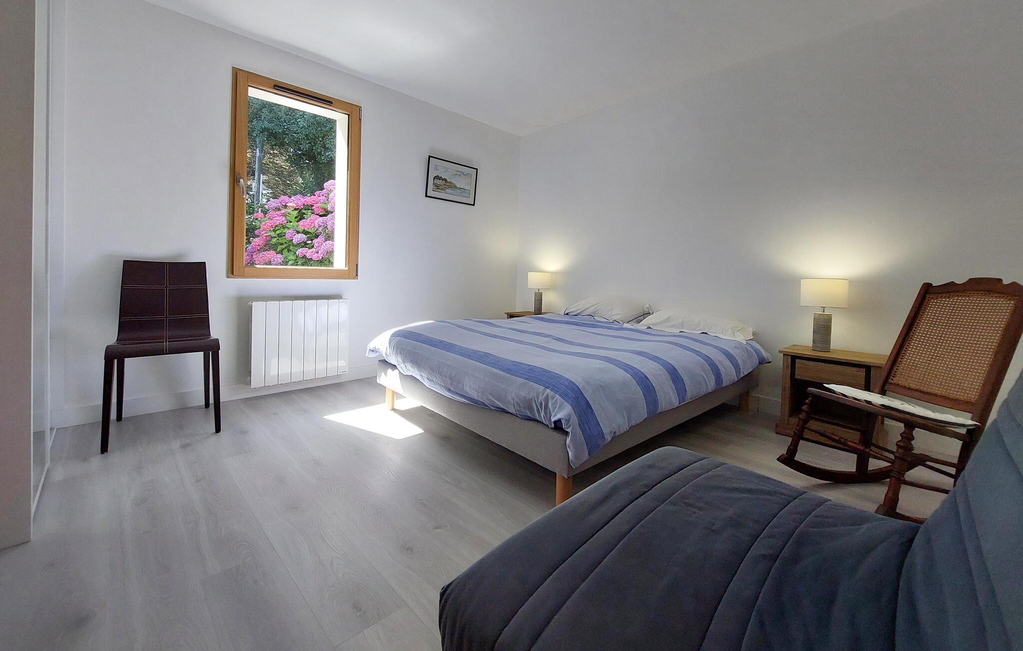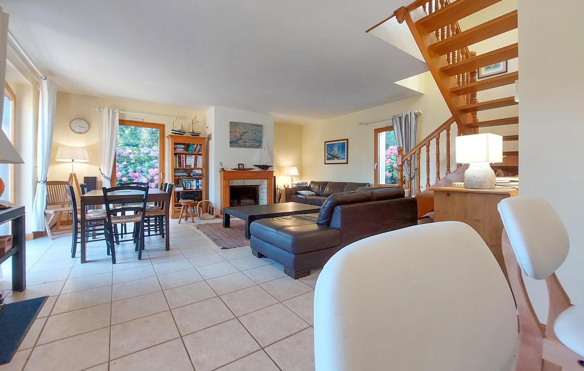 Willkommen in diesem großen und schönen Steinhaus in Saint-Gildas-de-Rhuys. Dieses familienfreundliche Refugium bietet Ihnen eine angenehme und geräumige Atmosphäre, die ideal für Ihre gemeinsame Urlaubstage ist. Die lichtdurchfluteten Innenräume sind geschmackvoll eingerichtet und strahlen eine warme Behaglichkeit aus. Befeuern Sie am Abend den Kaminofen und machen Sie es sich beim Spielen und Plaudern im Wohnzimmer gemütlich.