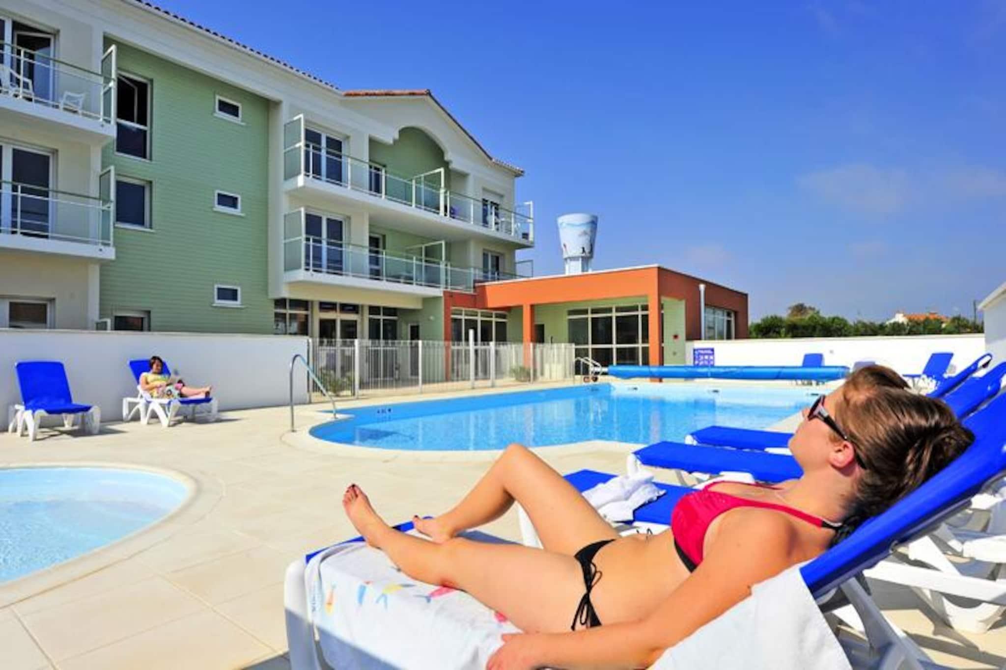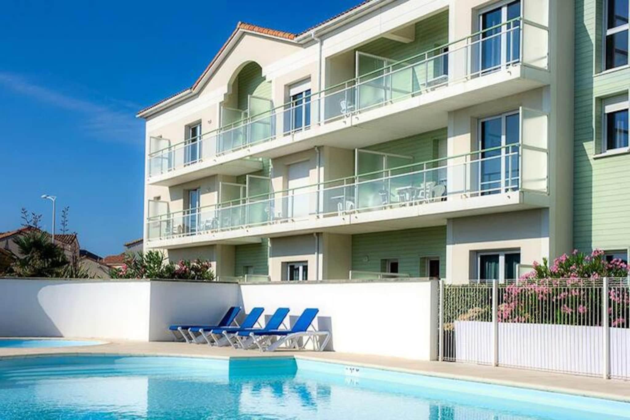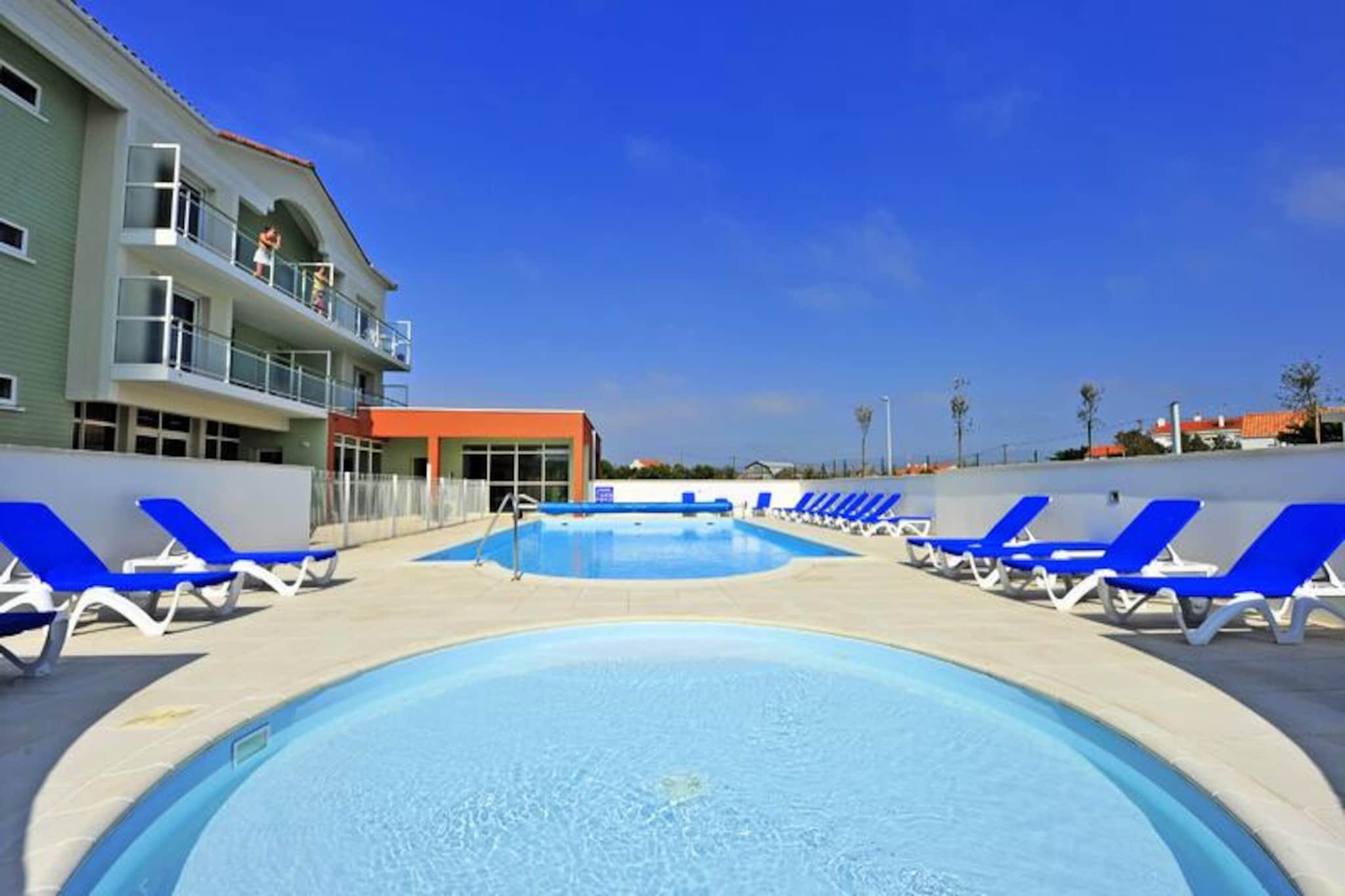 In Saint Gilles Croix de Vie liegt die Résidence Goélia La Grande Plage*** ideal, 400 m von einem 3,6 km langen Strand entfernt. Der Zugang zu diesem Strand erfolgt zu Fuß über eine Fußgängerbrücke. Die Residenz besteht aus Doppelhäusern und Wohnungen. Diese Meeresumgebung ist das wahre „Plus“ der Residenz. Surfbegeisterte werden im Bereich „La Passerelle“, der diesem Sport gewidmet ist, genau das finden, was sie suchen. Der Strandclub wird Kinder dank der angebotenen Aktivitäten begeistern: Mannschaftssportarten, Hüpfburg, Trampoline (Club unabhängig von der Residenz). Darüber hinaus sind alle Geschäfte und Aktivitäten des Resorts (Märkte, Restaurants, Bars, Nachtclubs usw.) 1,8 km entfernt. Für Ihre Freizeitaktivitäten stehen Ihnen in der Residenz selbst ein beheizter Außenpool und ein Wellnessbereich (gegen Aufpreis) mit Sauna und Whirlpools zur Verfügung. 3 Zimmer 6 Personen. Terrasse oder Balkon. Wohnzimmer mit ausziehbarer Schlafcouch für 2 Personen, Schlafzimmer mit 2 Einzelbetten, Schlafzimmer mit Doppelbett (140 x 190) mit angrenzendem Duschbad Ausgestattete Küche. Badezimmer oder Dusche und WC. WLAN-Zugang – an der Rezeption während der Euro-Öffnungszeiten; Öffnung davon. Der Zugang ist auf 30 Minuten pro Tag und Erwachsener begrenzt. Preise für unbegrenzten Zugang: 6 EURO/Tag, 21 EURO/Woche, 31 EURO/2 Wochen. Minutenpakete: 5€ für 60 Minuten und 8€ für 2 Stunden. Haustiere erlaubt – 10,50 EURO/Nacht, 49 EURO/Woche, 98 EURO/Woche für 3 bis 4 Wochen. Bitte beachten Sie bei der Anmeldung (Tollwut-Zertifikat erforderlich). Kampfhunde (Pittbull) und 2. Katze. (Bewachung/Verteidigung) sind verboten. Nur 1 Tier pro Unterkunft. Kaution (zusätzlich) - 250 Baby-Set – (Bett, Stühle, Badewanne) 5 EURO/Aufenthalt, muss gleichzeitig mit der Unterkunft und je nach Verfügbarkeit im Voraus gebucht werden. Bettwäsche - 12,50 EURO/Wechsel Handtücher – 10 EURO/Person/Wechsel Endreinigung – (ausgenommen Kochnische) 60 € bei 89€ abhängig von der Art der Vermietung. Endreinigung oder tägliche Reinigung auf Anfrage Parkplatz – ein Parkplatz inklusive, je nach Verfügbarkeit Frühstück: 13 EURO/Tag/Erwachsener und 7,5 EURO/Tag/Kind unter 16 bis 12 Jahren. Am Vortag zu reservieren und vor Ort zu bezahlen. Schwimmbad – beheizter Außenbereich – freier Zugang, geöffnet von April bis Ende September (je nach Wetterlage) + rundes Kinderbecken Sauna - Vor Ort zu bezahlen Kurtaxe (zusätzliche Gebühr) – zahlbar vor Ort, je nach Verfügbarkeit Fernsehen - inklusive