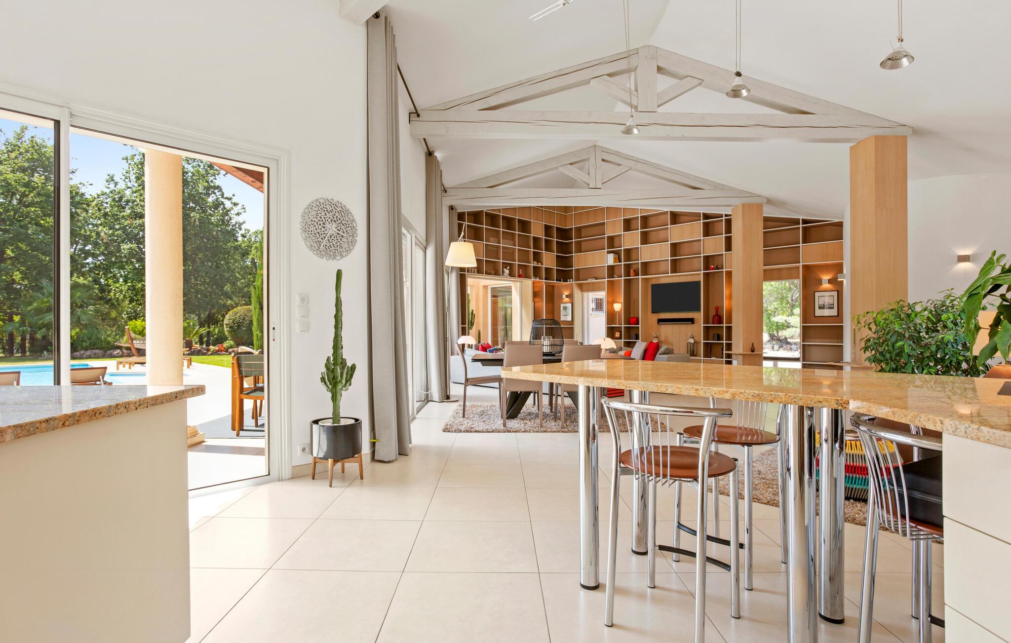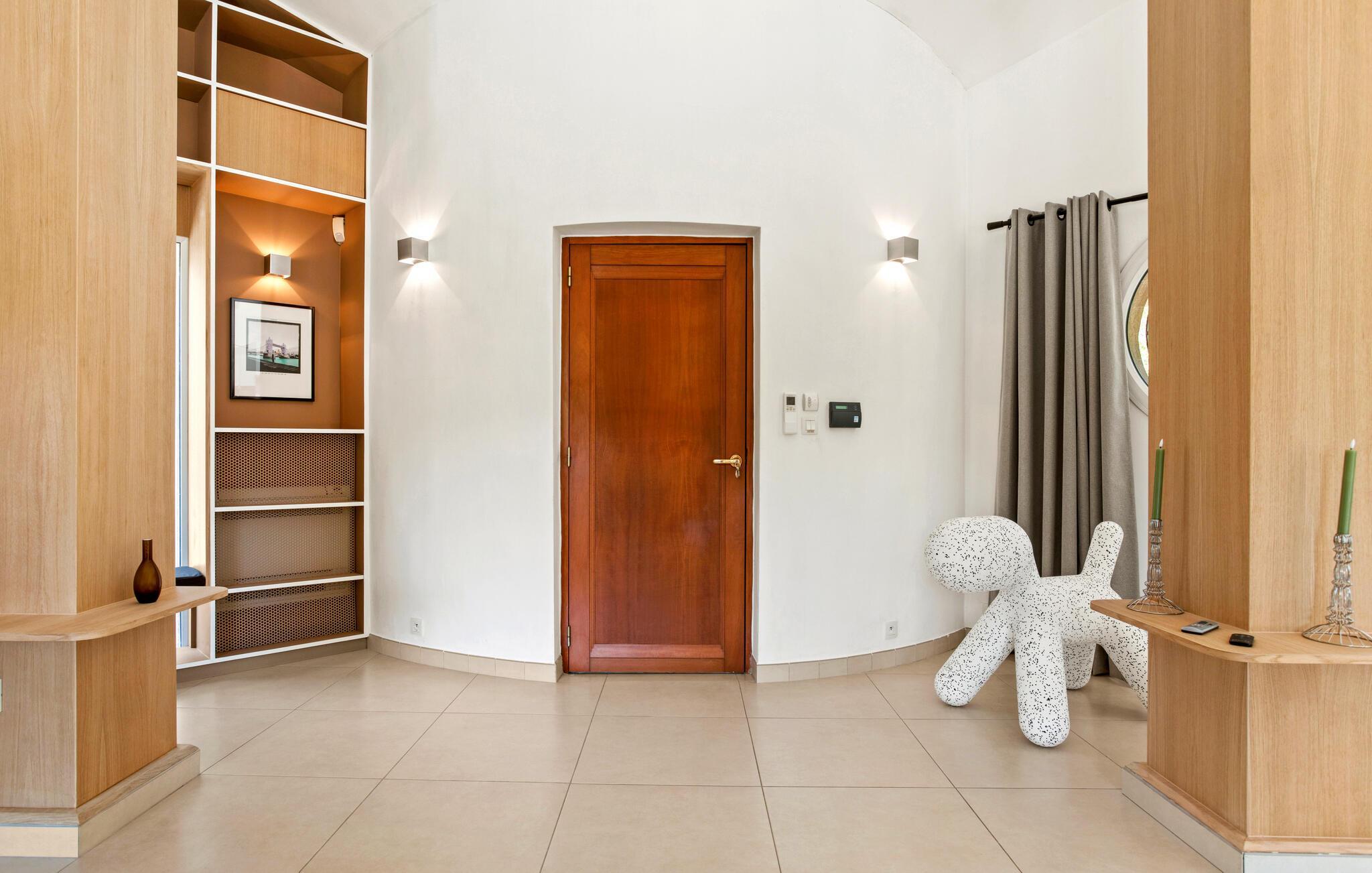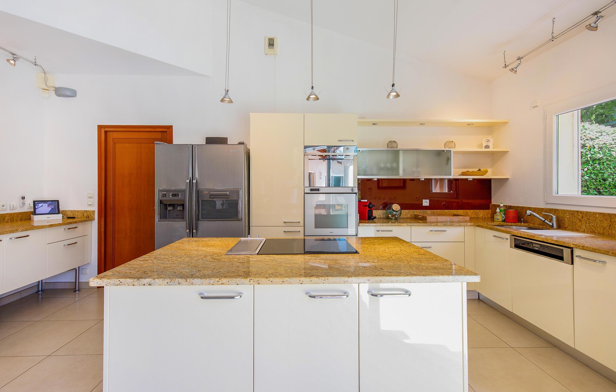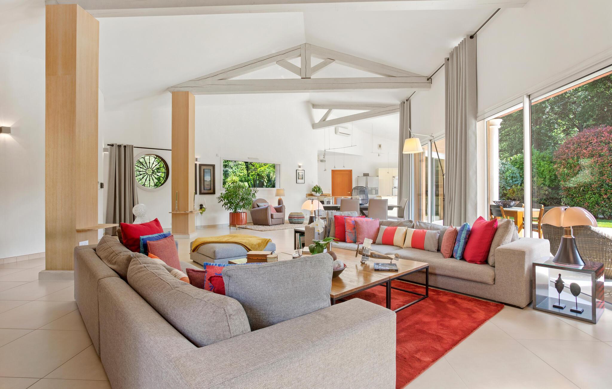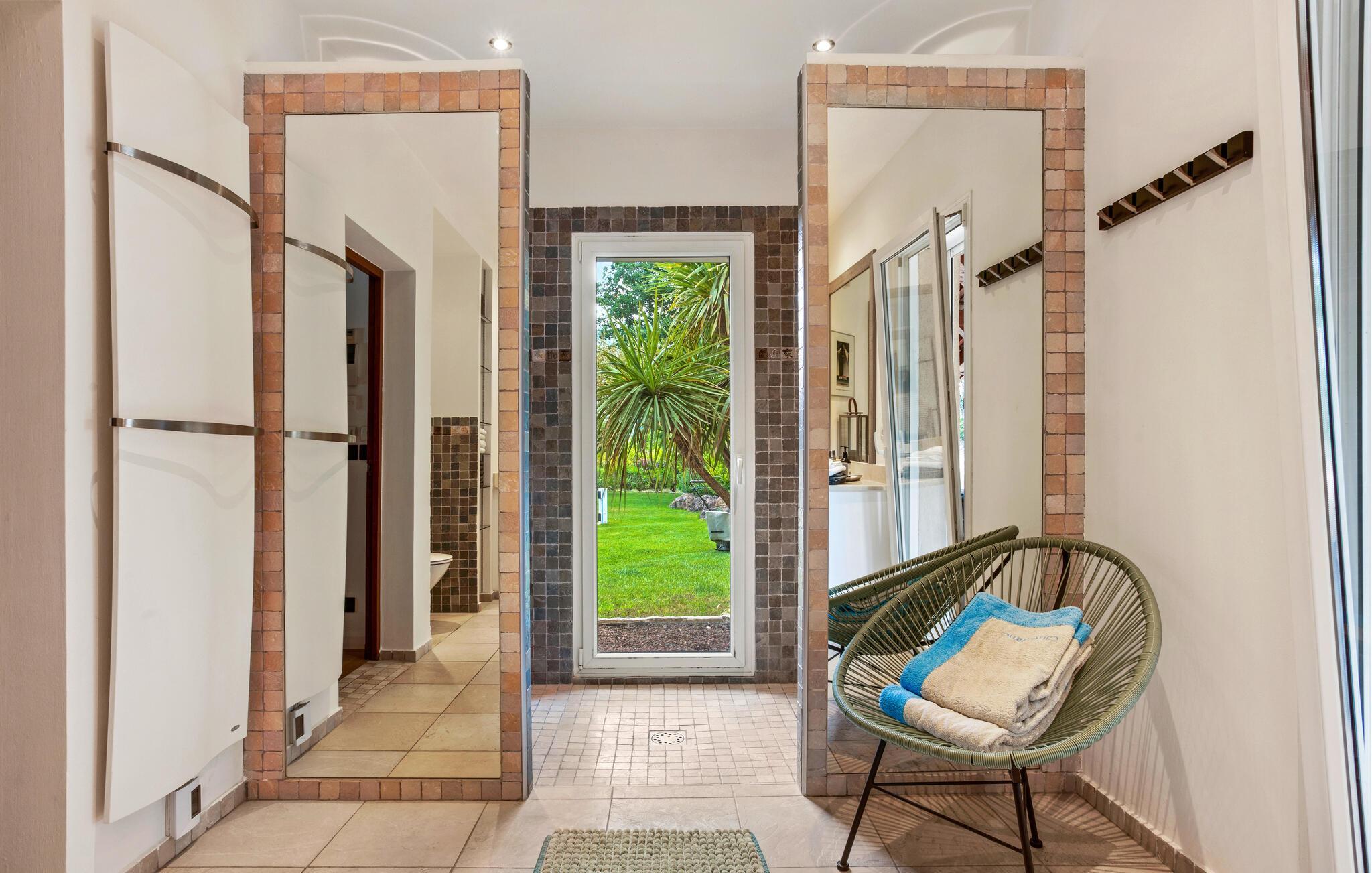 Dieses geräumige und hochwertig ausgestattete Anwesen liegt eingebettet in einen wunderschönen Park und bietet Ihnen absolute Privatsphäre inmitten einer zauberhaften Vegetation. Machen Sie es sich im stilvollen Wohnbereich bequem, wo große Fensterfronten einen herrlichen Blick ins Grüne eröffnen. Trainieren Sie im Fitnessraum, entspannen Sie in der Sauna und zelebrieren Sie gesellige Kochabende sowie fröhliche Mahlzeiten.