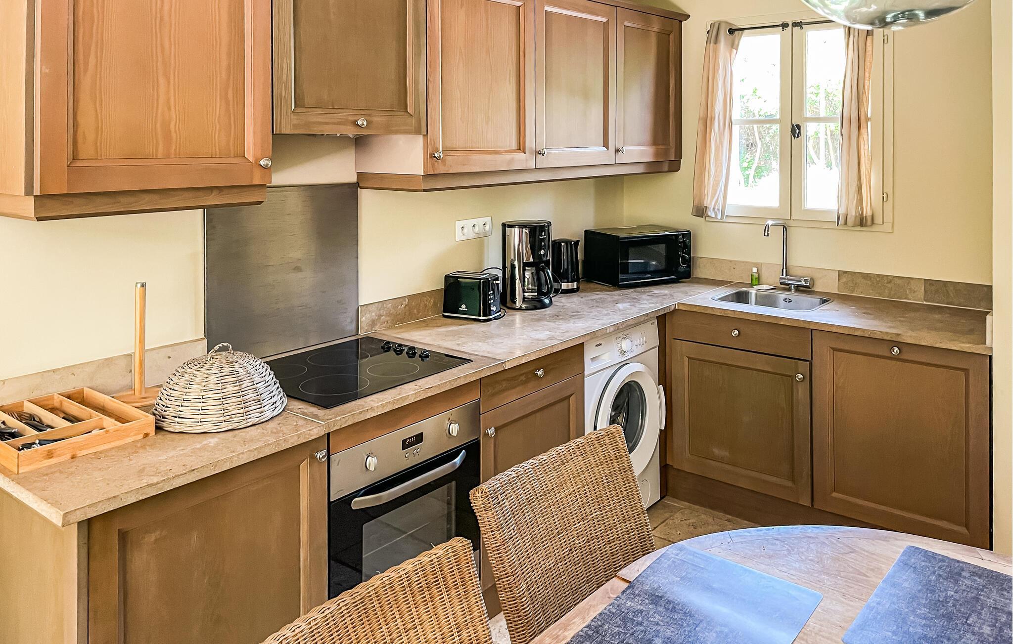Freuen Sie sich auf einen erholsamen Urlaub in diesem schön gestalteten Ferienhaus, das Sie im Erdgeschoss mit einem offenen und komfortablen Wohnraum empfängt und durch die verbundenen Bereiche der Küche, des Esstisches und des Wohnzimmers zu gemeinsamen Aktivitäten auffordert. Erkunden Sie auch die übrigen Zimmer des attraktiven Hauses und genießen erholsame Nächte in den gemütlichen Schlafzimmern und genießen nach dem Aufstehen ein leckeres Frühstück auf der Terrasse, das Sie von dem Wohnraum erreichen. Genießen Sie den Schatten der Büsche oder nehmen ein Sonnenbad und schmieden Ihre nächsten Ausflüge und Aktivitäten.