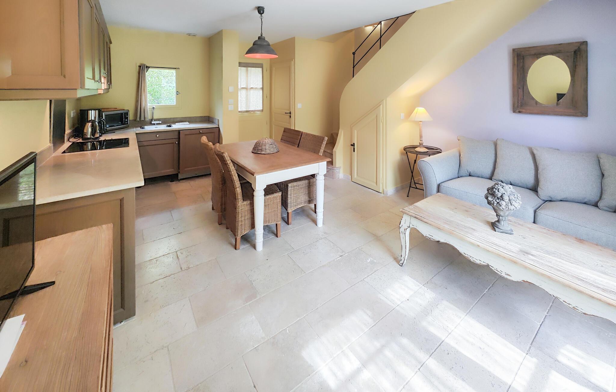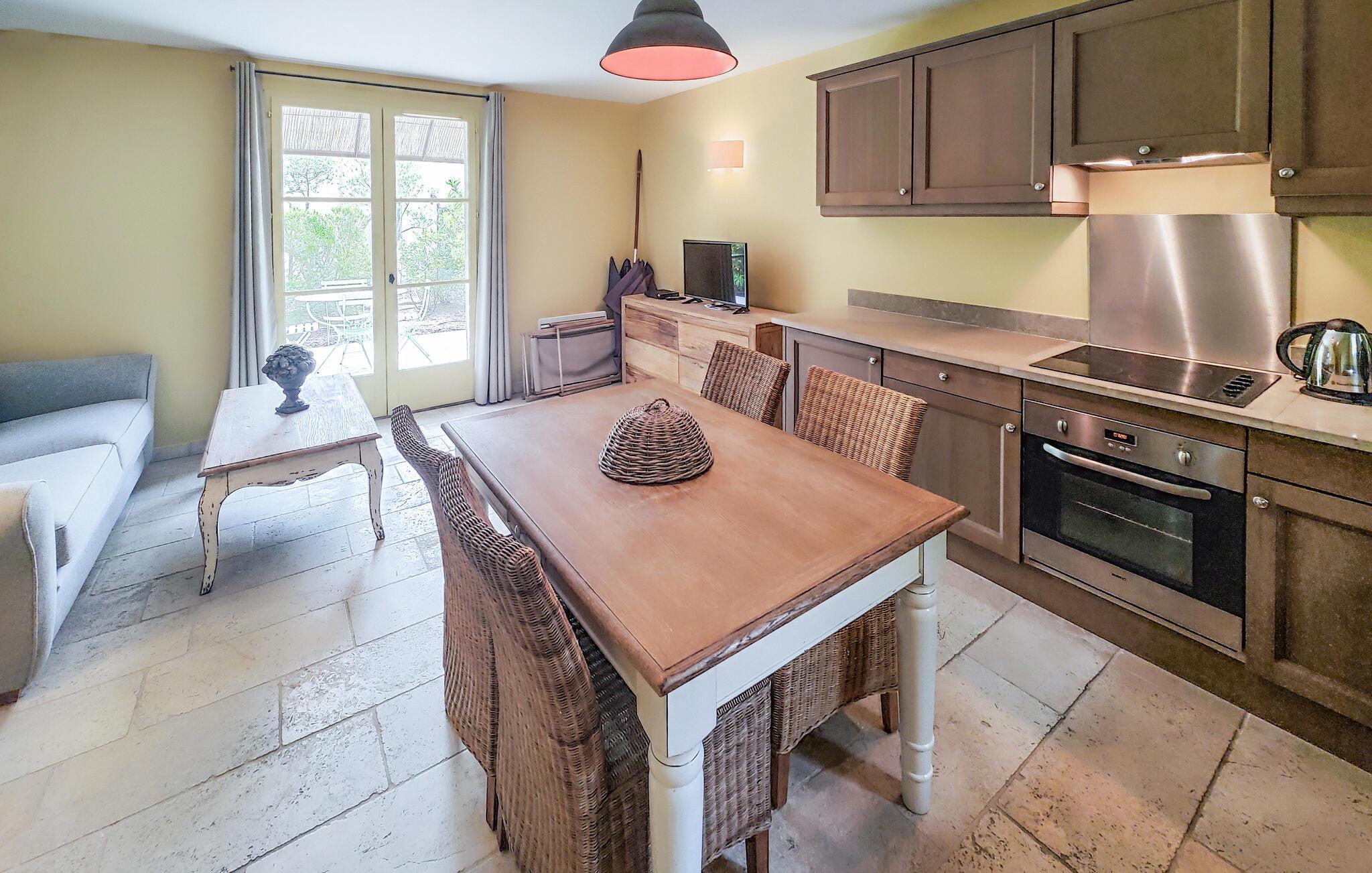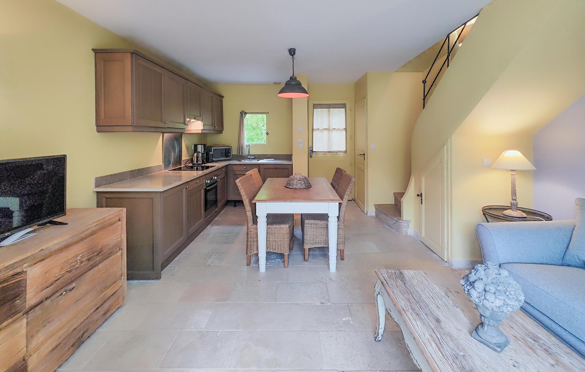 Freuen Sie sich auf einen erholsamen Urlaub in diesem schön gestalteten Ferienhaus, das Sie im Erdgeschoss mit einem offenen und komfortablen Wohnraum empfängt und durch die verbundenen Bereiche der Küche, des Esstisches und des Wohnzimmers zu gemeinsamen Aktivitäten auffordert. Erkunden Sie auch die übrigen Zimmer des attraktiven Hauses und genießen erholsame Nächte in den gemütlichen Schlafzimmern und genießen nach dem Aufstehen ein leckeres Frühstück auf der Terrasse, das Sie von dem Wohnraum erreichen. Genießen Sie den Schatten der Büsche oder nehmen ein Sonnenbad und schmieden Ihre nächsten Ausflüge und Aktivitäten.