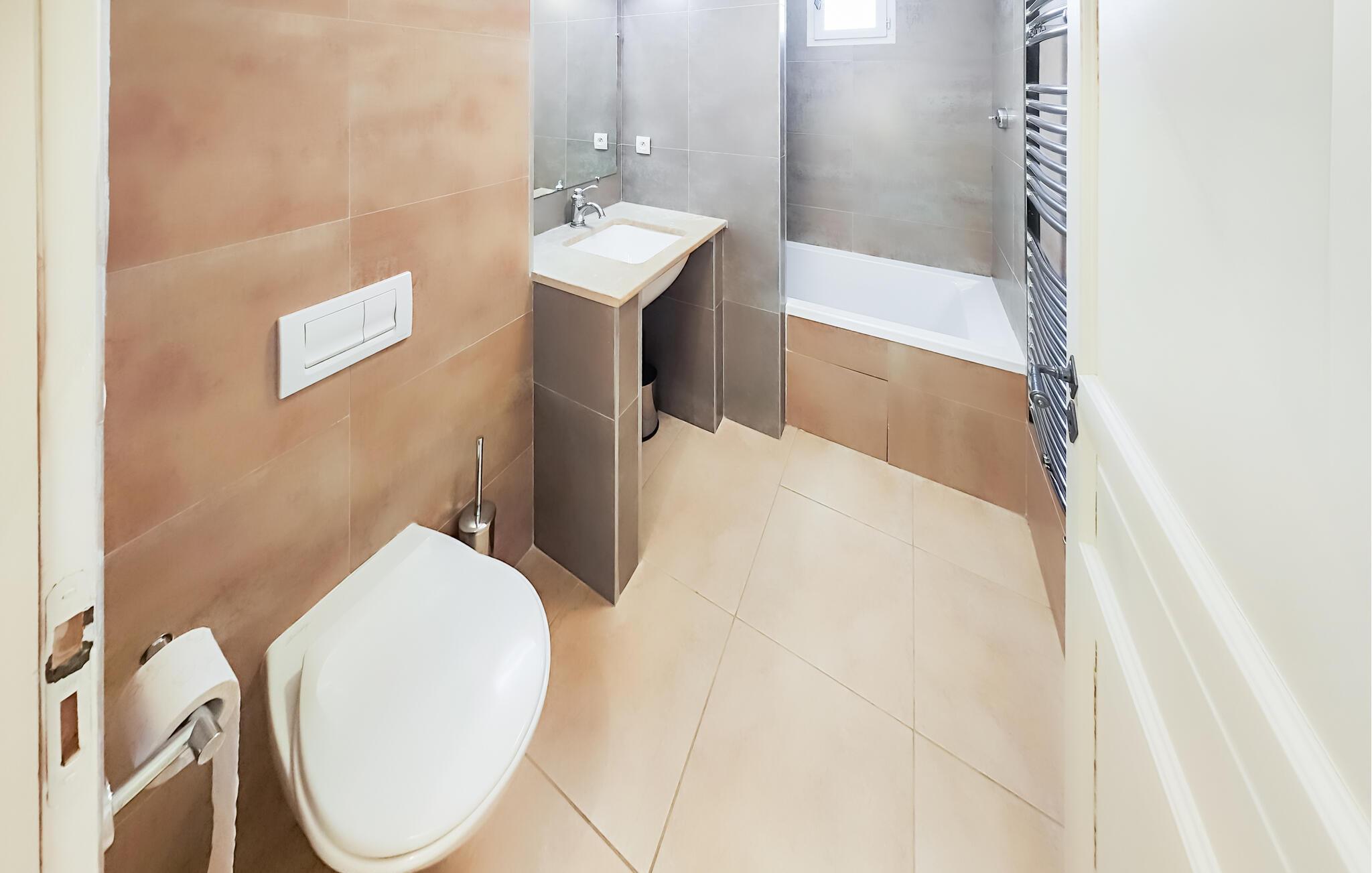 Badezimmer 4m2 (nr. 1) - WC. Warmes und kaltes Wasser. Badewanne