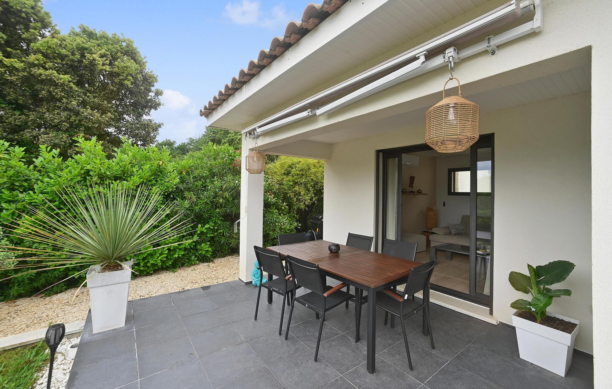 Schon bei Ihrer Ankunft werden Sie von dem großen, grünen und ruhigen Garten begeistert sein. Das Interieur setzt sich aus einem großen Wohnzimmer und einer voll ausgestatteten Küche zusammen, die Ihnen direkten Zugang zum Außenbereich bietet. Mit seinen großen Fenstern, die auf den Garten hinausgehen, werden Sie ein direktes Gefühl von Wohlbefinden verspüren. Dieses Haus besteht aus drei Schlafzimmern, eines davon mit angrenzendem Badezimmer und Zugang von außen, und wird Sie beruhigen! Gasgrill und Klimmzugstange runden das Erlebnis für jegliche Art von Urlauber ab.