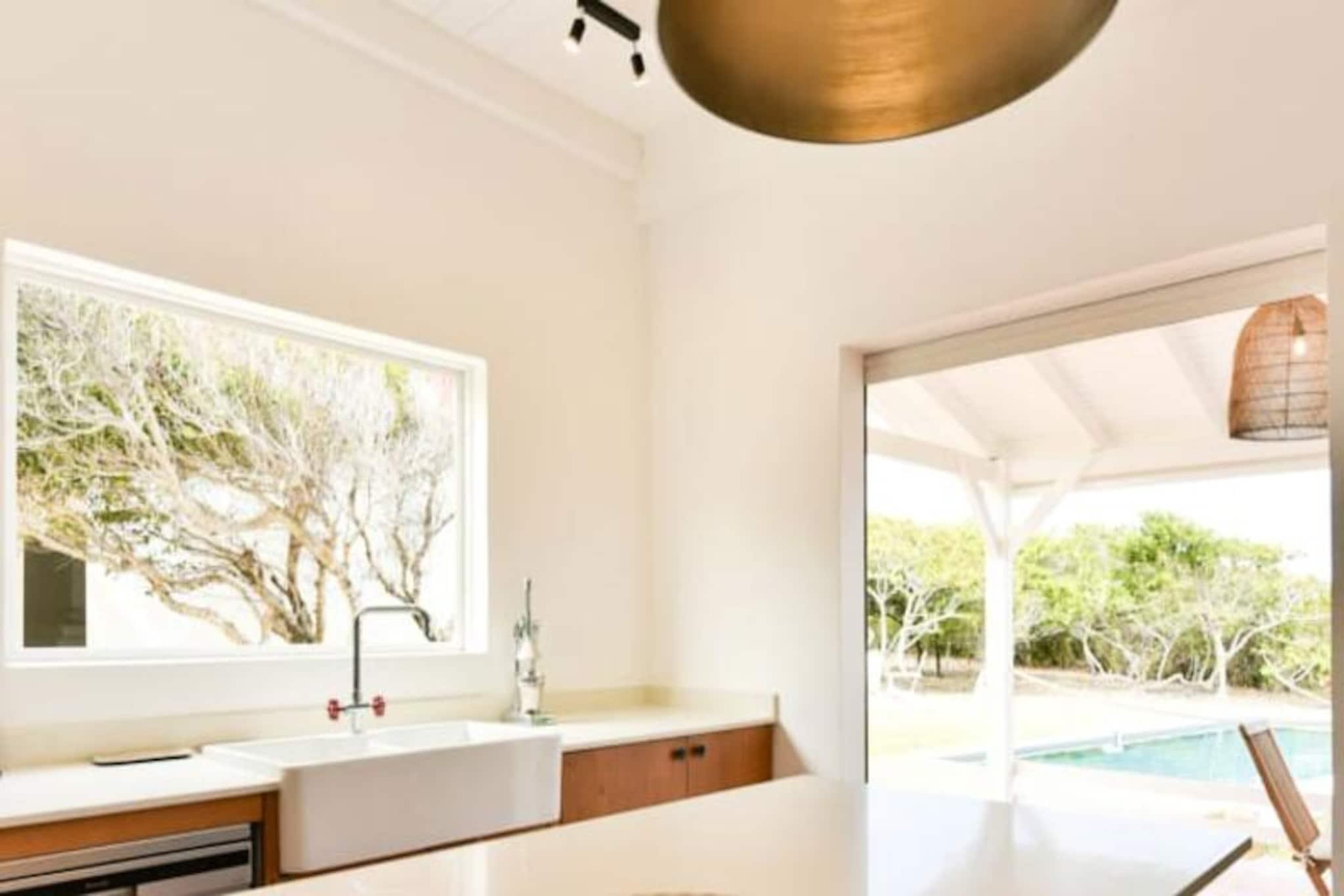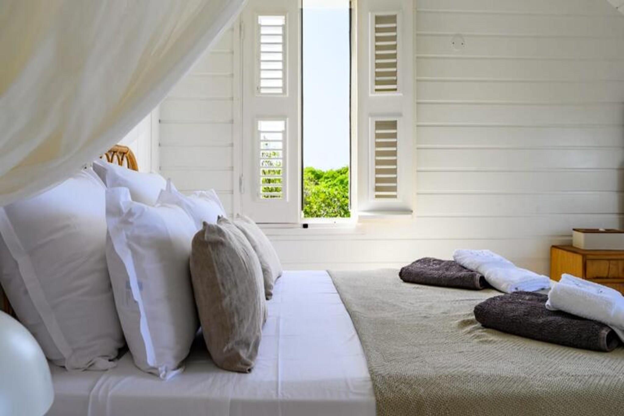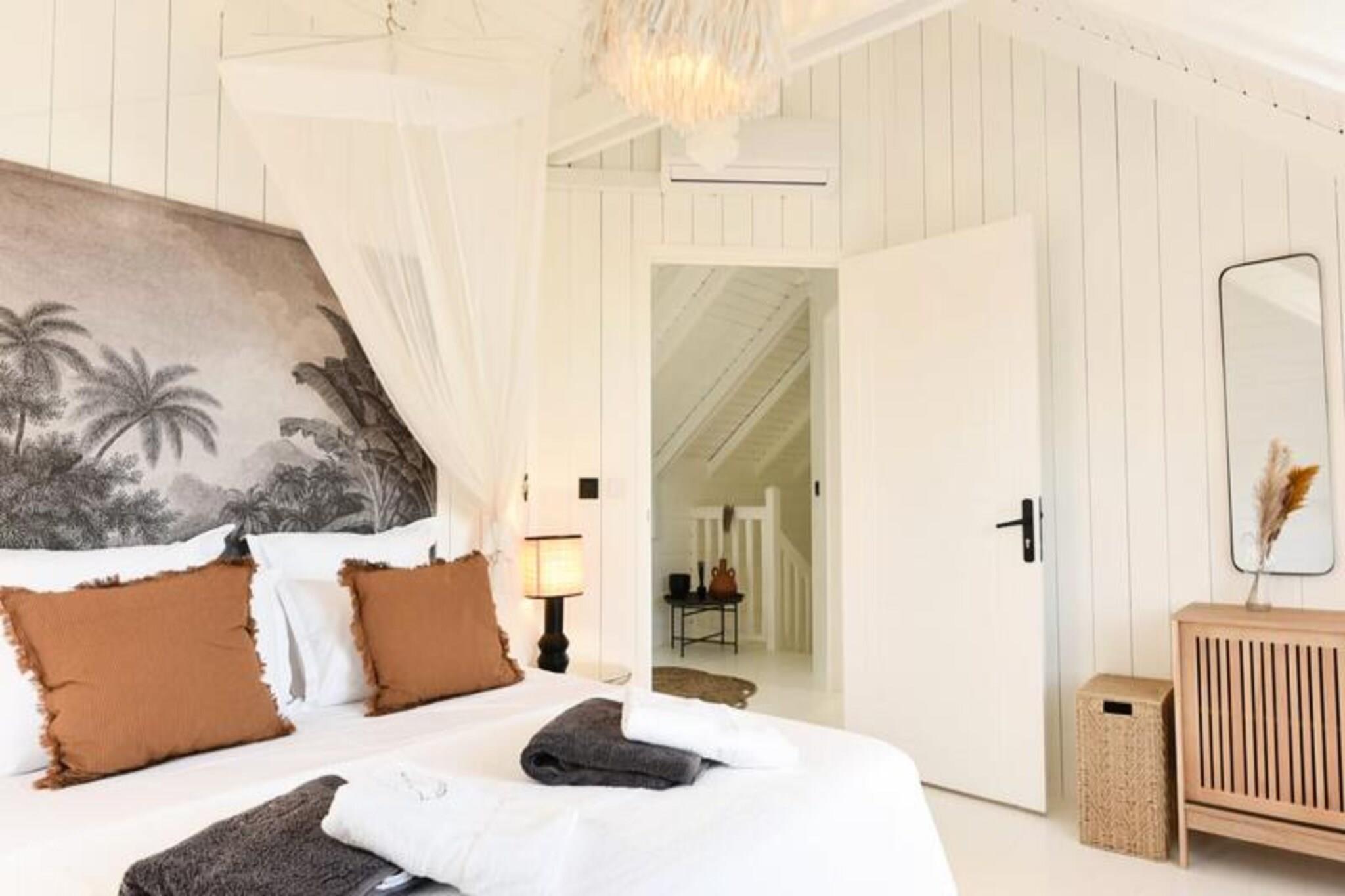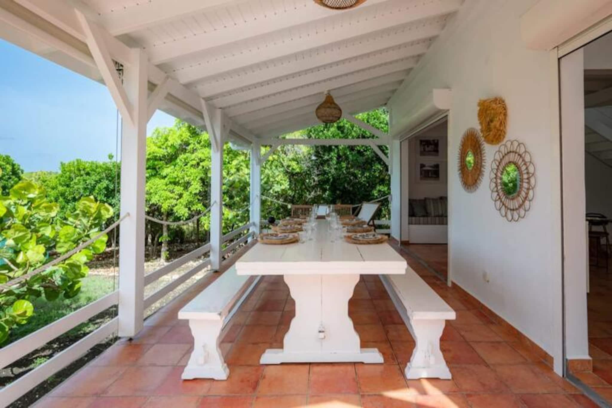 Hoch oben auf einer imposanten Klippe gelegen, bietet diese atemberaubende Villa auf der Insel Marie-Galante einen ruhigen Rückzugsort mit spektakulärem Blick auf das türkisfarbene Meer. Umgeben von üppigen Weinbergen am Meer, ist dieses Refugium eine Oase der Ruhe und Authentizität – perfekt für alle, die eine friedliche Auszeit unter der karibischen Sonne suchen. Vom Sonnenaufgang an werden Sie von den Panoramablicken der Villa verzaubert sein und eine magische Kulisse für Ihren Aufenthalt schaffen. Die Villa bietet Platz für bis zu acht Gäste und verfügt über vier klimatisierte Schlafzimmer, die alle liebevoll eingerichtet sind und erholsame Nächte garantieren. Die Architektur im kreolischen Stil vereint Charme und modernen Komfort. Die voll ausgestattete Küche öffnet sich zu einer geräumigen Terrasse, ideal für gemeinsame Mahlzeiten und gesellige Runden. Draußen lädt der private Pool zum Entspannen mit freiem Meerblick ein, und der Bouleplatz sorgt für Unterhaltung mit Familie und Freunden. Von den Poolhandtüchern bis zum Highspeed-Glasfaserinternet wurde an jedes Detail gedacht, um einen reibungslosen und luxuriösen Aufenthalt zu gewährleisten. Die Lage der Villa ist ebenso bezaubernd. Nur eine kurze Autofahrt entfernt liegen die idyllischen Strände von Saint-Louis und Anse de Mays, ideal zum Schwimmen und Schnorcheln. Entdecken Sie das reiche Erbe der Insel mit Besuchen der historischen Windmühlen und der renommierten Bielle-Destillerie oder unternehmen Sie malerische Wanderungen, um die Gueule Grand-Gouffre zu bestaunen. Ob Sie spektakuläre Sonnenuntergänge genießen, Wassersport betreiben oder einfach die friedliche Atmosphäre auf sich wirken lassen möchten – diese Villa bietet die perfekte Balance zwischen Entspannung und Entdeckungen. Mit exklusiven Concierge-Services, inklusive Ausflügen, Mietwagen und Empfehlungen für lokale Veranstaltungen, wird Ihr Aufenthalt unvergesslich. Lassen Sie die Schönheit von Marie-Galante und den Komfort dieser Villa Erinnerungen schaffen, die ein Leben lang halten.