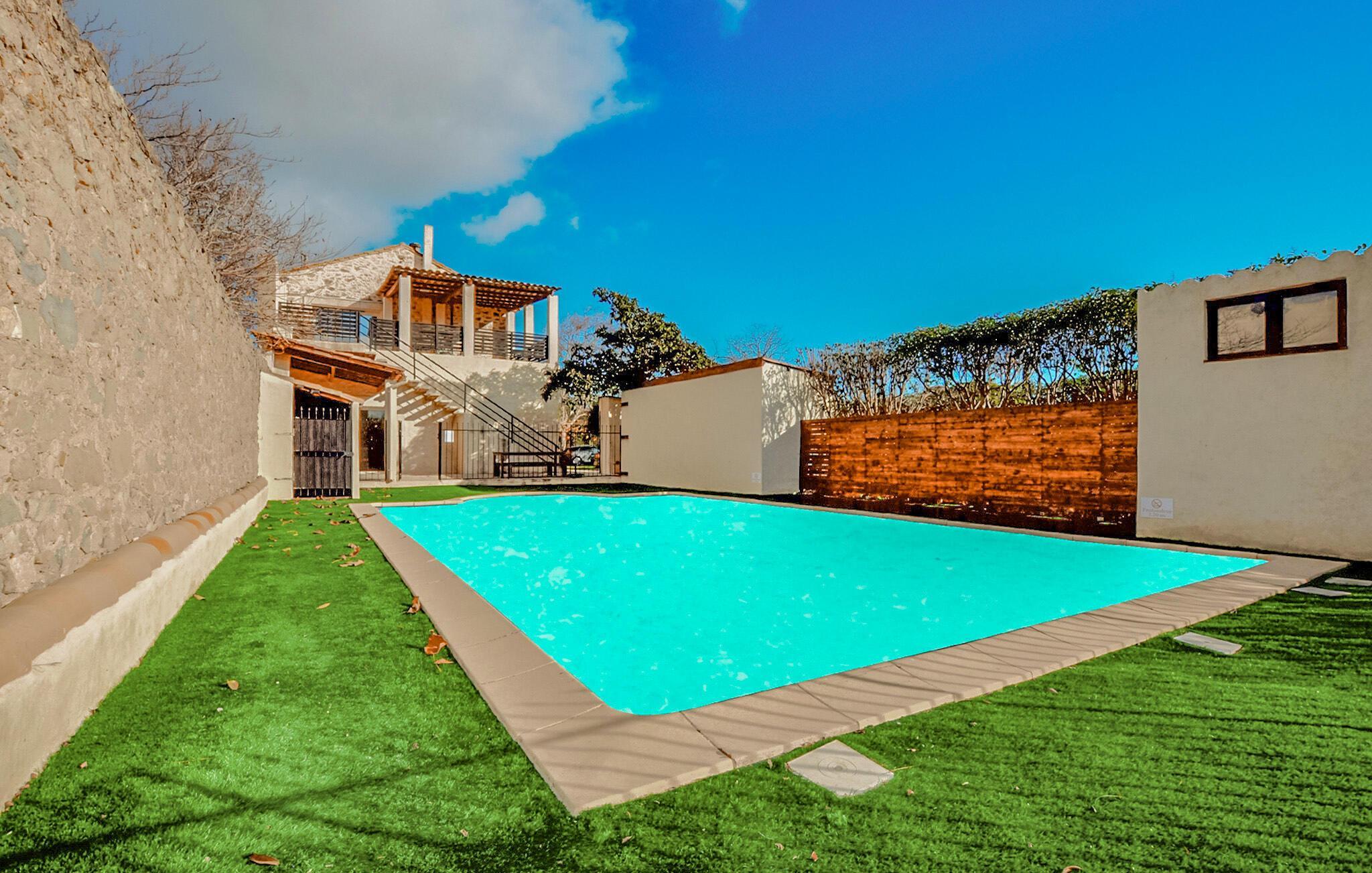 Genießen Sie eine romantische Auszeit zu zweit in diesem stilvollen Ferienhaus mit Pool.