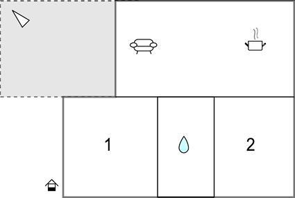 Badezimmer 6m2 (nr. 1) - WC. Warmes und kaltes Wasser. Dusche