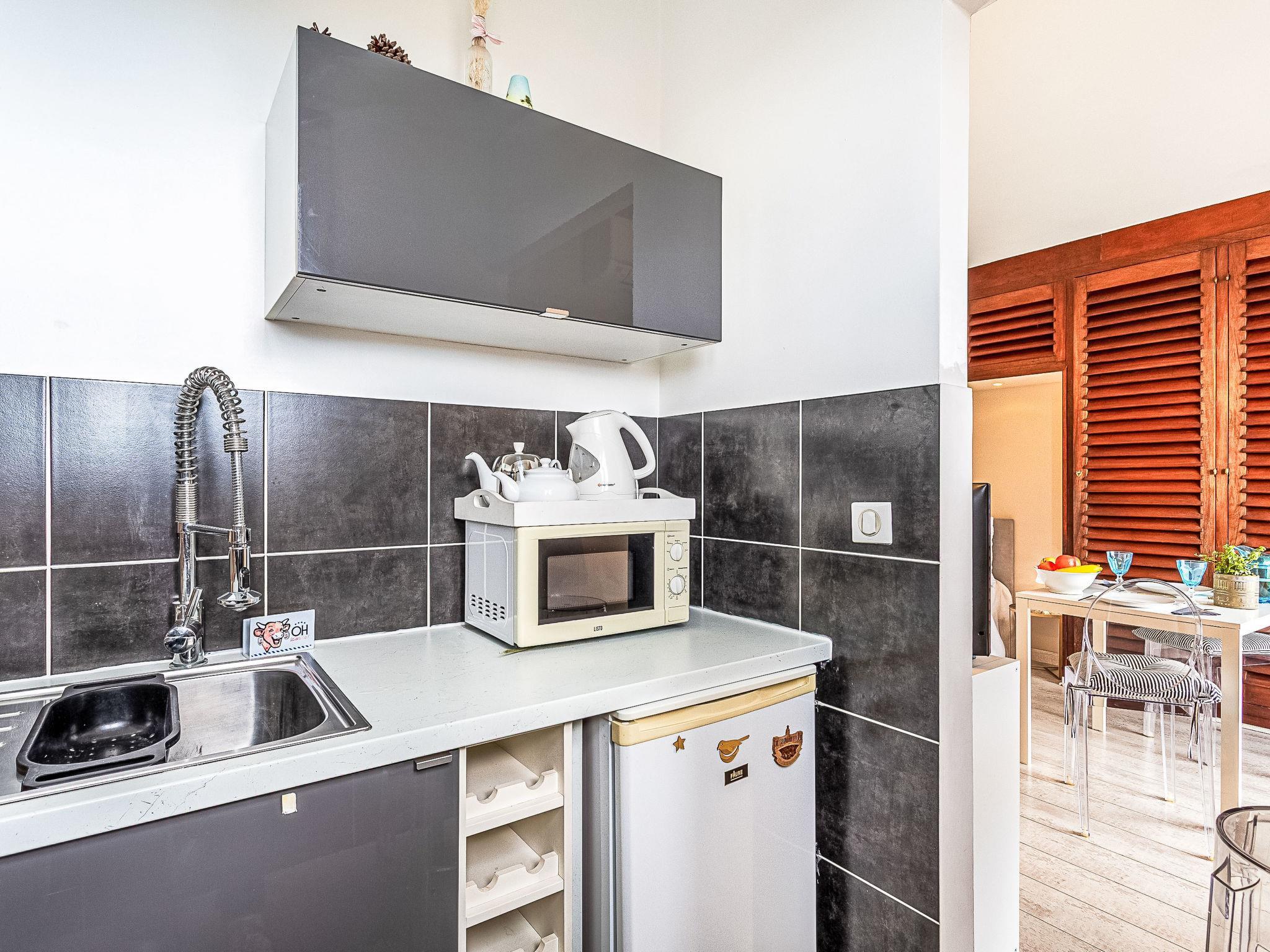 1-Zimmer-Studio 30 m2 im 1. Stock. Gemütlich eingerichtet: Wohn-/Schlafzimmer mit 1 franz. Bett (140 cm, Länge 190 cm), TV. Offene Küche (Backofen, 4 Glaskeramikplatten, Toaster, Wasserkocher, Mikrowelle, elektrische Kaffeemaschine, Kapseln für die Kaffeemaschine (Nespresso) extra). Dusche/WC. Klimaanlage, Warmluftheizung. Zur Verfügung: Waschmaschine. Internet (WLAN, gratis). Bitte beachten: Nichtraucher-Unterkunft, kein Parkplatz. Maximal 1 kleines Haustier/Hund erlaubt. Rauchmelder. Inserat einer Privatperson nach Artikel 155, IV, CGI. 83119005703DP