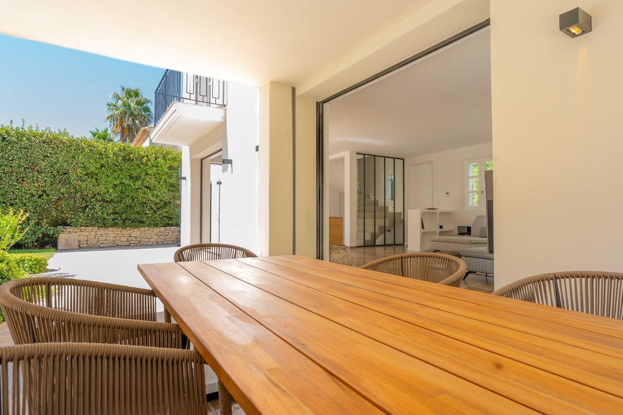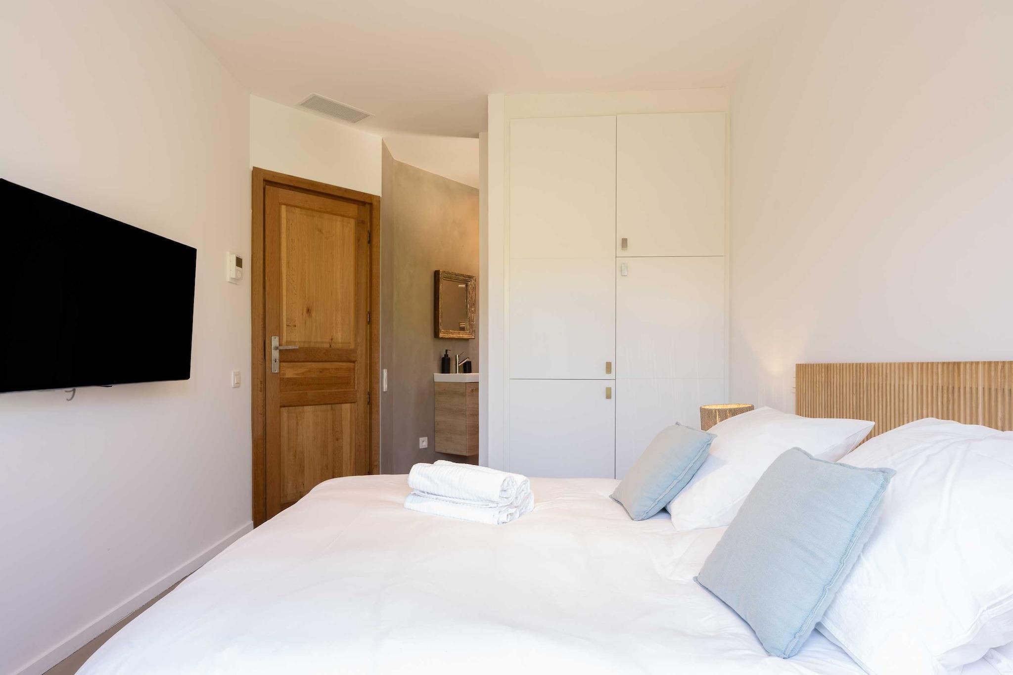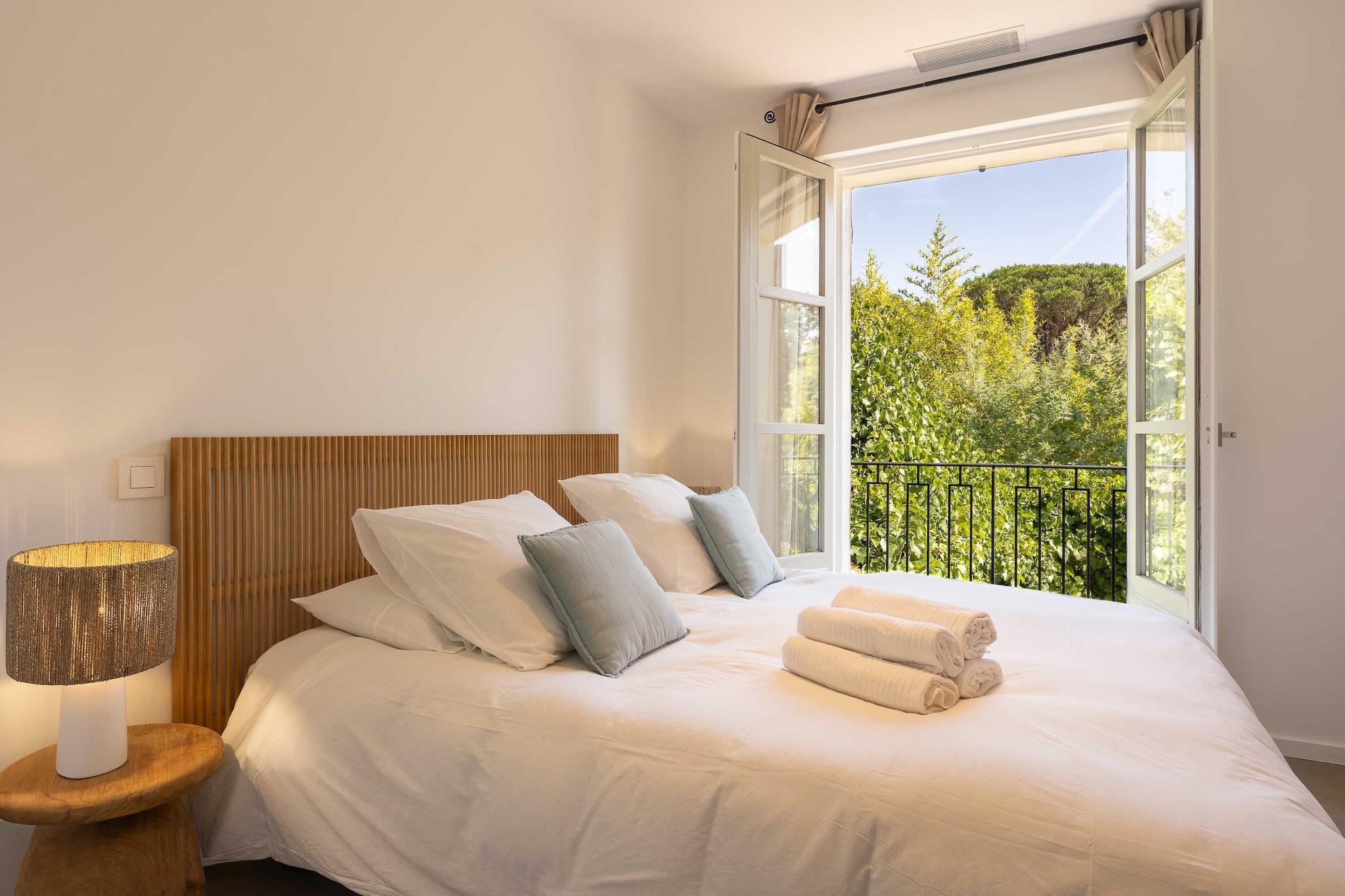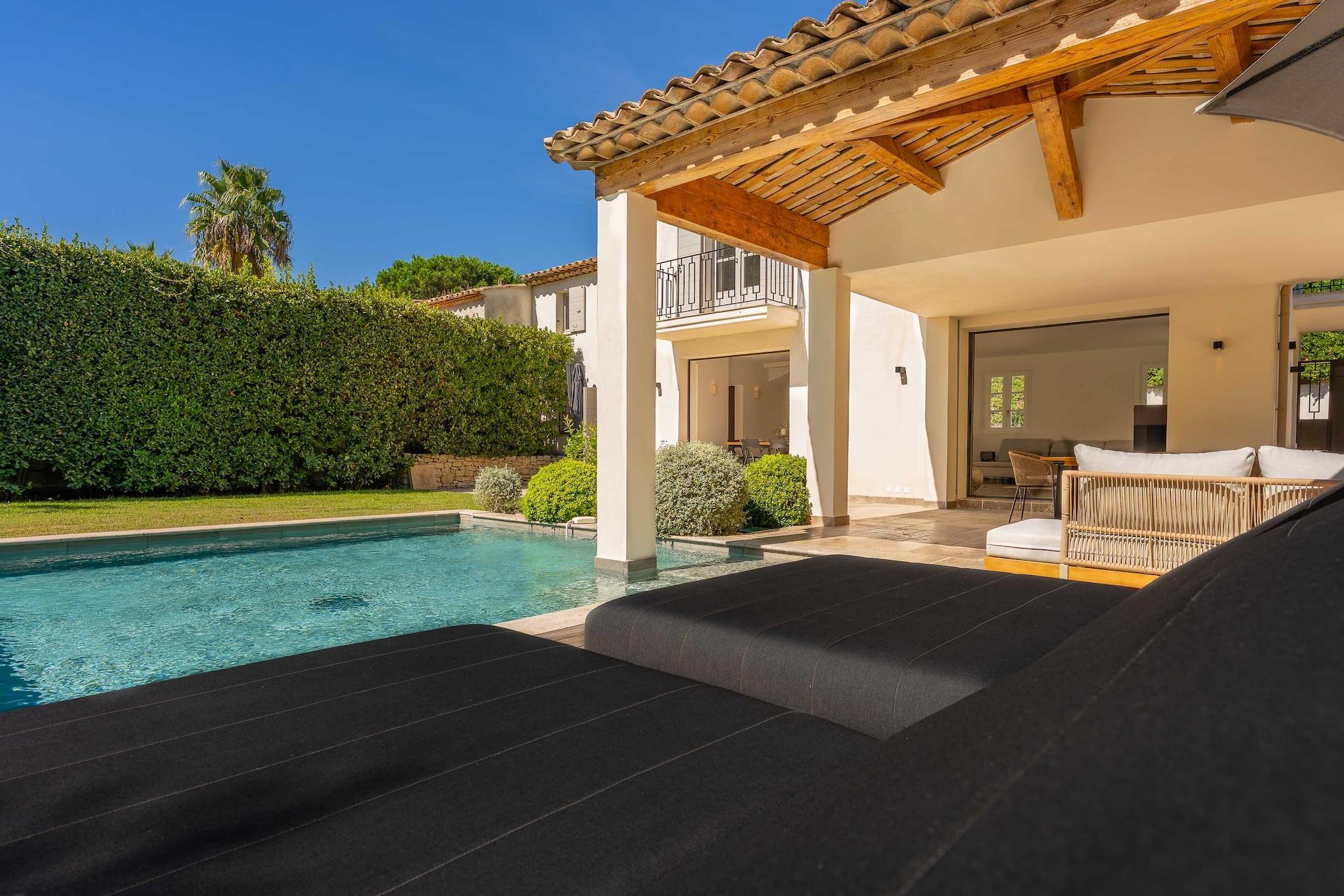 ??Checkmyguest bietet ein elegantes, 150 m² großes Haus mit privatem Pool in Saint-Tropez für bis zu 8 Personen. Genießen Sie modernes Ambiente, komfortable Zimmer und eine ideale Lage in der Nähe der Strände und des lebhaften Zentrums. ? Mitten im Herzen von Saint-Tropez bietet dieses elegante, einstöckige Haus mit 150 m² Wohnfläche ein einzigartiges Wohnumfeld, das Komfort, Modernität und den authentischen Charme von Saint-Tropez vereint. Ideal für bis zu 8 Personen, wird es Familien und Freundesgruppen begeistern, die einen exklusiven Aufenthalt unter der mediterranen Sonne suchen. ?? An der Route des Carles, einer der begehrtesten Adressen von Saint-Tropez, gelegen, sind Sie nur wenige Minuten vom lebhaften Zentrum mit seinen Luxusboutiquen, renommierten Restaurants und legendären Stränden entfernt. Genießen Sie eine ruhige Wohnumgebung und bleiben Sie gleichzeitig mitten im aufregenden Saint-Tropez. ? Ein Raum für Ihren Komfort: ?? Ein geräumiges, gemütliches Wohnzimmer mit einem großen Sofa, einem Fernseher, einem Esstisch und einem Beistelltisch. ?? Eine moderne, geschlossene Küche mit Kochinsel und allen notwendigen Geräten: Kühlschrank, Mikrowelle, Geschirrspüler, Kaffeemaschine, Wasserkocher, Toaster … ?? Vier komfortable Schlafzimmer: – Eine Suite im Obergeschoss mit einem Queensize-Bett und eigenem Bad (Badewanne + WC). – Ein Schlafzimmer mit einem Queensize-Bett, Fernseher, Kleiderschrank und Zugang zum Balkon. – Ein Schlafzimmer mit einem Doppelbett, Kleiderschrank, Fernseher, Balkon und eigenem Bad (Dusche + WC). – Ein Schlafzimmer mit einem Doppelbett, Fernseher und Balkon. ?? Ein modernes Badezimmer mit Dusche und Waschbecken. ?? Ein separates WC. ?? Ein zusätzliches Schlafzimmer im Untergeschoss mit eigenem Bad, ideal für Personal oder Gäste. ?? Waschküche mit Waschmaschine und Trockner. ?? Klimaanlage im gesamten Haus. ?? Die Vorteile dieses Hauses: ?? Privater Pool für unvergessliche Momente der Entspannung. ?? Möblierte Terrasse mit Gartenmöbeln. ?? Zugang zu einer privaten Garage. ?? WLAN. ?? Hochwertige Bettwäsche und Handtücher für einen unbeschwerten Aufenthalt.