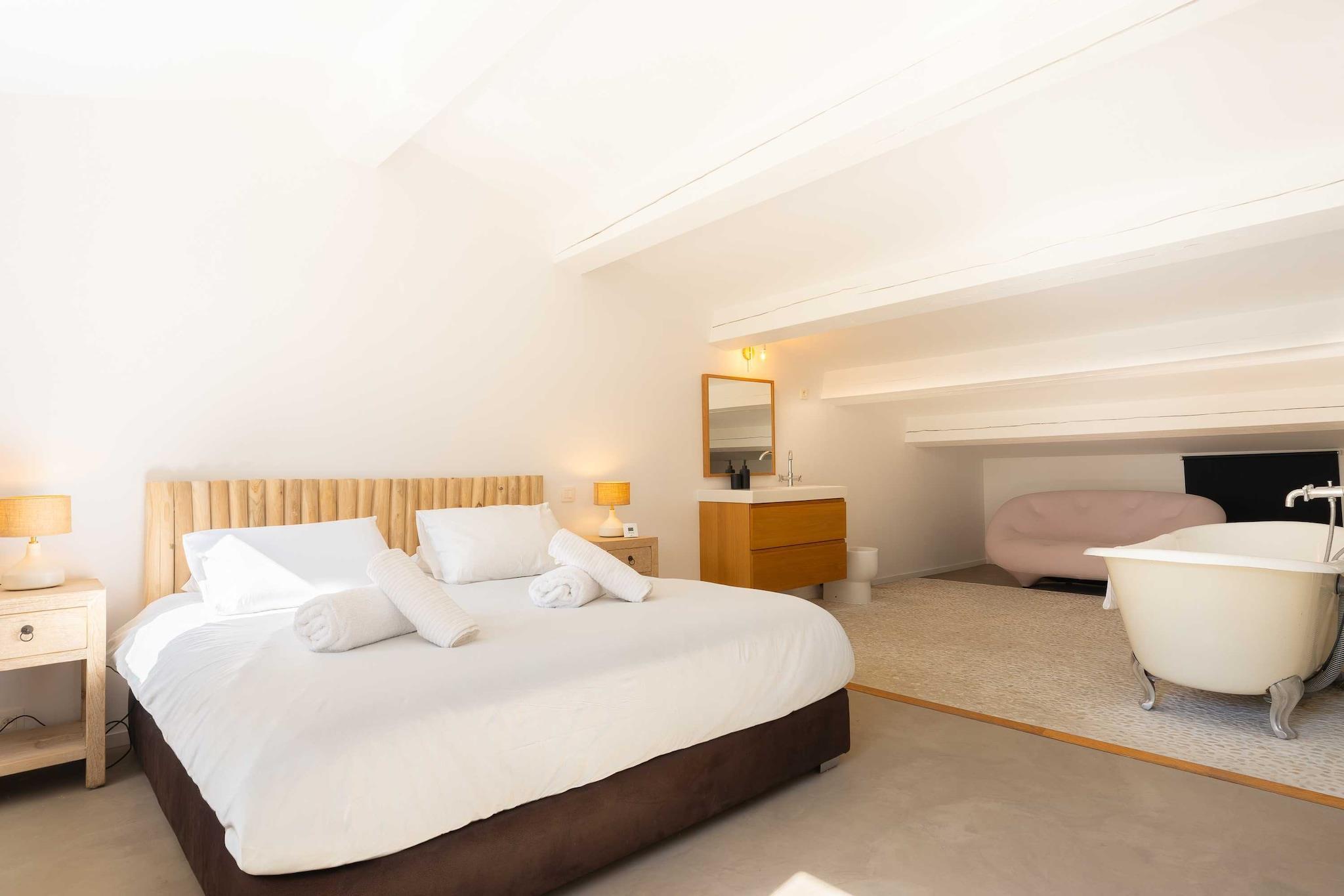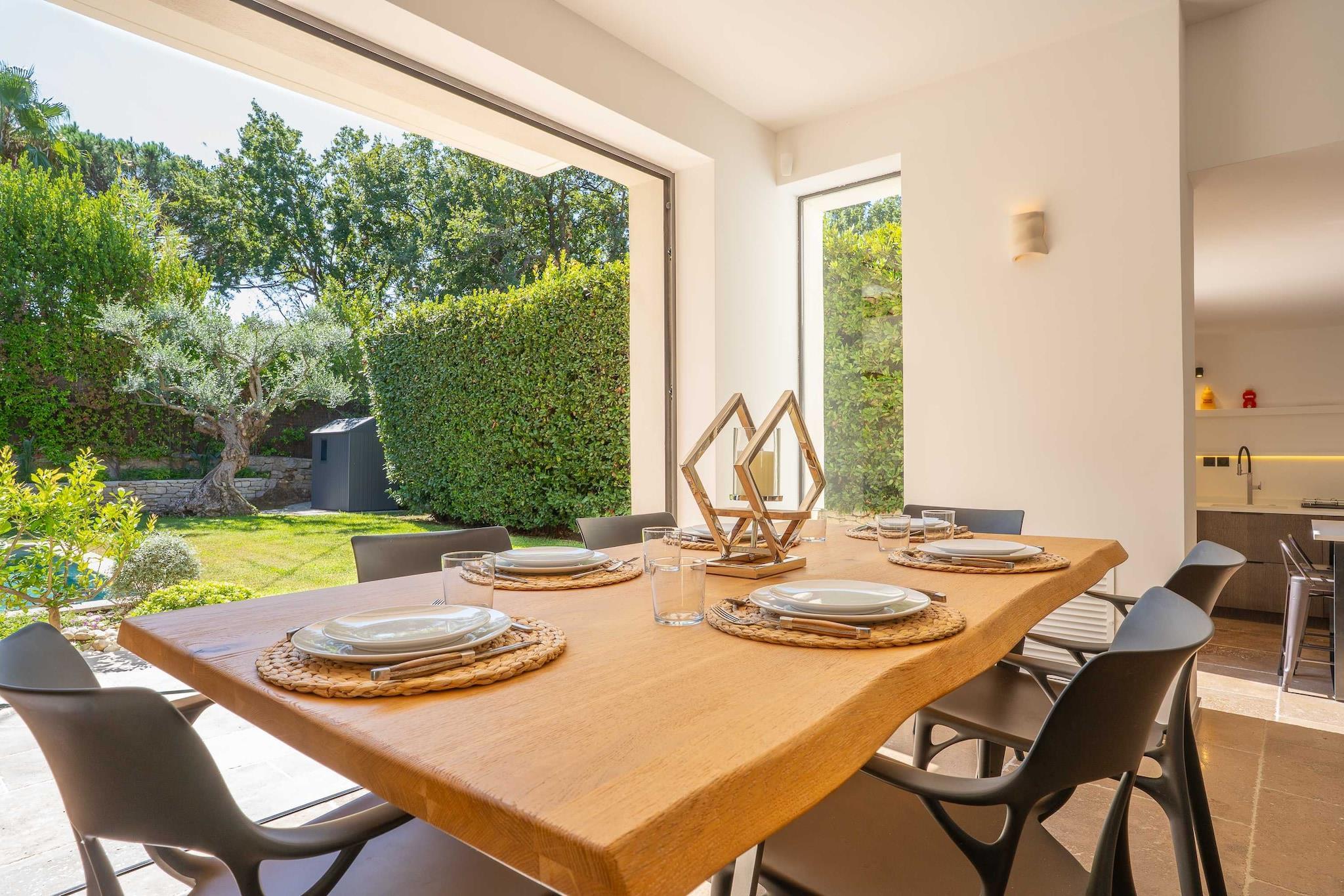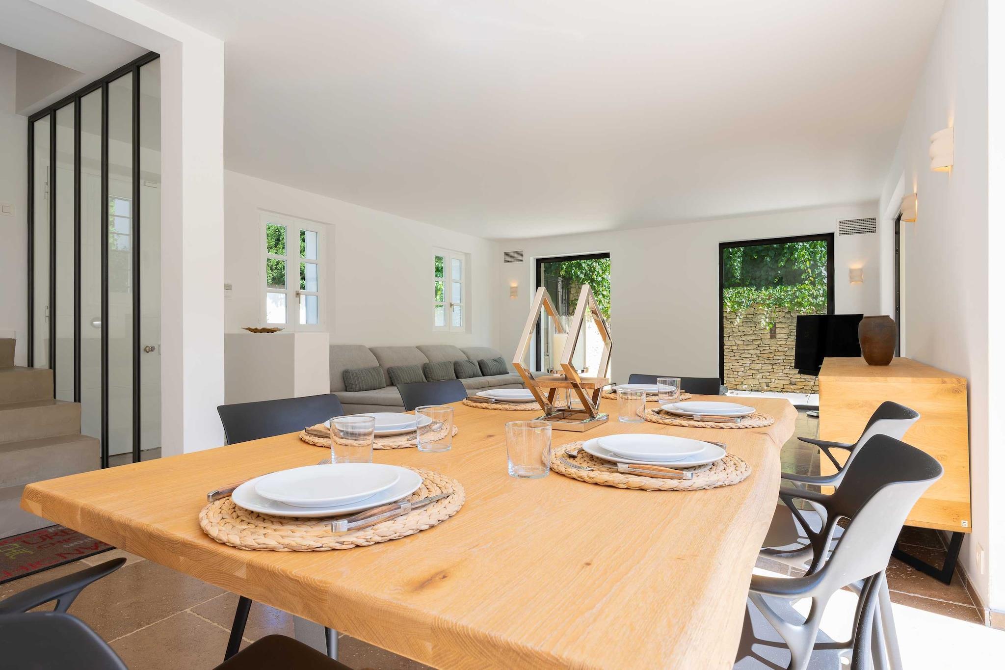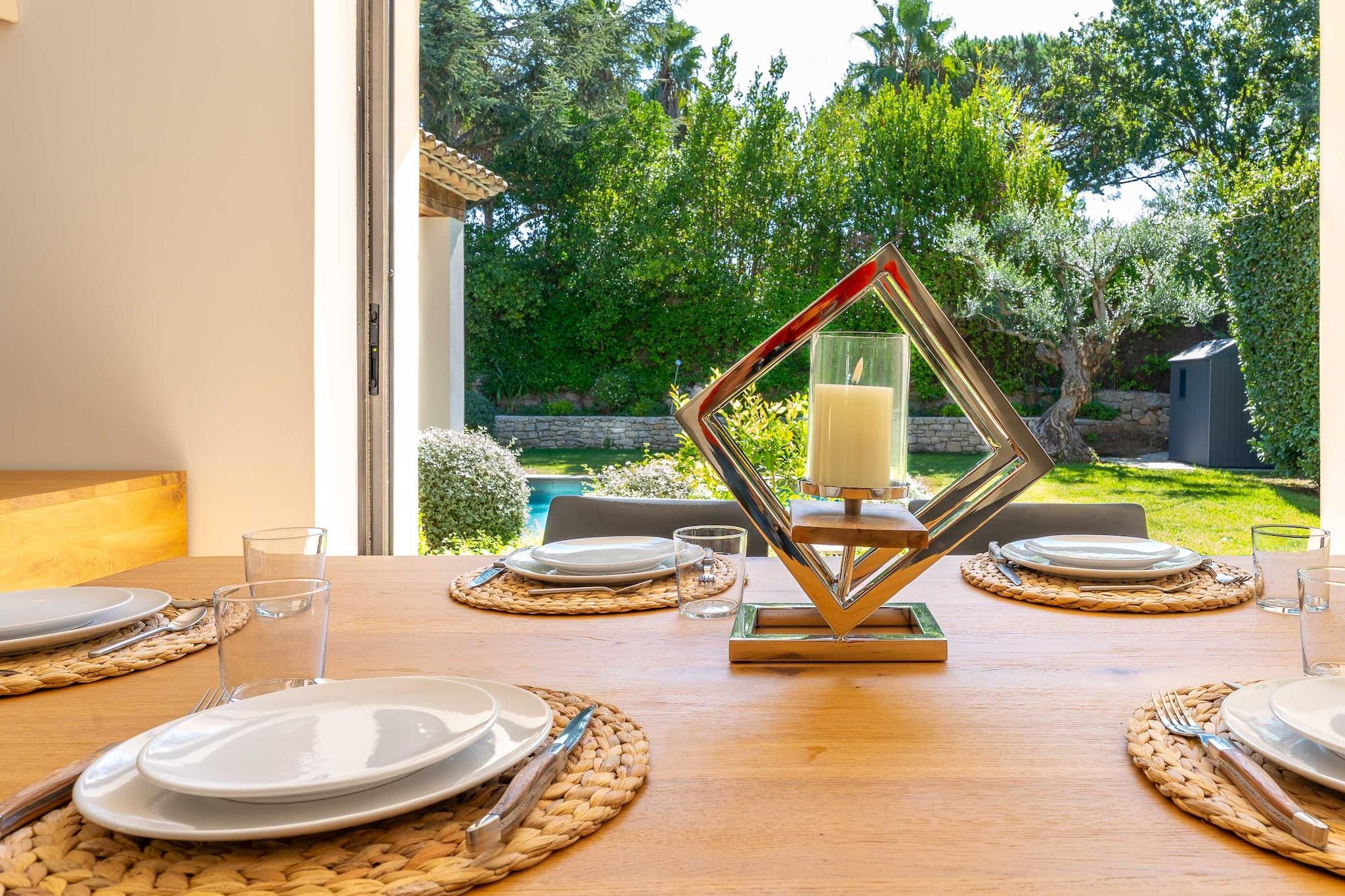 ??Checkmyguest bietet ein elegantes, 150 m² großes Haus mit privatem Pool in Saint-Tropez für bis zu 8 Personen. Genießen Sie modernes Ambiente, komfortable Zimmer und eine ideale Lage in der Nähe der Strände und des lebhaften Zentrums. ? Mitten im Herzen von Saint-Tropez bietet dieses elegante, einstöckige Haus mit 150 m² Wohnfläche ein einzigartiges Wohnumfeld, das Komfort, Modernität und den authentischen Charme von Saint-Tropez vereint. Ideal für bis zu 8 Personen, wird es Familien und Freundesgruppen begeistern, die einen exklusiven Aufenthalt unter der mediterranen Sonne suchen. ?? An der Route des Carles, einer der begehrtesten Adressen von Saint-Tropez, gelegen, sind Sie nur wenige Minuten vom lebhaften Zentrum mit seinen Luxusboutiquen, renommierten Restaurants und legendären Stränden entfernt. Genießen Sie eine ruhige Wohnumgebung und bleiben Sie gleichzeitig mitten im aufregenden Saint-Tropez. ? Ein Raum für Ihren Komfort: ?? Ein geräumiges, gemütliches Wohnzimmer mit einem großen Sofa, einem Fernseher, einem Esstisch und einem Beistelltisch. ?? Eine moderne, geschlossene Küche mit Kochinsel und allen notwendigen Geräten: Kühlschrank, Mikrowelle, Geschirrspüler, Kaffeemaschine, Wasserkocher, Toaster … ?? Vier komfortable Schlafzimmer: – Eine Suite im Obergeschoss mit einem Queensize-Bett und eigenem Bad (Badewanne + WC). – Ein Schlafzimmer mit einem Queensize-Bett, Fernseher, Kleiderschrank und Zugang zum Balkon. – Ein Schlafzimmer mit einem Doppelbett, Kleiderschrank, Fernseher, Balkon und eigenem Bad (Dusche + WC). – Ein Schlafzimmer mit einem Doppelbett, Fernseher und Balkon. ?? Ein modernes Badezimmer mit Dusche und Waschbecken. ?? Ein separates WC. ?? Ein zusätzliches Schlafzimmer im Untergeschoss mit eigenem Bad, ideal für Personal oder Gäste. ?? Waschküche mit Waschmaschine und Trockner. ?? Klimaanlage im gesamten Haus. ?? Die Vorteile dieses Hauses: ?? Privater Pool für unvergessliche Momente der Entspannung. ?? Möblierte Terrasse mit Gartenmöbeln. ?? Zugang zu einer privaten Garage. ?? WLAN. ?? Hochwertige Bettwäsche und Handtücher für einen unbeschwerten Aufenthalt.