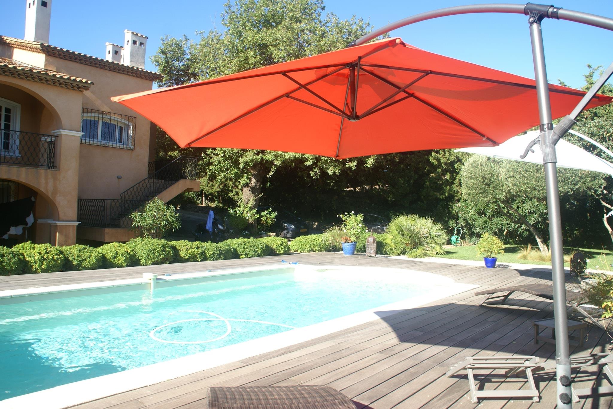 Diese charmante Villa mit 3 Schlafzimmern liegt im Herzen der beliebten Region Var und bietet bequem Platz für bis zu 6 Gäste. Dieses haustierfreundliche Refugium ist ideal für zwei Familien oder eine kleine Gruppe und verfügt über einen privaten Pool und kostenfreies WLAN. Genießen Sie einen erholsamen Aufenthalt inmitten der Natur und gleichzeitig in der Nähe aller modernen Annehmlichkeiten. Nur 1 km von der Villa entfernt finden Sie das Stadtzentrum mit Geschäften, Restaurants, einem Tennisplatz und Supermärkten. Der nächste Strand ist nur 2 km entfernt und bietet Wassersportmöglichkeiten und einen atemberaubenden Blick auf die Küste. Golfliebhaber können auf dem 12 km entfernten Golfplatz Beauvallon abschlagen. Nach einem erlebnisreichen Tag können Sie ein erfrischendes Bad im privaten Pool nehmen oder bei einem Glas Wein auf der Terrasse entspannen. Die Villa verfügt außerdem über einen Garten, einen Grill, einen gemütlichen Kamin im Wohnzimmer und eine gut ausgestattete Küche. Ein Haustier ist kostenlos willkommen. Der Flughafen Hyères ist nur 53 km entfernt und ermöglicht eine bequeme Anreise. Klimaanlage ist nur in den Zimmern vorhanden, nicht im gesamten Haus.
