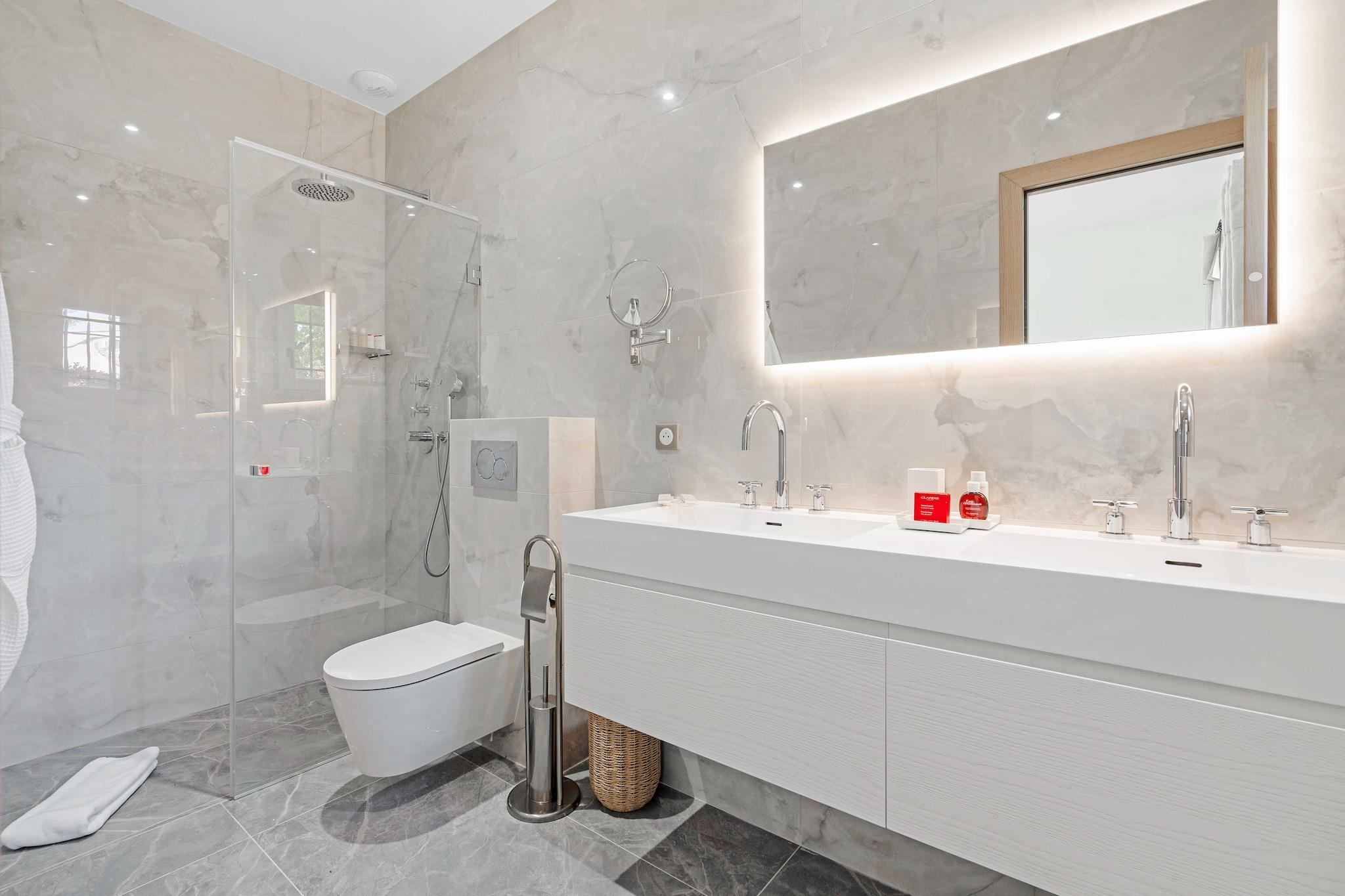 Parterre: (Wohnzimmer(TV, Esstisch), Küche(Herd, Wasserkocher, Wasserkocher, Toaster, Kaffeemaschine, Backofen, Mikrowelle, Spülmaschine, Kühlschrank, Tiefkühlschrank, , Baking sheet, Wine glasses), Schlafzimmer(Queen Bed), Schlafzimmer(Queen Bed), Badezimmer(Dusche, Toilette), Badezimmer(Dusche, Toilette)) In der 1. Etage: (Schlafzimmer(Queen Bed), Schlafzimmer(Queen Bed), Schlafzimmer(Queen Bed), Badezimmer(Dusche, Toilette), Badezimmer(Dusche, Toilette), Badezimmer(Dusche, Toilette)) , , , , , Erste-Hilfe-Station, Spielplatz, TV, Trockner, Badewanne, Babybett, Waschmaschine, Balkon oder Terrasse, Heizung, Klimaanlage, Pool, privater Außenpool, Bügeleisen, Föhn, Kinderbett (kostenlos), Handtücher/Bettwäsche (inklusive), , , , Carbon monoxide detector, Cleaning Disinfection, Cleaning before checkout, Enhanced cleaning practices, High touch surfaces disinfected, Long term stays allowed, Room-darkening shades, Village, Wide doorway