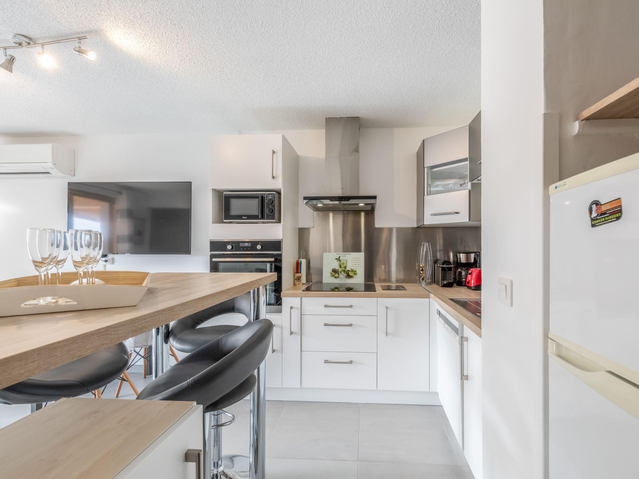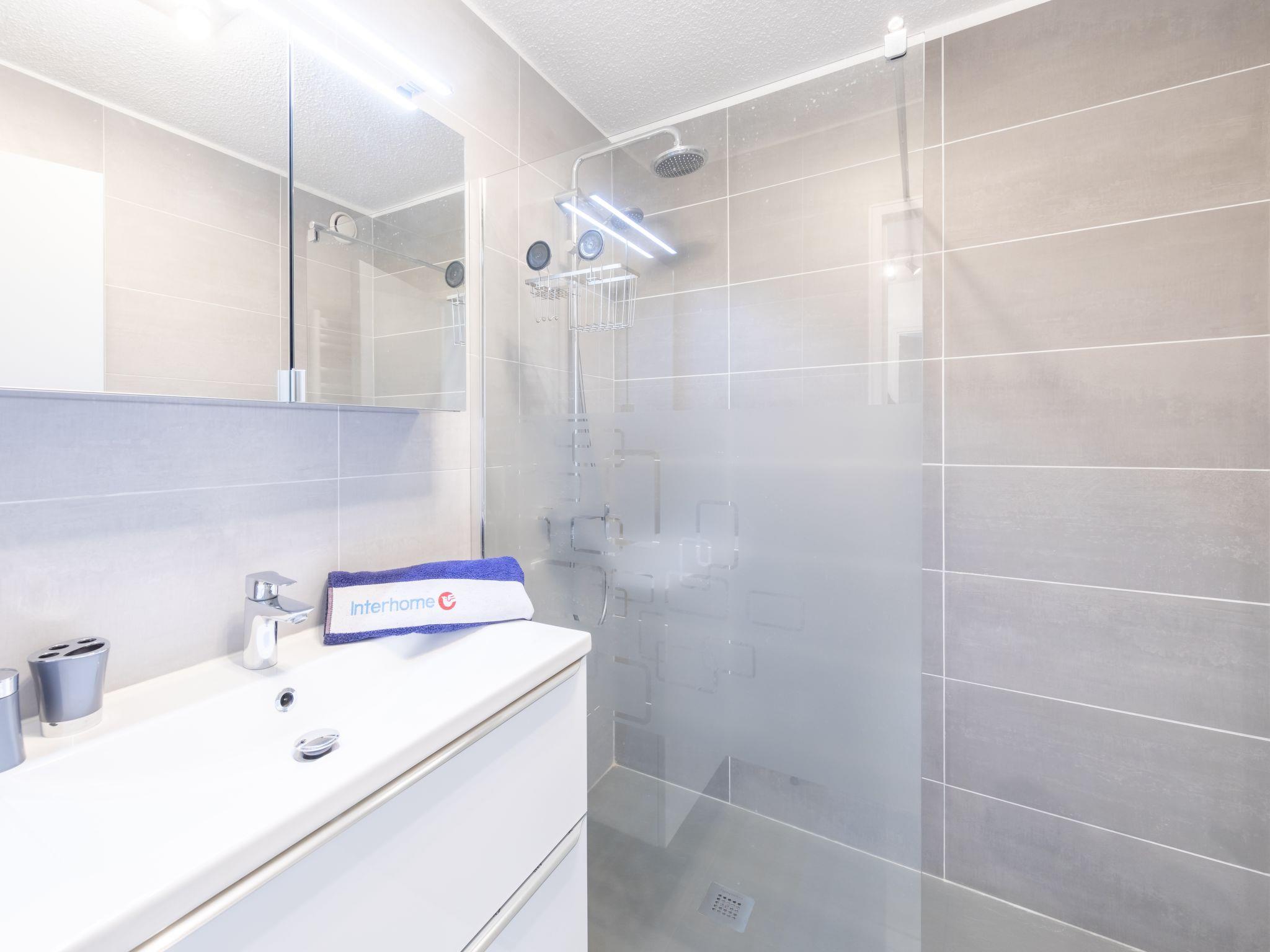 3-Zimmer-Wohnung 43 m2 im 3. Stock, Südlage. Renoviert, zweckmässig und schön eingerichtet: Wohn-/Esszimmer mit TV. Ausgang zur Terrasse. 1 Zimmer mit 1 franz. Bett (1 x 140 cm, Länge 190 cm), TV. Ausgang zur Terrasse. 1 kleines Zimmer mit 1 x 1 Etagenbetten (90 cm, Länge 190 cm), 1 franz. Bett (1 x 140 cm, Länge 190 cm). Ausgang zur Terrasse. Offene Küche (Backofen, Geschirrspüler, 4 Induktionskochplatten, Toaster, Wasserkocher, Mikrowelle, Tiefkühler, elektrische Kaffeemaschine, Kapseln für die Kaffeemaschine (Nespresso) extra). Dusche, sep. WC. Heizung, Klimaanlage. Terrasse 20 m2. Terrassenmöbel. Zur Verfügung: Waschmaschine, Bügeleisen. Internet (WLAN, gratis). Parkplatz, Garage Nr. 253, Höhe 180 cm, Breite 250 cm. Bitte beachten: Nichtraucher-Unterkunft. Maximal 1 Haustier/Hund erlaubt. Rauchmelder. 83115003032JD