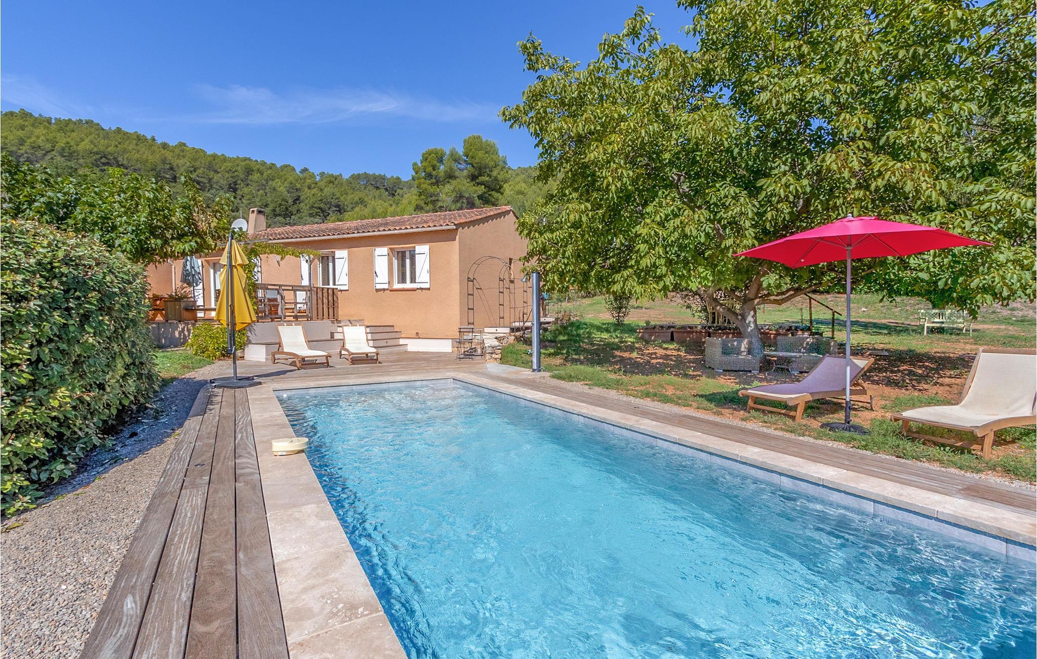 Friedlich, idyllisch, komfortabel - Diesen Eindruck bekommen Sie, wenn Sie zum ersten Mal über Ihr Grundstück und durch das herrliches Ferienhaus schreiten. Sie haben das Privileg, in einem wunderschönen, vollklimatisierten Anwesen zu wohnen, das inmitten der Natur in einer Oase der Ruhe liegt. Knapp 2 km liegen Sie von den nächsten Geschäften und dem Stadtzentrum von Salernes entfernt, in Ihrem Haus genießen Sie die ideale Lage für Naturliebhaber, mit Blick auf ein hübsches Tal und einen großen Hain mit Olivenbäumen.