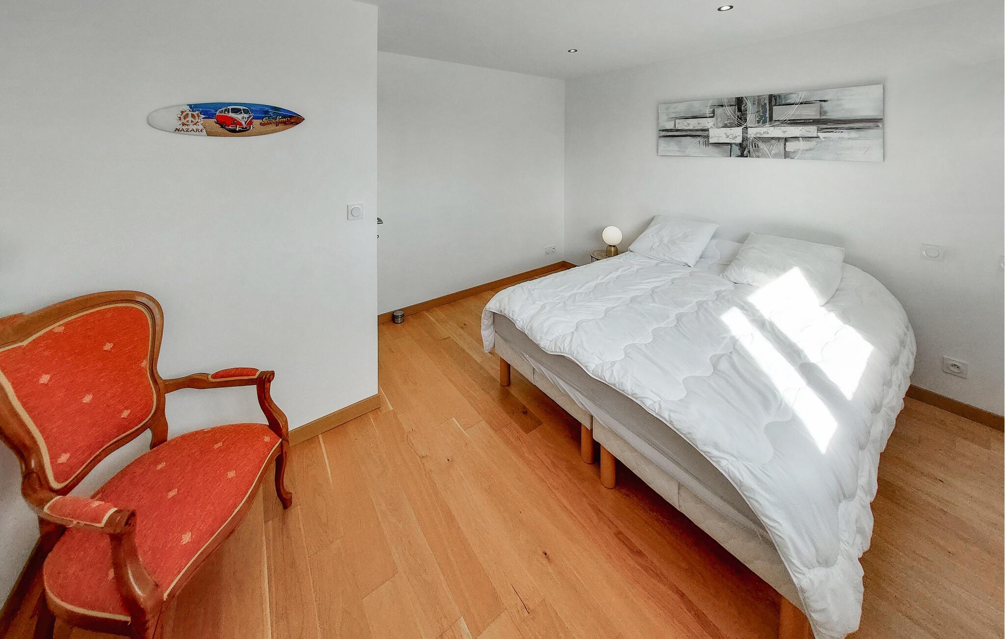 Ihr Ferienhaus in Santec ist der ideale Ort für Erholung und Entspannung. Genießen Sie Ihre freie Urlaubszeit in vollen Zügen, indem Sie es sich im stilvoll eingerichteten Wohnzimmer gemütlich machen. Das elegante Ambiente im Innenbereich schafft eine behagliche Atmosphäre, in der Sie wunderbar abschalten können. Die gut ausgestattete Küche bietet Ihnen alles, um frische, regionale Köstlichkeiten zuzubereiten, vielleicht sogar mit fangfrischem Fisch vom nächstgelegenen Markt.