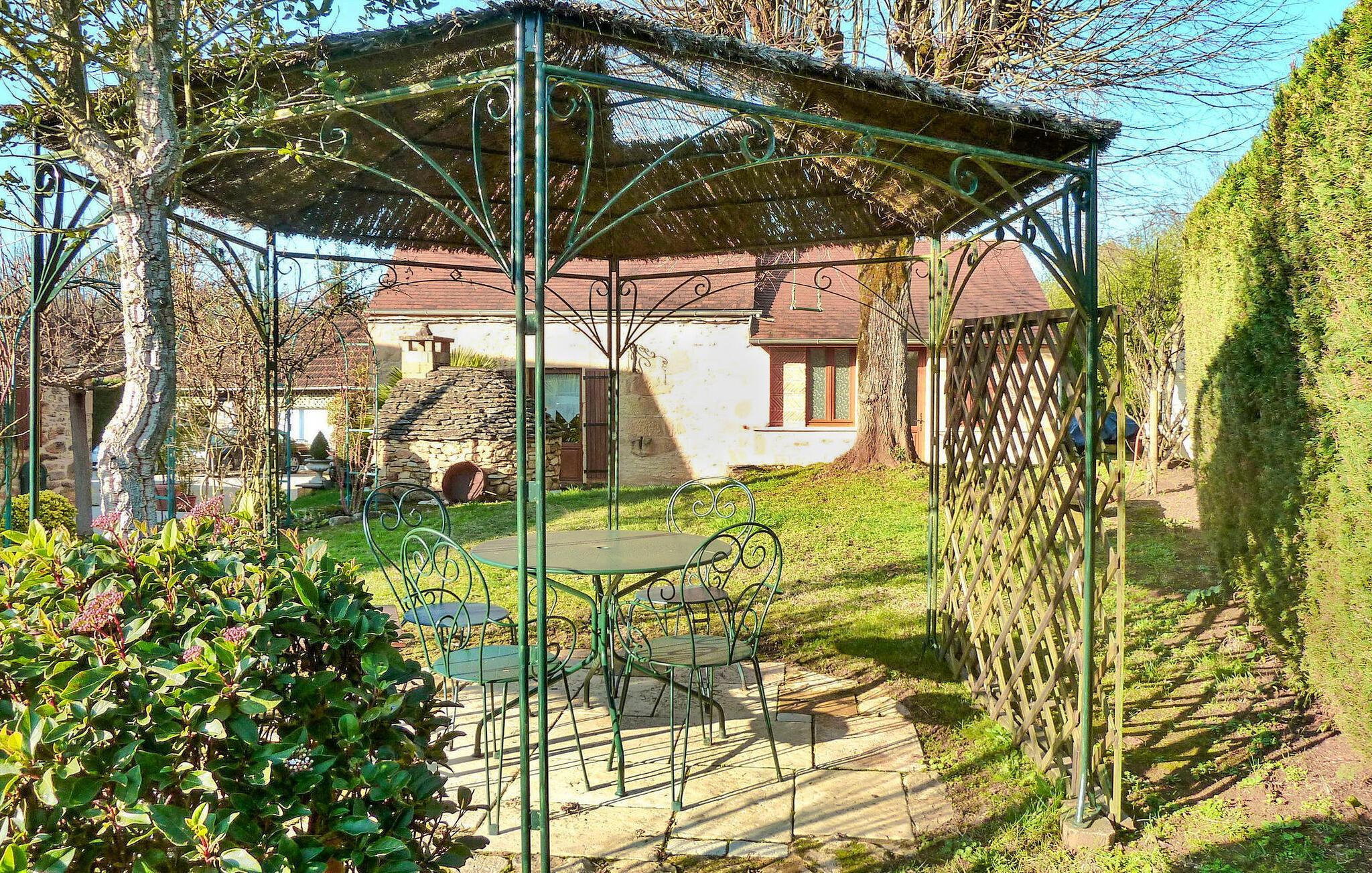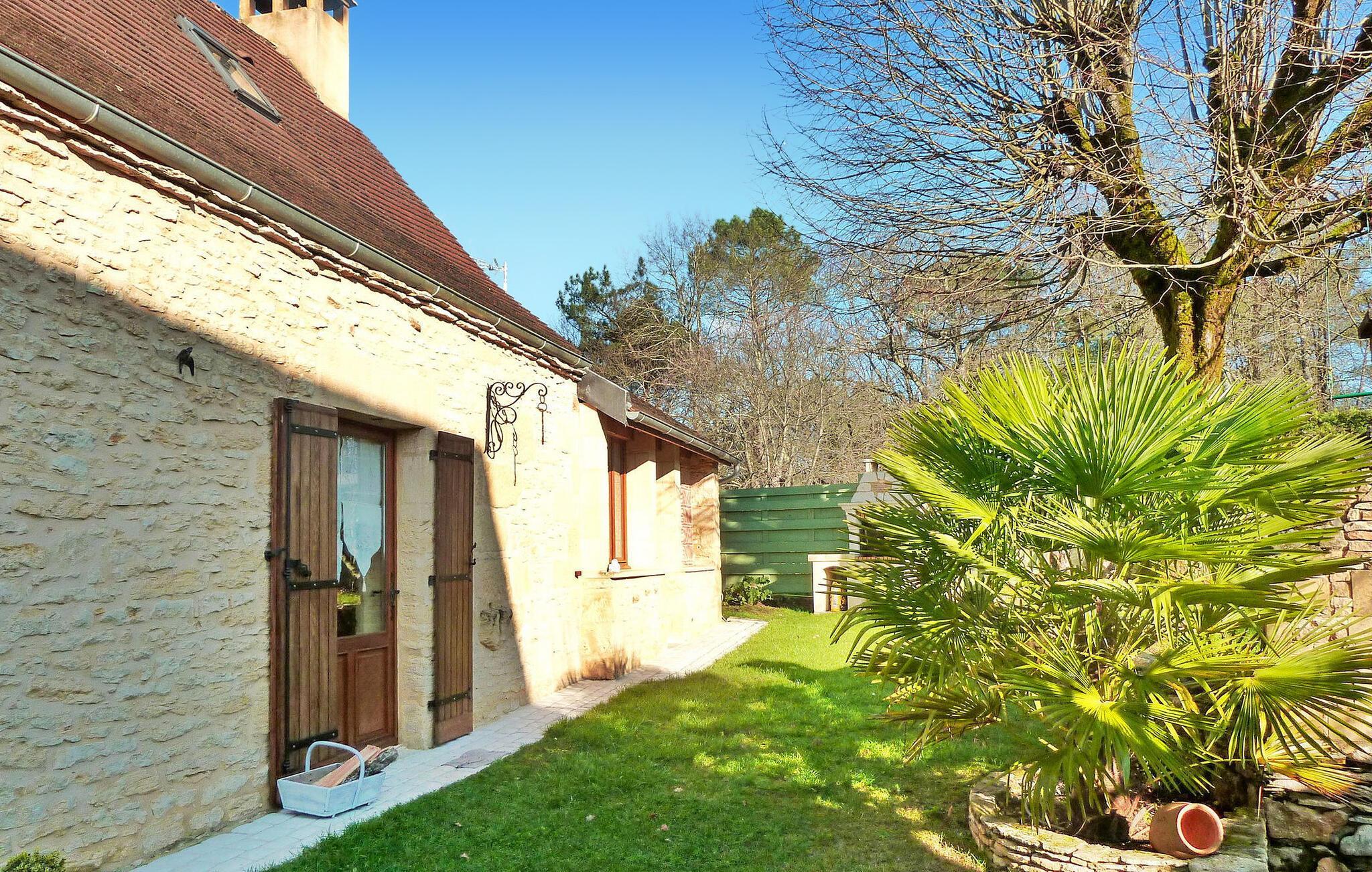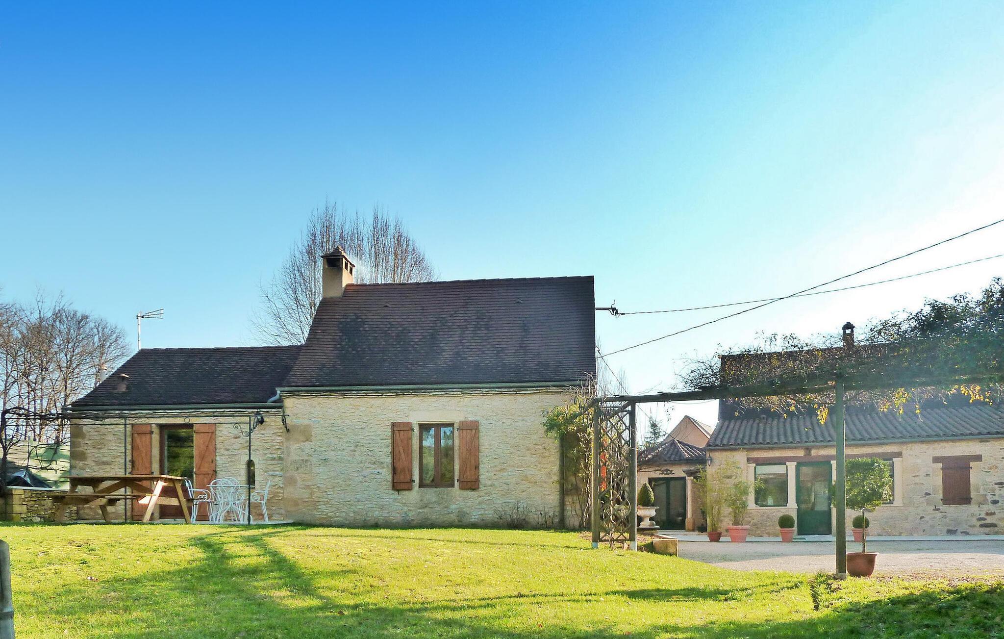 Dieses Ferienhaus im Perigord Noir liegt eingebettet in einer malerischen ländlichen Umgebung und bietet einen ruhigen Aufenthalt inmitten eines Obst- und Gemüsegartens. Im Erdgeschoss befinden sich ein gemütliches Wohnzimmer mit dekorativem Kamin, eine moderne Küche und ein Schlafzimmer mit Etagenbett. Das zweite Schlafzimmer befindet sich im ersten Stock. Der Außenbereich verfügt über verschiedene Bäume, Pflanzen, Blumen und einen üppigen Rasen. Es verfügt über eine gepflasterte Terrasse mit Sitzgelegenheiten und Schatten, eine Südterrasse mit Grill und Blick auf den Pool, einen privaten Pool mit Alarmanlage und einen überdachten Whirlpool. La Feuillade ist ein Weiler in der Nähe von Carsac. In Carsac finden Sie alle Lebensmittelgeschäfte. Besuchen Sie in der Sommersaison sonntagmorgens den Markt in Carsac, um sich mit frischen lokalen Produkten einzudecken. Genießen Sie Ihren Ferienhausurlaub in der Dordogne im Quercy - Périgord. Bitte beachten Sie: Die Eigentümer wohnen vor Ort in einem separaten Haus und eine nahegelegene Straße (Sarlat-Souillac) kann gelegentlich zu Lärmbelästigungen führen, auch wenn sie vom Grundstück aus nicht einsehbar ist.