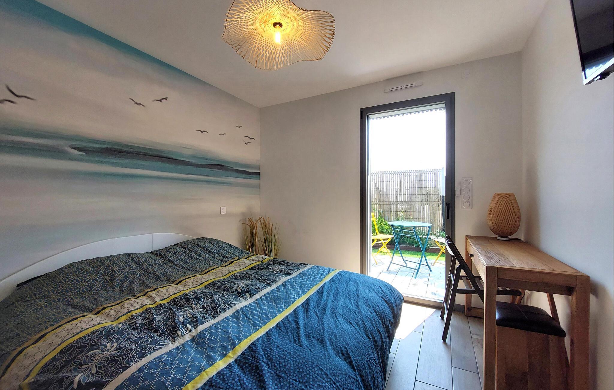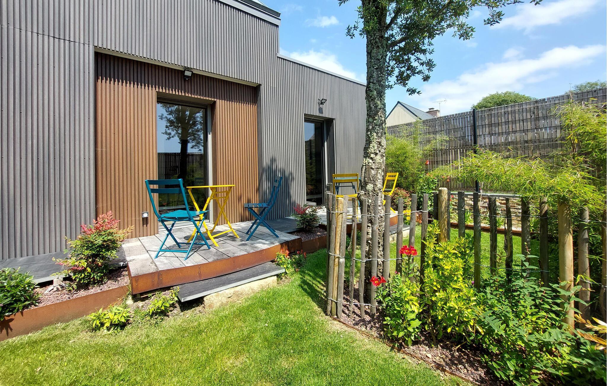 Dieses moderne, voll ausgestattete Ferienhaus in Sarzeau bietet Ihnen eine unvergleichliche Atmosphäre der Entspannung. Schon beim Betreten spüren Sie die hochwertige Einrichtung – stilvolle Architektur, ausgesuchtes Design und elegante Möbel schaffen für Sie ein exklusives Ambiente. Ein besonderes Highlight ist die offene Galerie, die den Innenraum luftig und großzügig wirken lässt. Große Fenster fluten die Räume mit Licht und geben den Blick frei auf den blühenden, wunderschön angelegten Garten. Hier genießen Sie absolute Ruhe und Erholung – ein perfekter Rückzugsort, nur wenige Gehminuten vom Strand und Hafen entfernt. Kommen Sie auf der Terrasse zusammen und genießen die Sonne und gemeinsame Mahlzeiten vom Grill.
