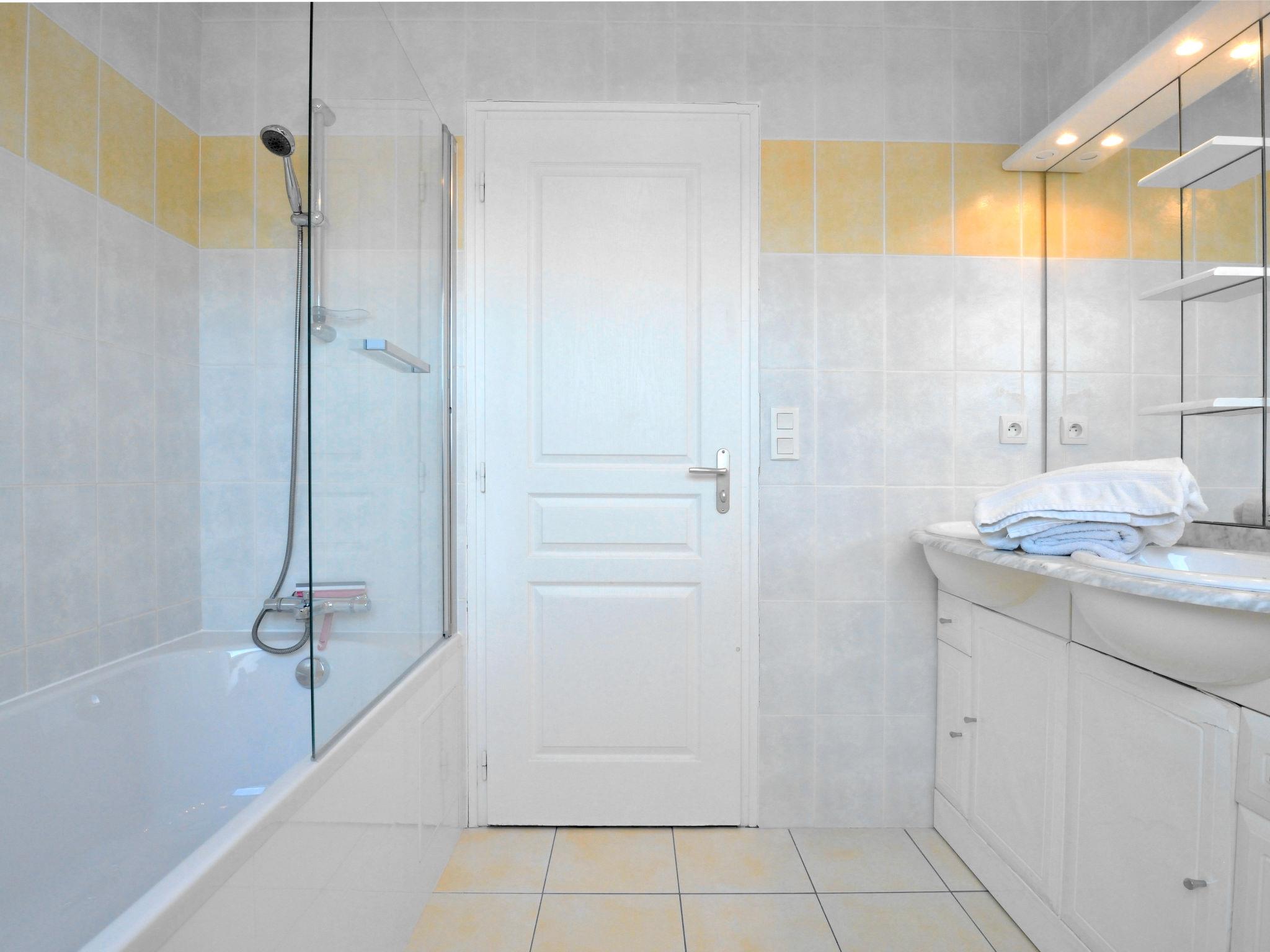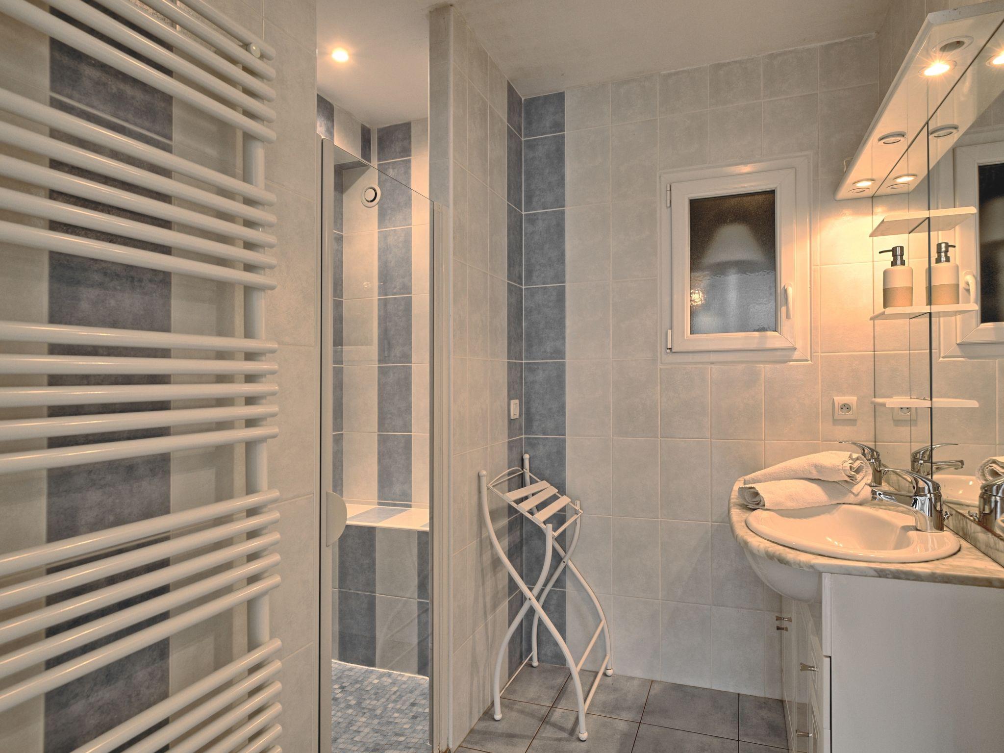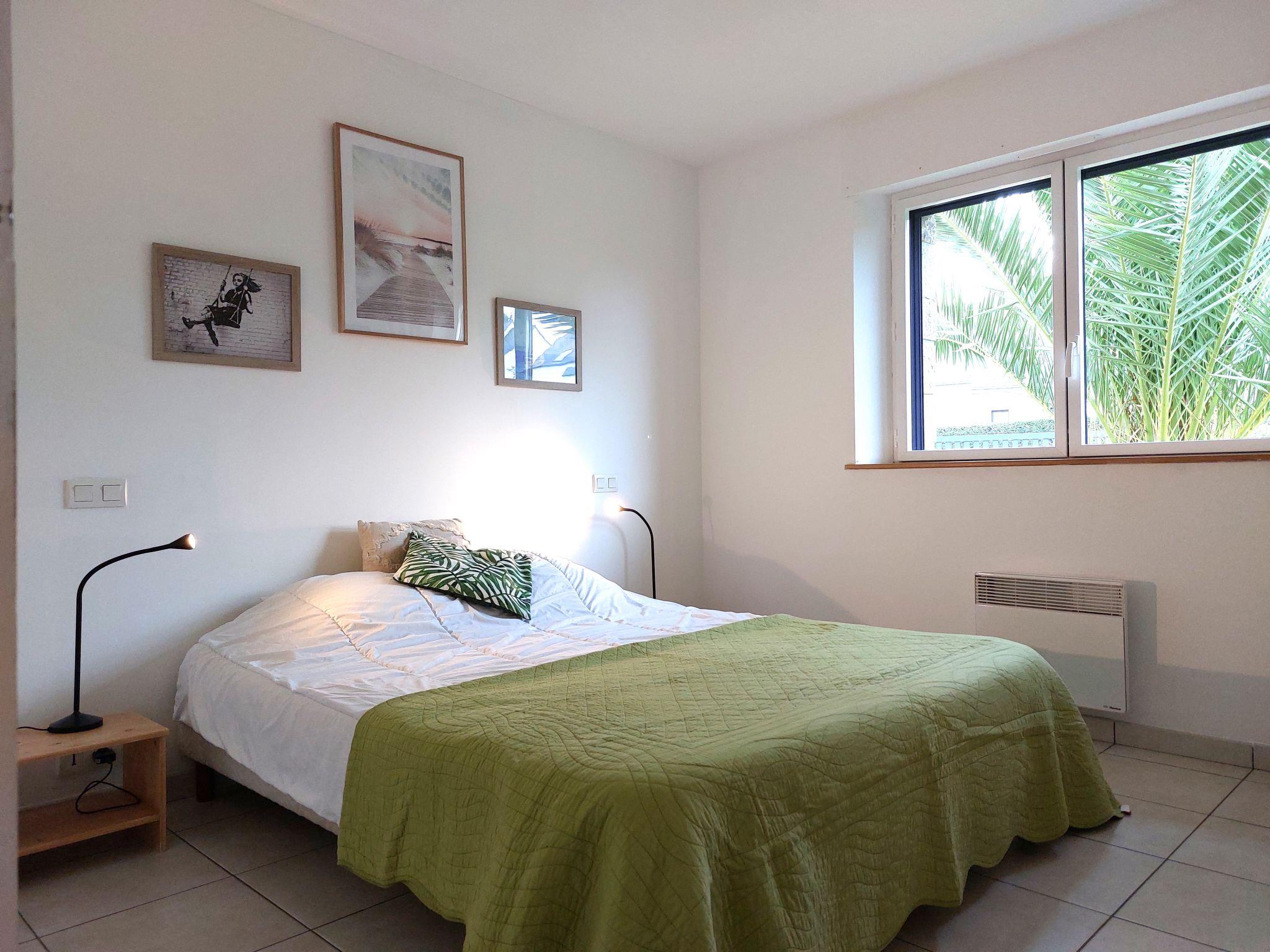 "Golf de Bretagne", 5-Zimmer-Haus 140 m2 auf 2 Stockwerken. Hell, zweckmässig eingerichtet: Wohn-/Esszimmer mit Esstisch, Sat-TV, Internationale TV-Sender und Radio. Ausgang zur Terrasse. 1 Zimmer mit 1 franz. Bett (160 cm, Länge 200 cm). Offene Küche (Backofen, Geschirrspüler, 4 Induktionskochplatten, Toaster, Wasserkocher, Mikrowelle, Tiefkühler, elektrische Kaffeemaschine, Kapseln für die Kaffeemaschine (Senseo) extra). Dusche, sep. WC, Doppelwaschbecken. Obergeschoss: 1 abgeschrägtes Zimmer mit 1 franz. Bett (160 cm, Länge 200 cm). 2 abgeschrägte Zimmer, jedes Zimmer mit 2 Betten (90 cm, Länge 190 cm). Bad, sep. WC, Doppelwaschbecken. E-Heizung. Terrasse. Terrassenmöbel, Gartengrill (mobil), Liegestühle (4), Abstellkammer. Zur Verfügung: Waschmaschine, Wäschetrockner, Bügeleisen, Kinderhochstuhl, Babybett bis 2 Jahre. Internet (WLAN, gratis). Bitte beachten: Nichtraucher-Haus. Maximal 1 Haustier/Hund erlaubt. Rauchmelder. Flexibilität bei der Bettenaufteilung: Es stehen mehr Schlafmöglichkeiten zur Verfügung als die maximal zugelassene Personenzahl, diese darf dennoch nicht überschritten werden. 56240000252F2