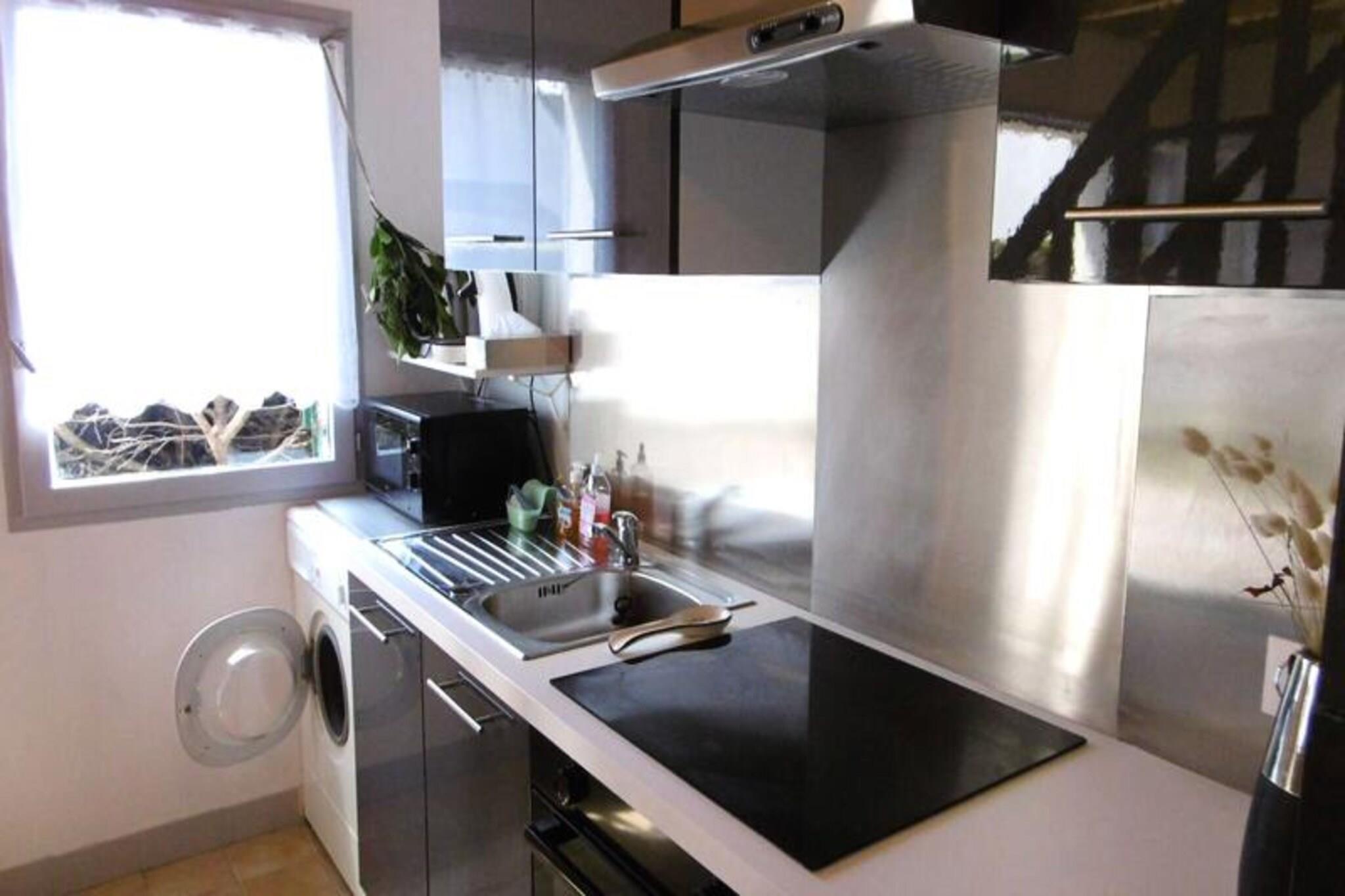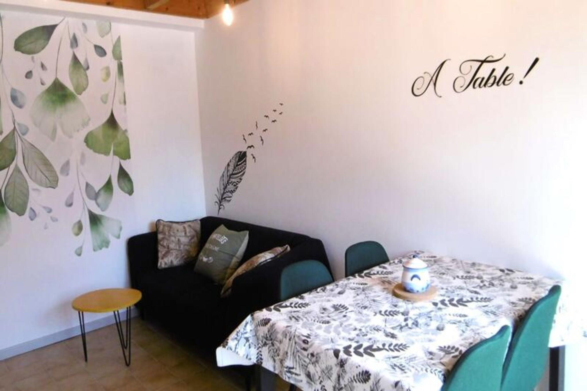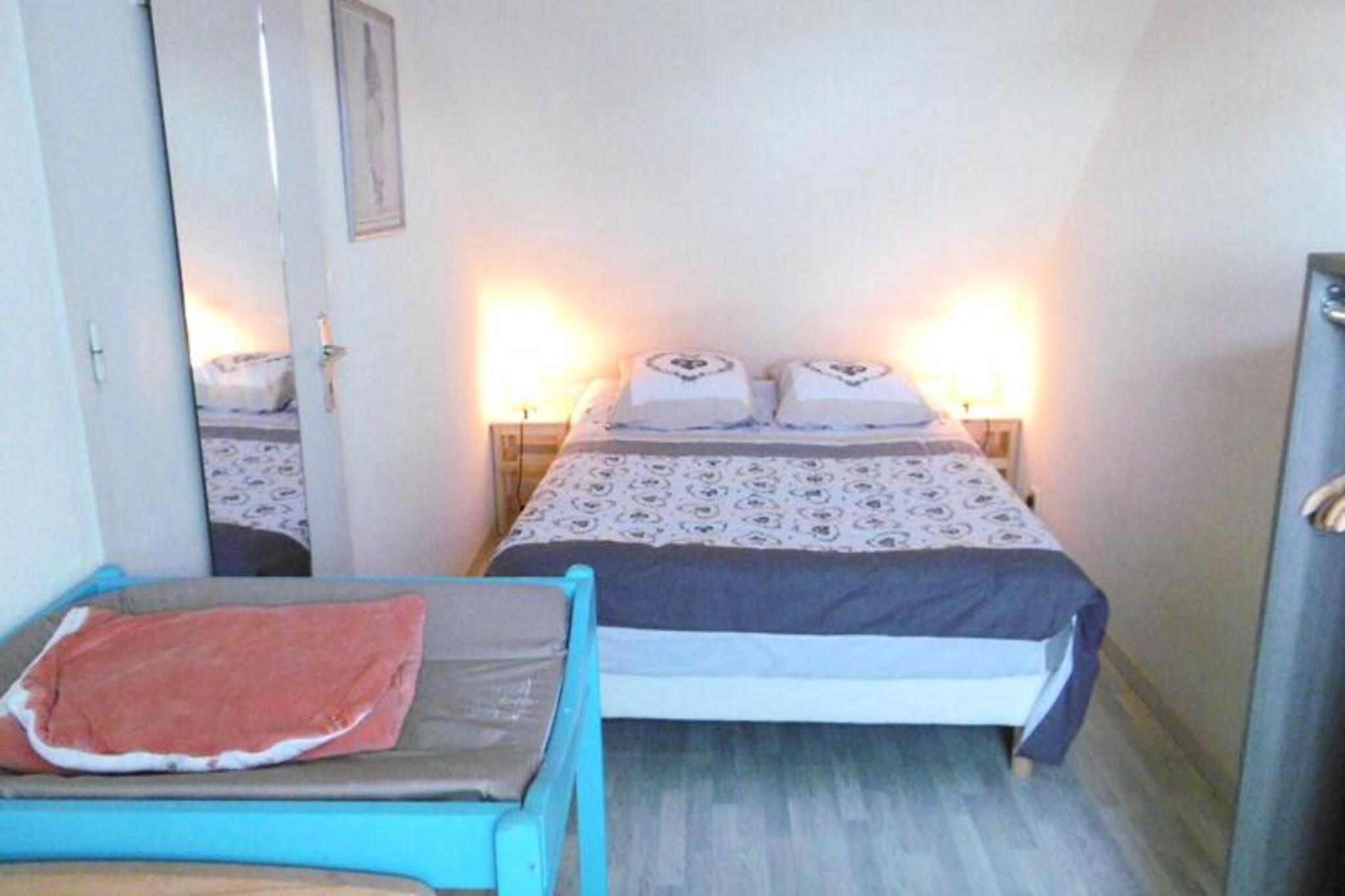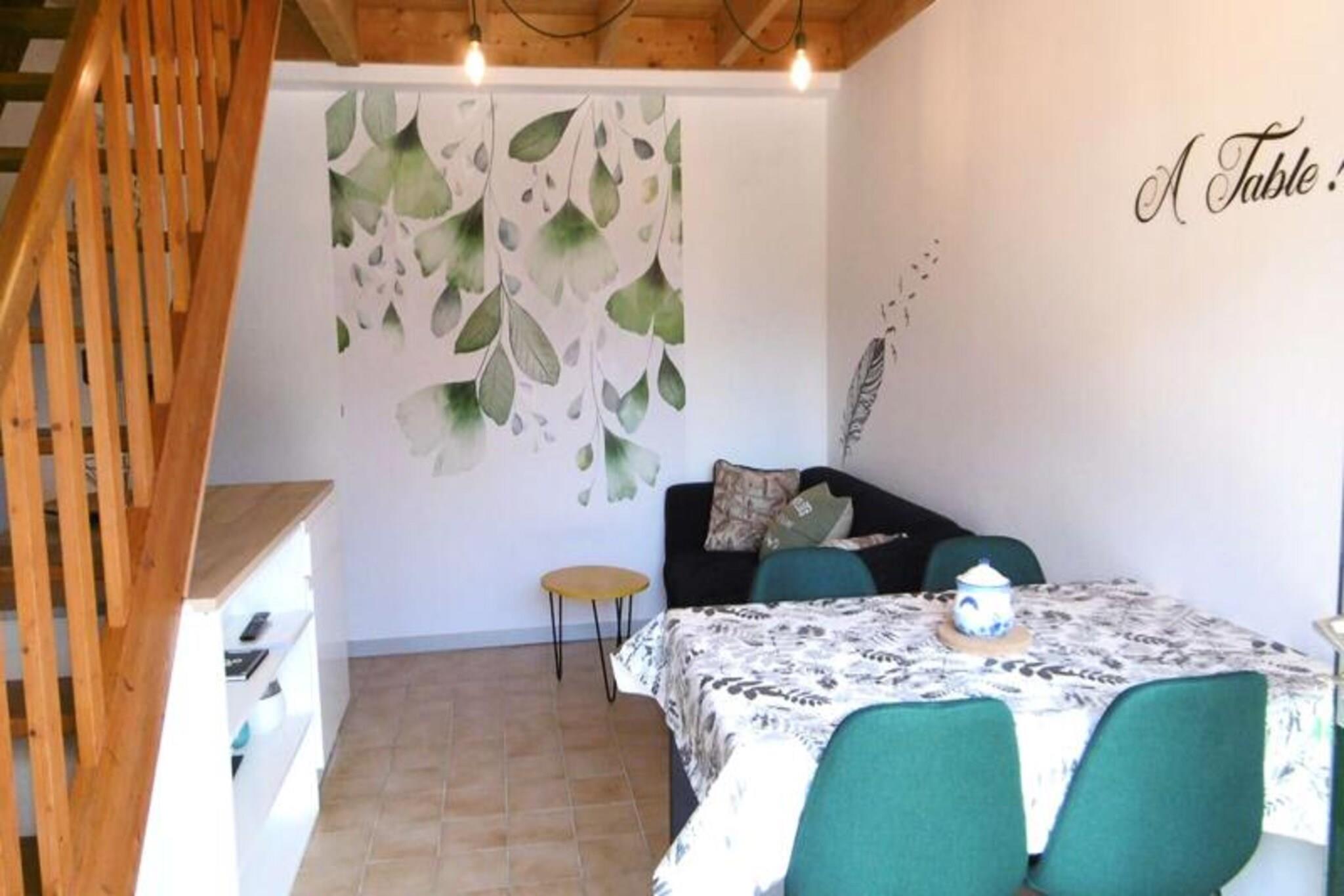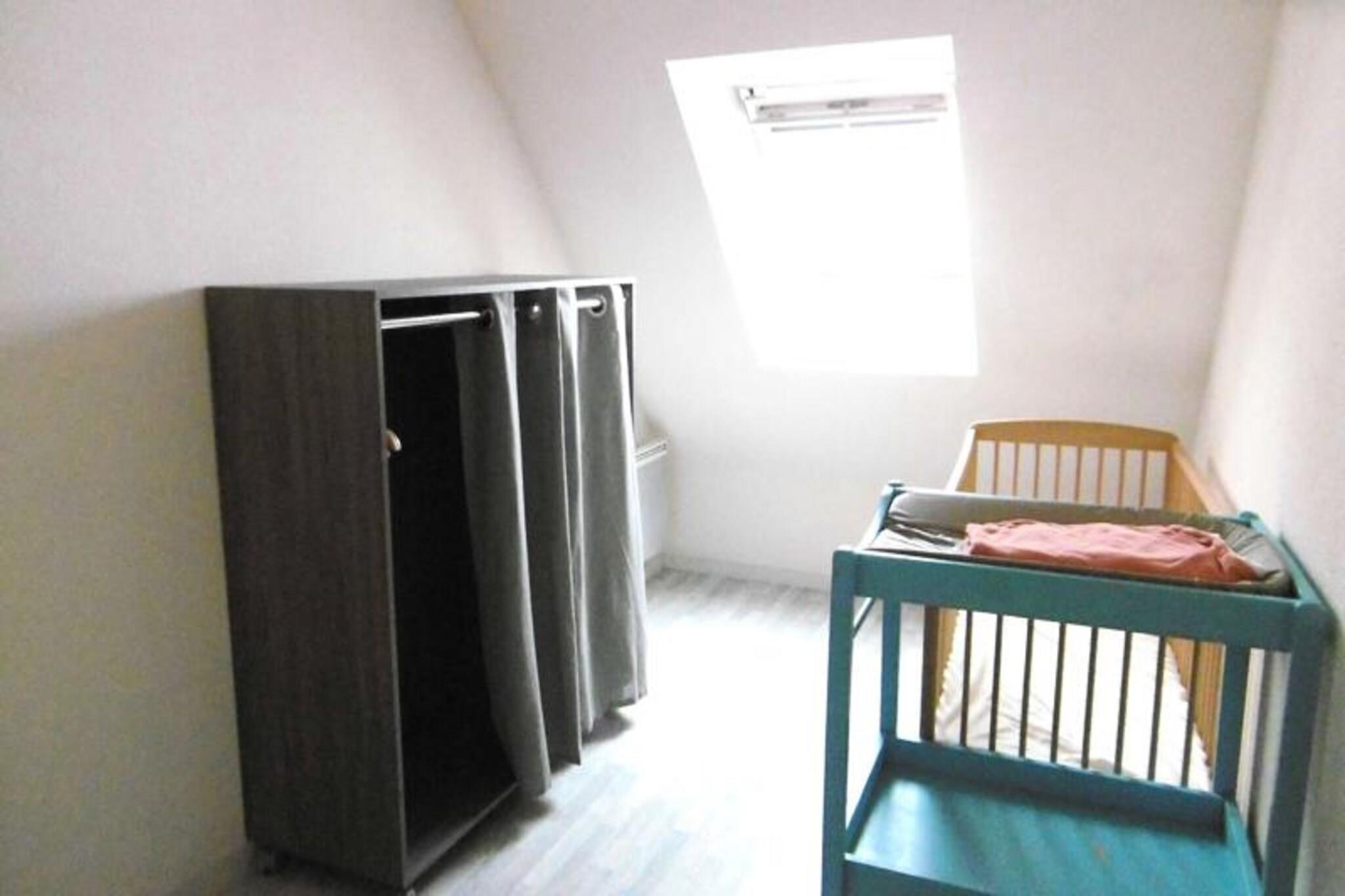 This renovated 50 m² house, offering a peaceful retreat for up to 5 guests, is perfect for a family or small group. It features three bedrooms: one with a double bed (140 cm), a second with a double bed and a baby bed, and a third with a single bed (90 cm). The property is pet-friendly, allowing guests to bring their pets for a small fee. The house is equipped with duvets for all beds, and linens are available for rent. There is also a designated parking space for convenience. The house is ideally located in a tranquil area, providing easy access to local attractions, shops, and cafes. Guests can enjoy a stroll in the surrounding neighborhood or explore nearby markets for fresh local produce. For outdoor enthusiasts, the region offers a variety of activities, including scenic walks and beaches within a short drive. The ground floor includes a cozy living room with a view of the garden, a fully equipped kitchen, and a bathroom with a shower and separate toilet. The exterior features an enclosed garden with a terrace, garden furniture, a parasol, deckchairs, and a barbecue for outdoor dining. The kitchen is well-equipped with essential appliances such as a refrigerator, oven, and coffee maker, ensuring guests can prepare their meals with ease.