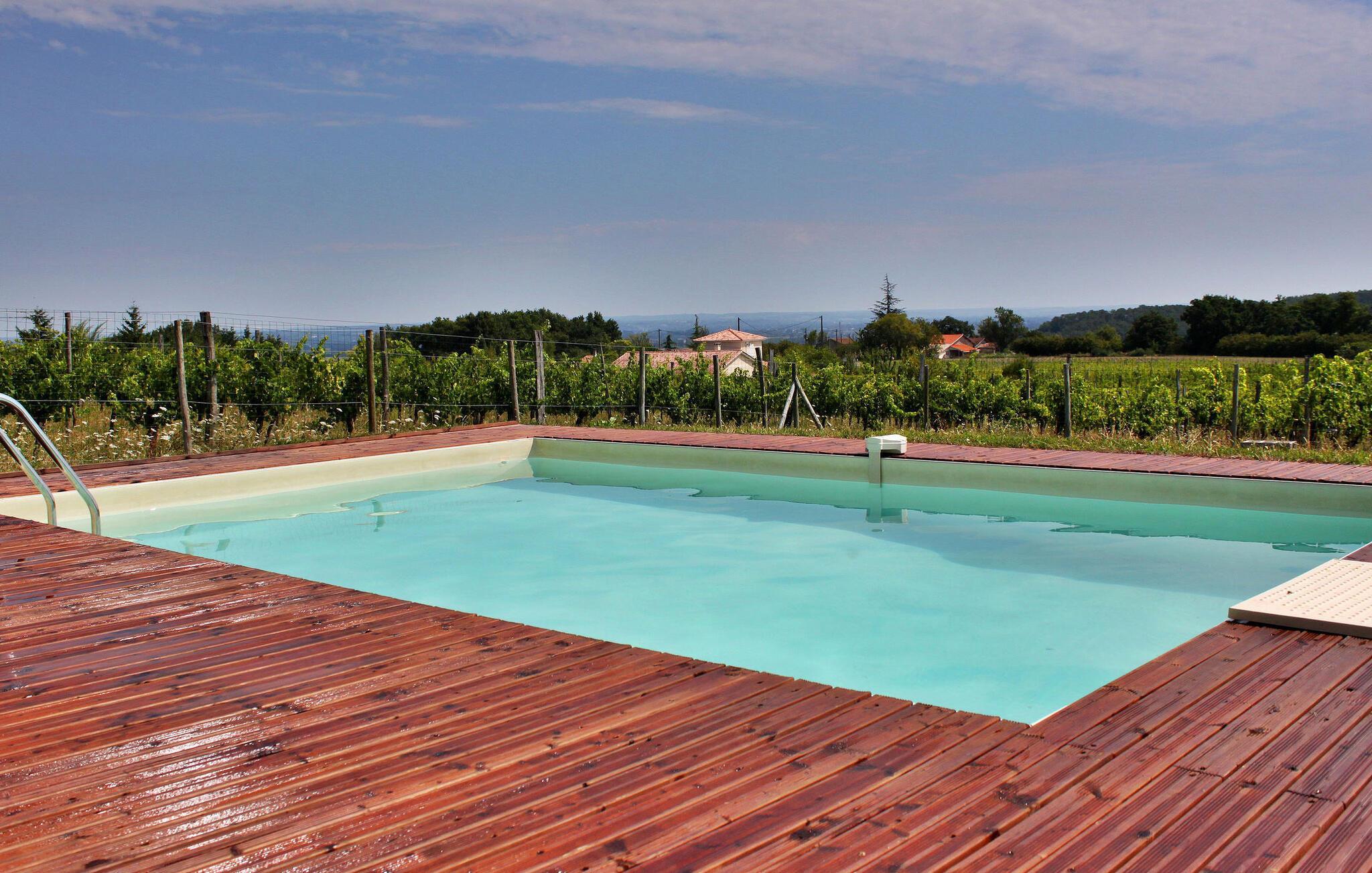 Eingebettet im Périgord Pourpre in der Nähe von Bergerac erwartet Sie dieses Feriendomizil mit herrlichem Pool inmitten eines blühenden Weinbergs. Das Anwesen liegt auf den Hügeln von Bergerac und bietet einen herrlichen Panoramablick auf die üppige Umgebung. Der sorgfältig renovierte Pool sorgt für ein gemütliches Ambiente und bietet eine ruhige Umgebung mit Blick auf den weitläufigen Weinberg. Als Teil eines familiengeführten, 12 Hektar großen Weinguts in Saussignac laden die Eigentümer Sie ein, die vielfältigen Weine, die sie mit Stolz herstellen, zu genießen. Die gemütliche Unterkunft verfügt über eine durchdachte Raumaufteilung mit einem klimatisierten Wohnbereich und einer gut ausgestatteten, offenen Küche. Wenn Sie die offene Treppe in die erste Etage hinaufsteigen, entdecken Sie zwei einladende Schlafzimmer, die auf Komfort ausgelegt sind und sich ein gut ausgestattetes Familienbadezimmer teilen. Draußen gibt es eine überdachte Terrasse mit Grill und Gartenmöbeln, die den perfekten Ort für herrliche Momente im Freien bietet. Der einladende Pool mit einer Größe von 6 x 4 m und einer Tiefe von 1 m bis 1,5 m verfügt über eine Holzterrasse und eine Alarmanlage für zusätzliche Sicherheit. Tauchen Sie ein in die Schönheit der Weinberge, genießen Sie erlesene Weine und schaffen Sie bleibende Urlaubserinnerungen in diesem idyllischen Rückzugsort. Bitte beachten Sie, dass das zweite Schlafzimmer über Etagenbetten (2 x 0,90 m breit) verfügt. Für Kinder unter 6 Jahren ist hinsichtlich des oberen Etagenbetts Vorsicht geboten.